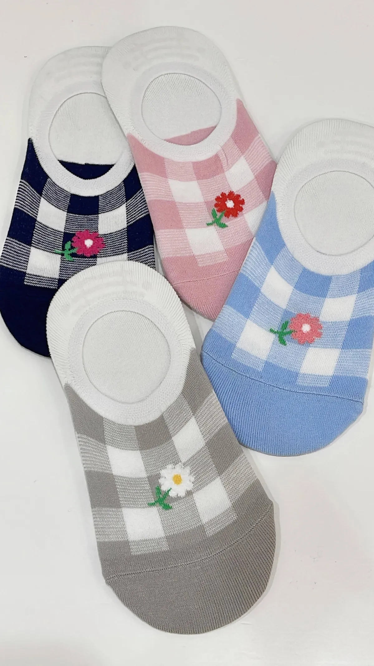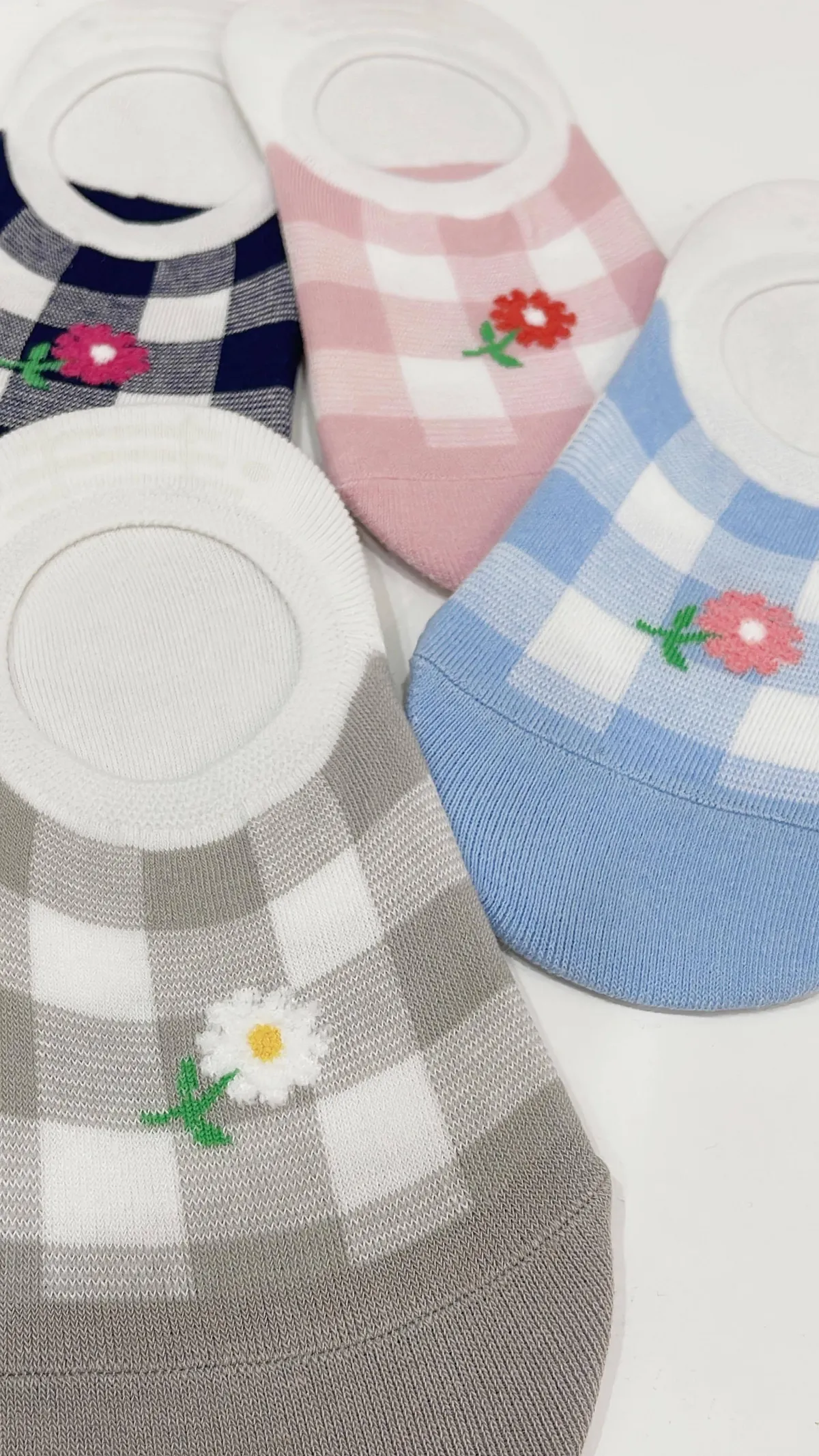 KOREA / 格紋小花 / 後跟止滑隱形襪