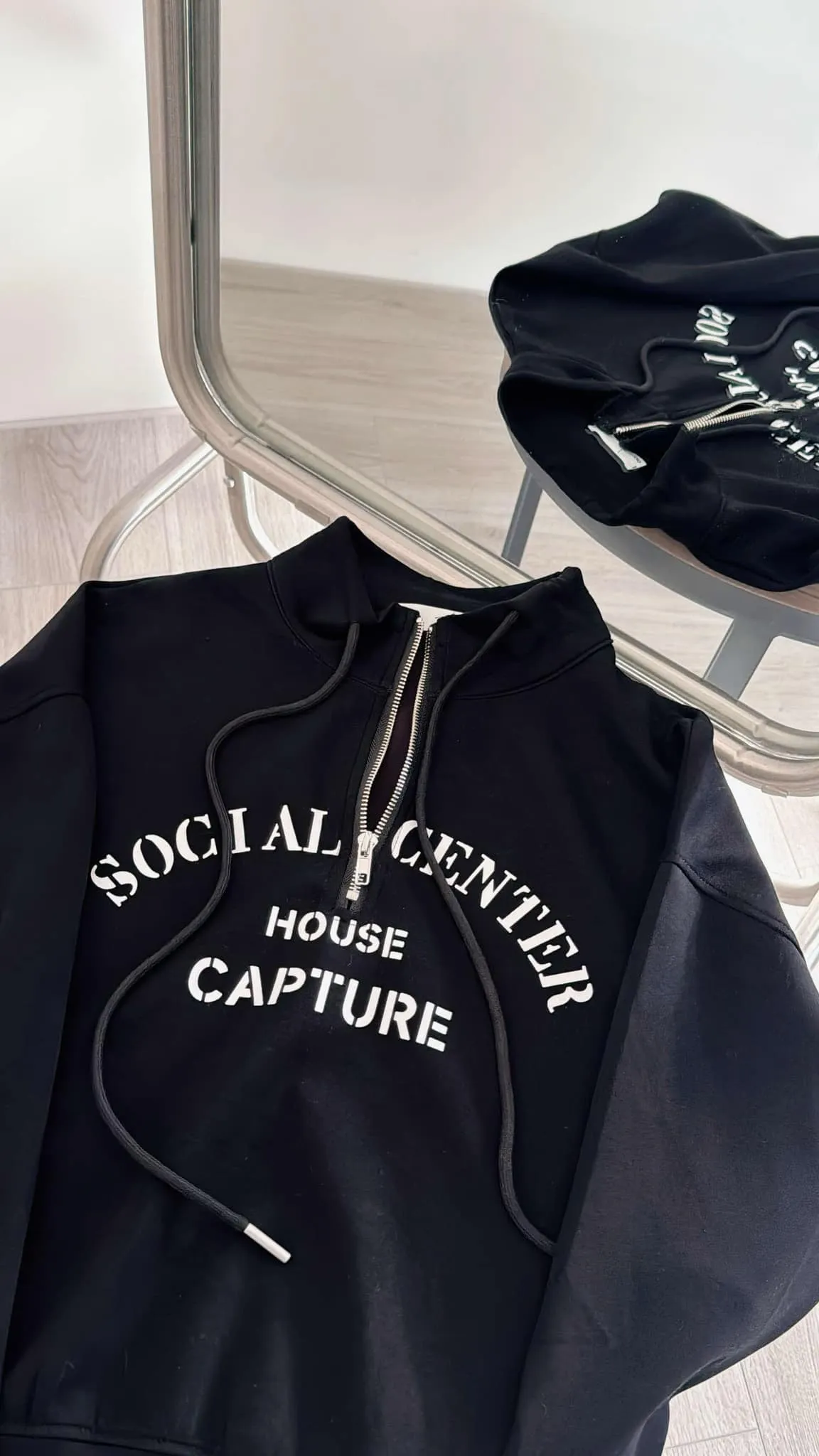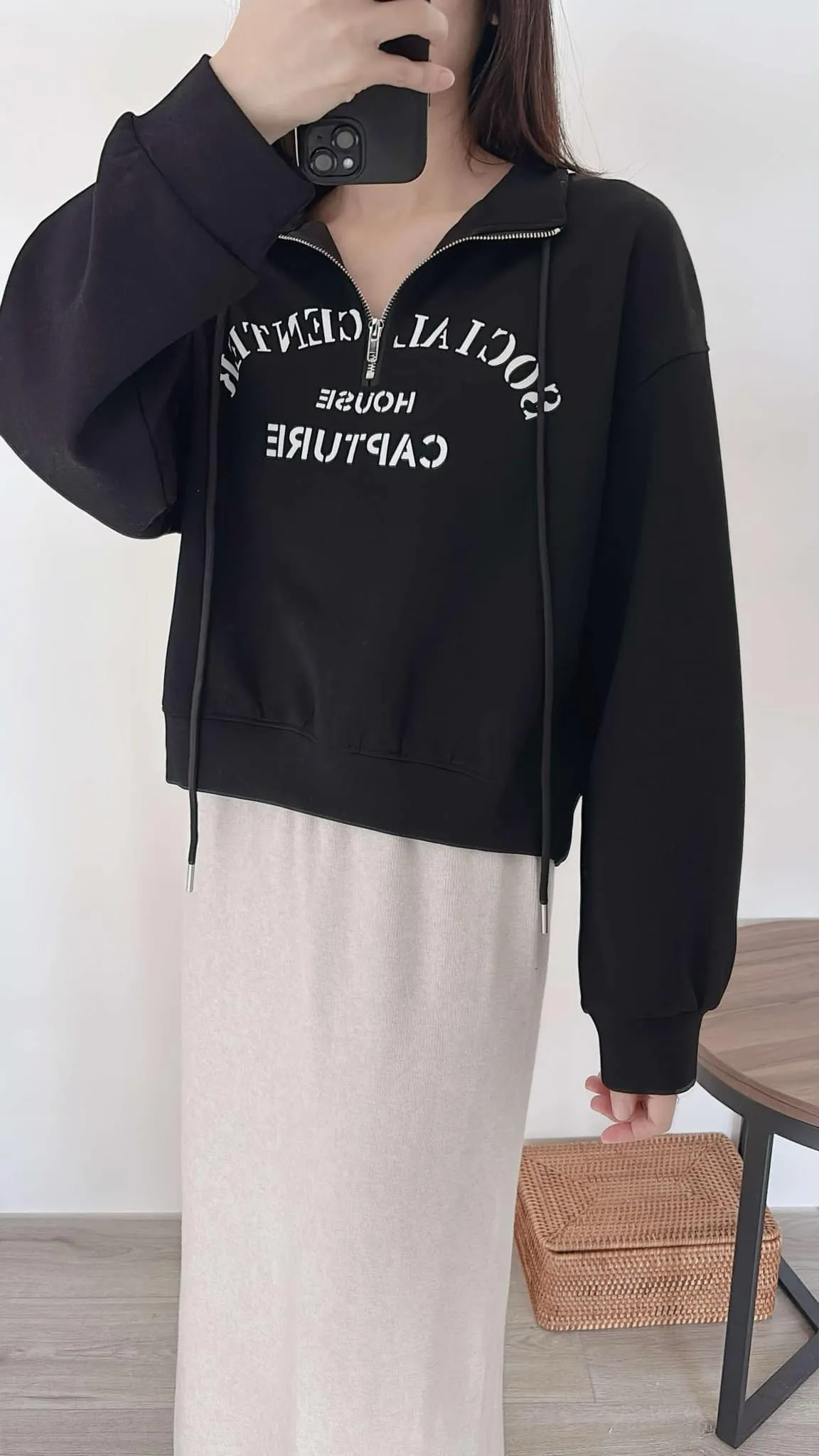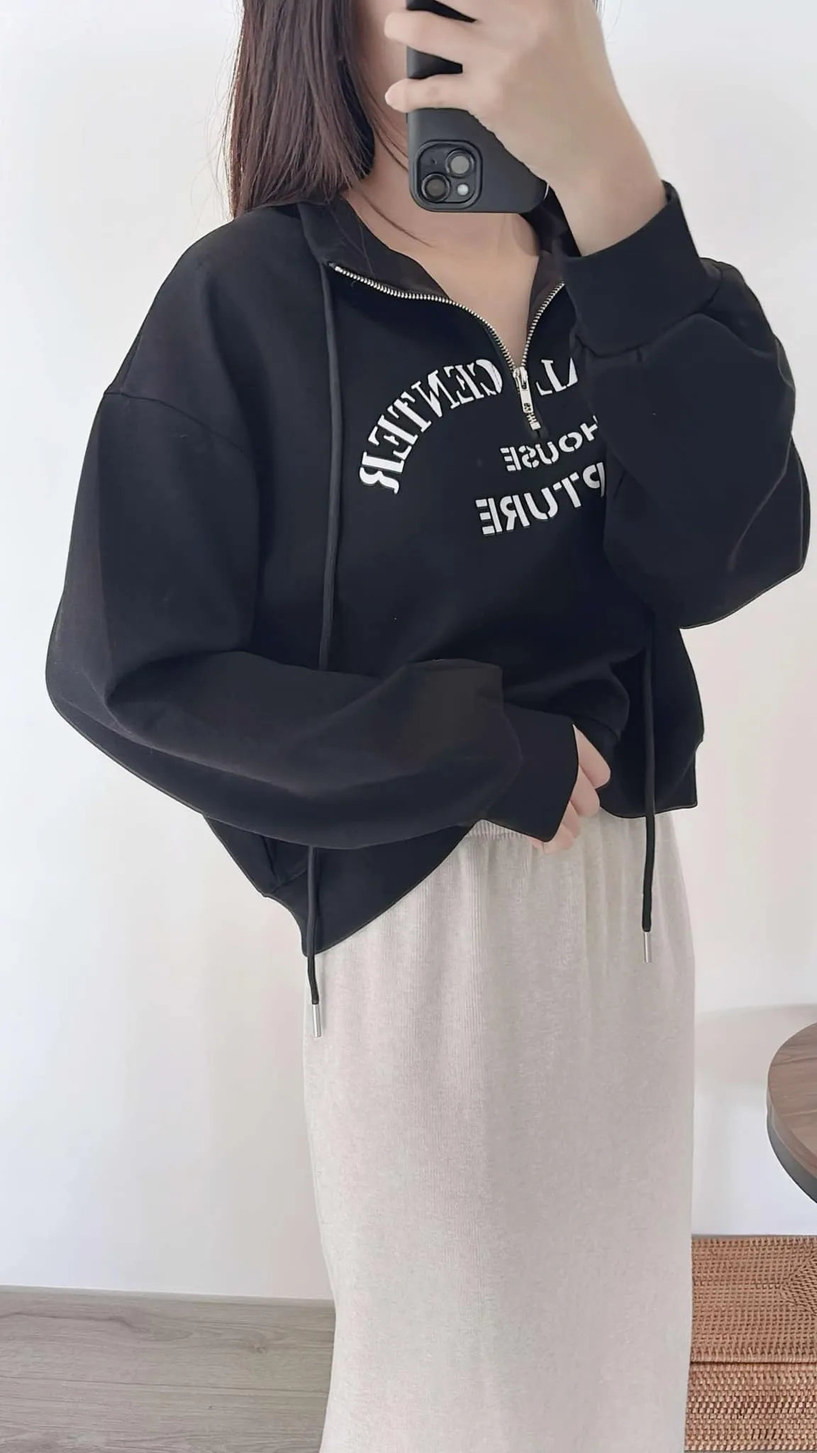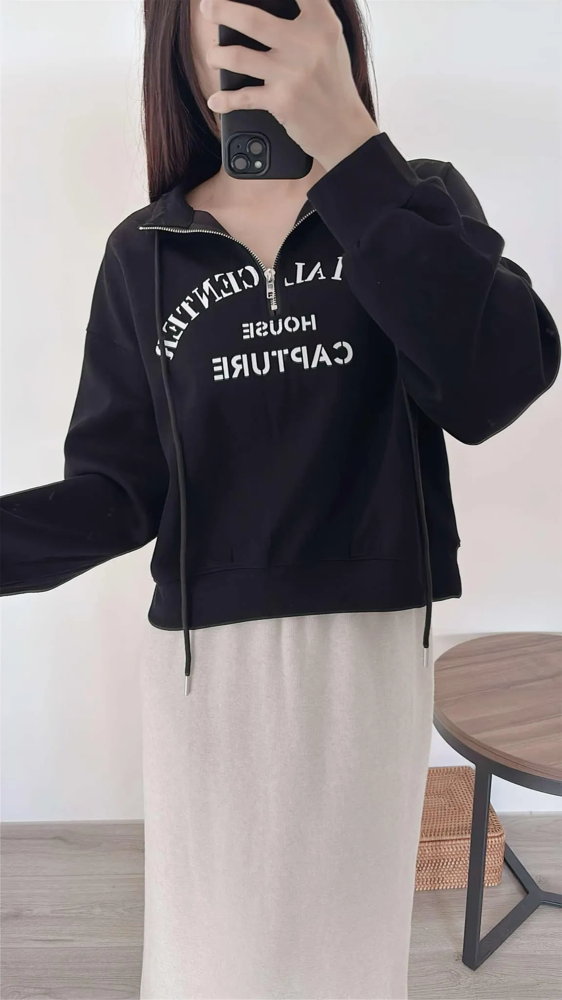 推薦款/薄款前拉鍊簡約文字上衣/大胸友善/內無刷毛