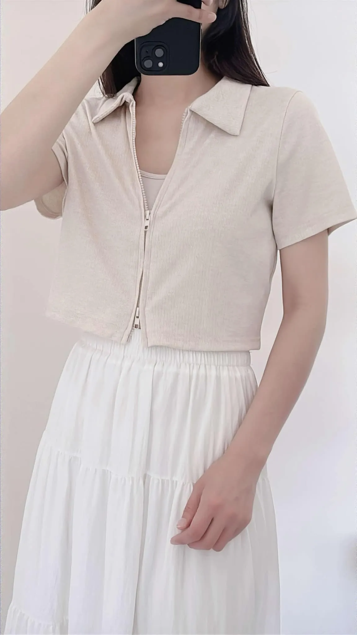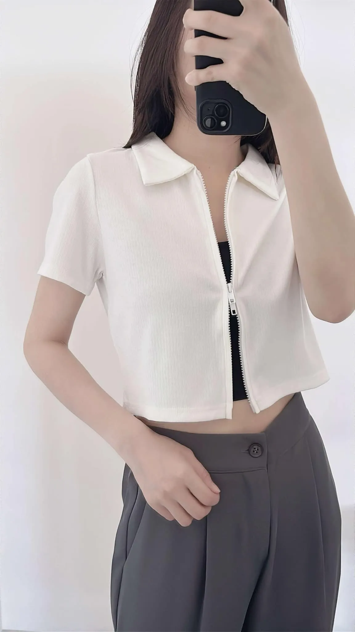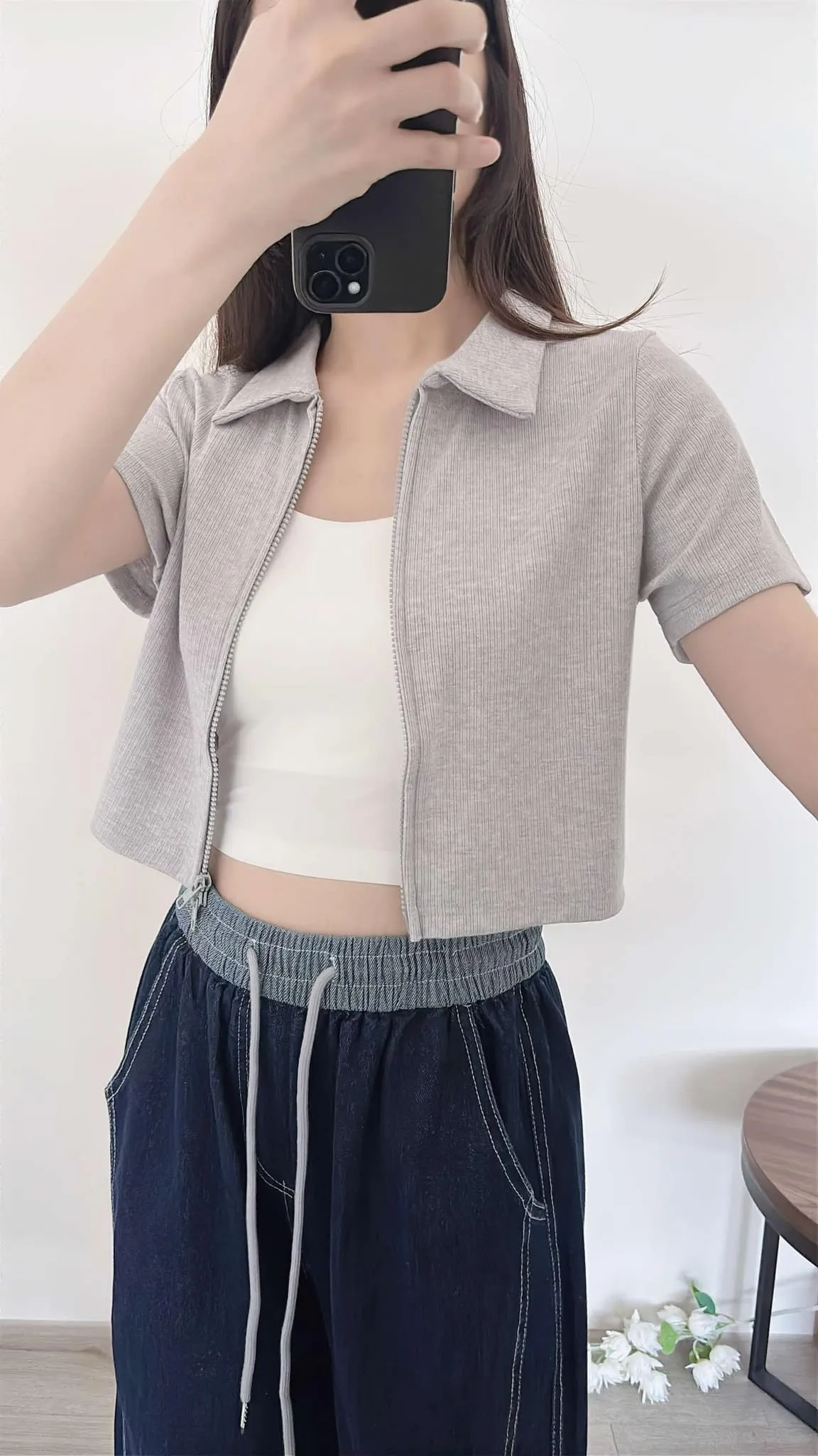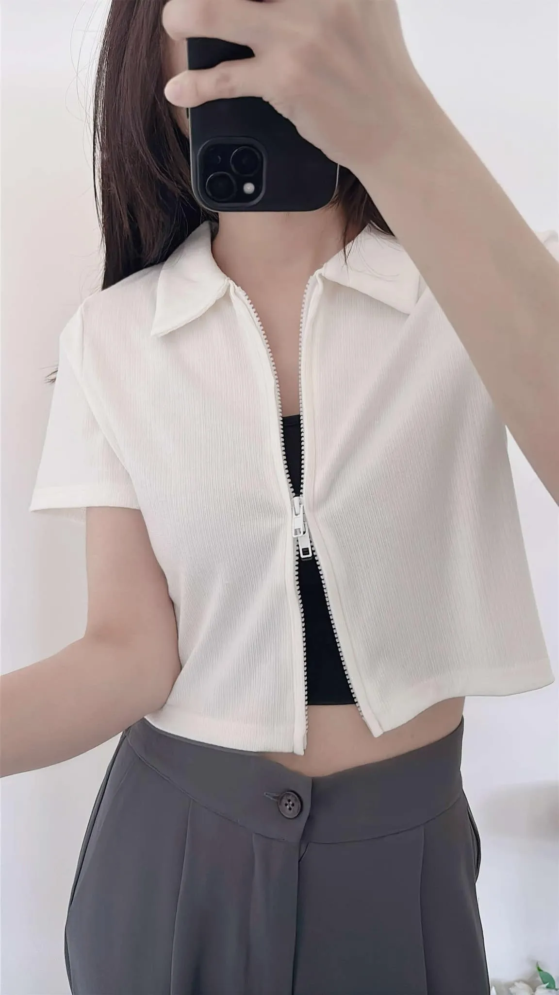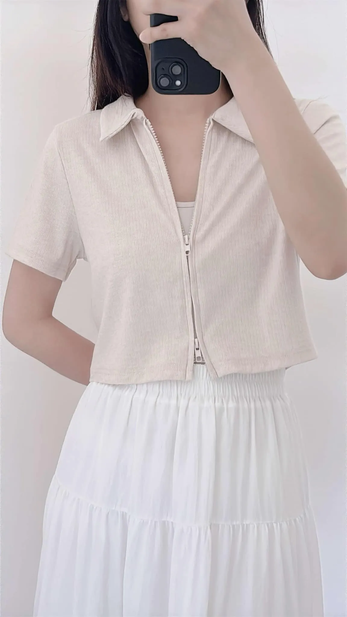 推薦款/微短版/涼感雙拉鍊柔棉上衣