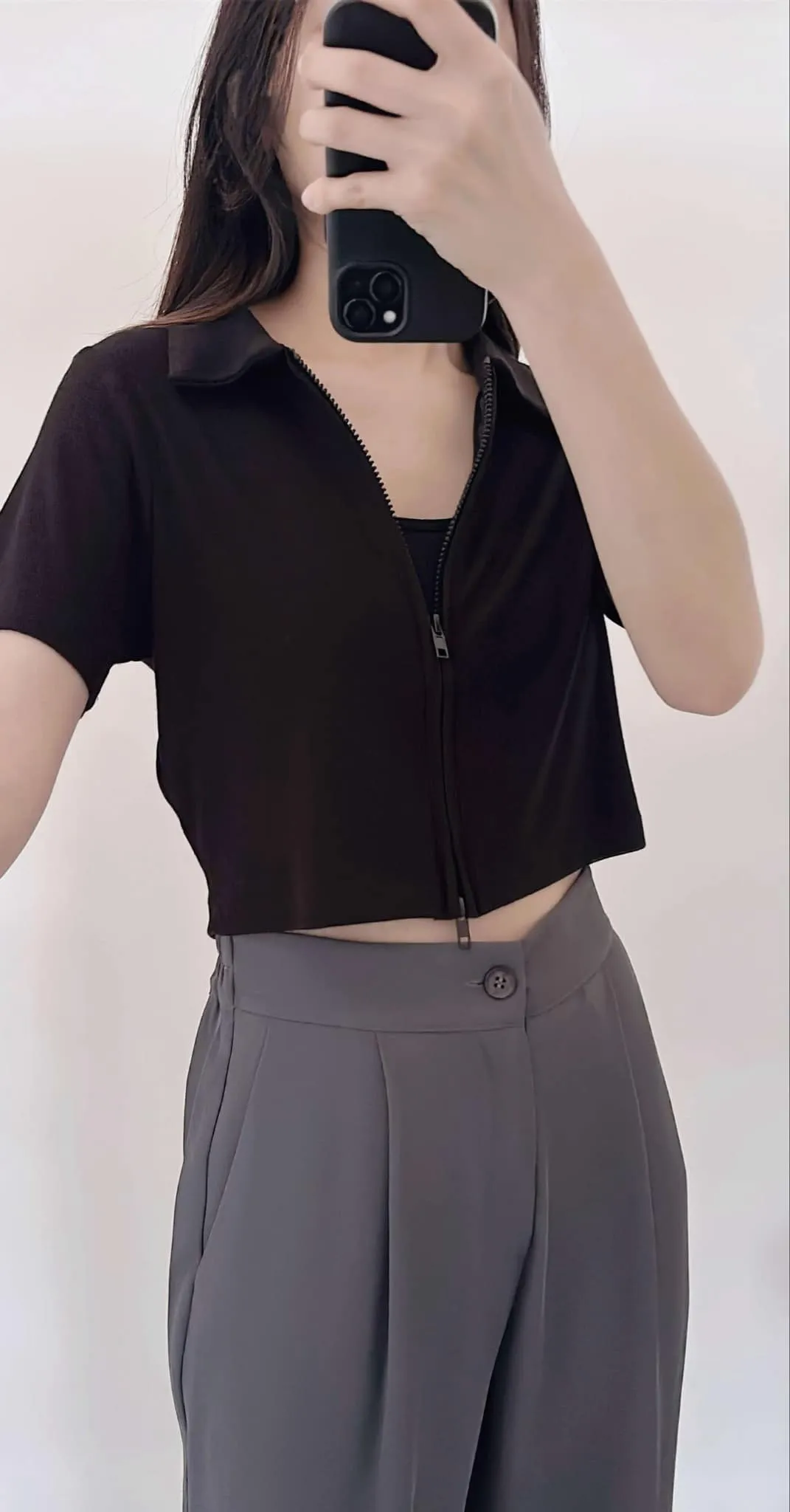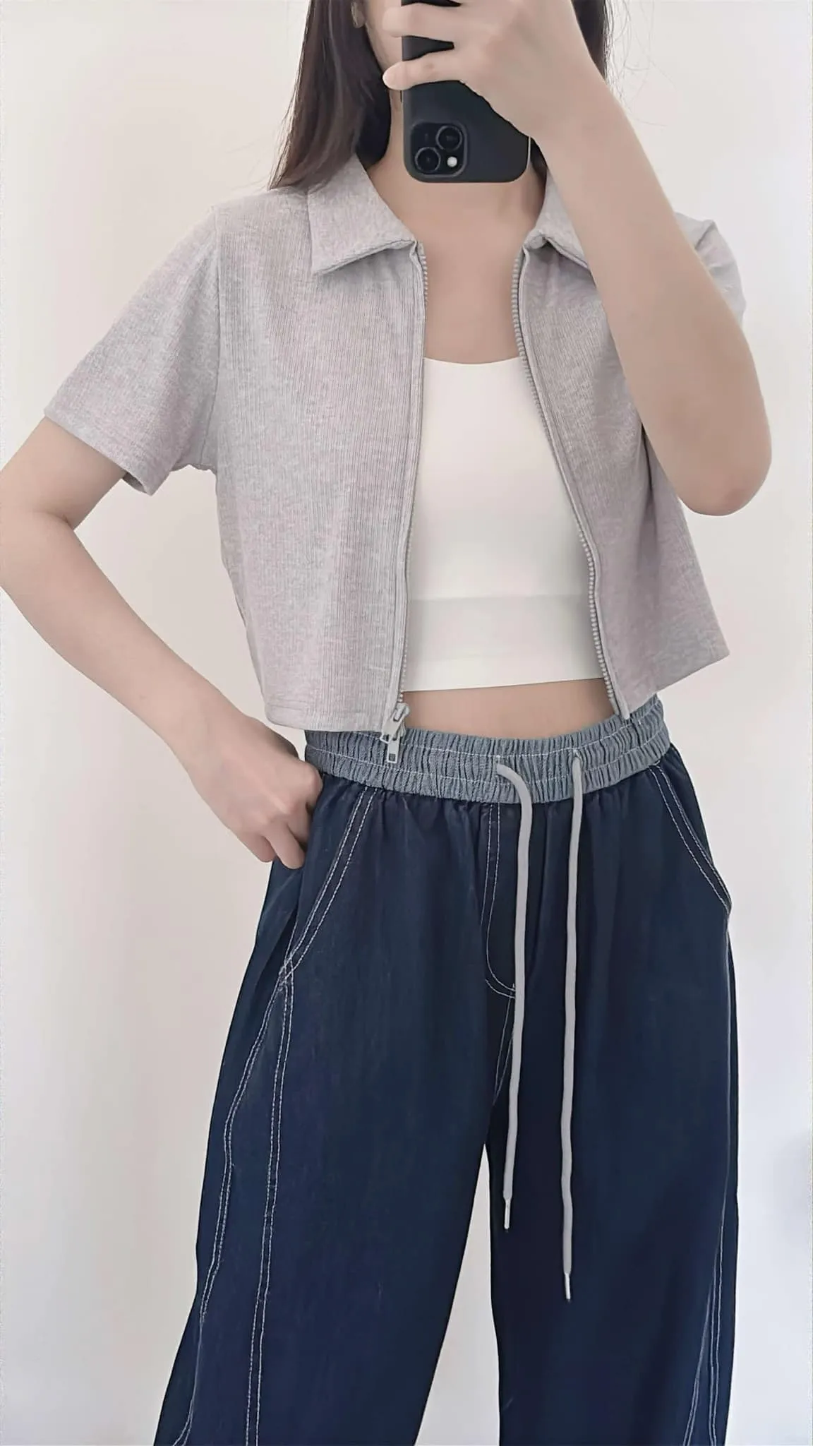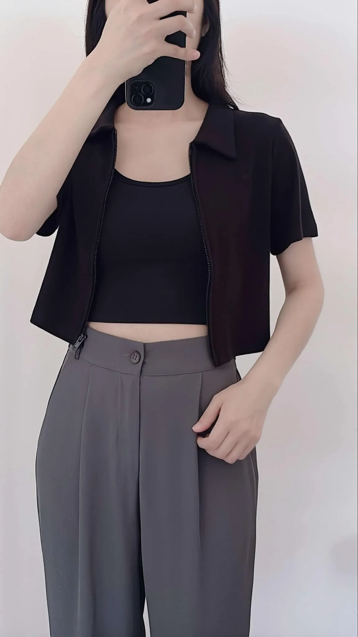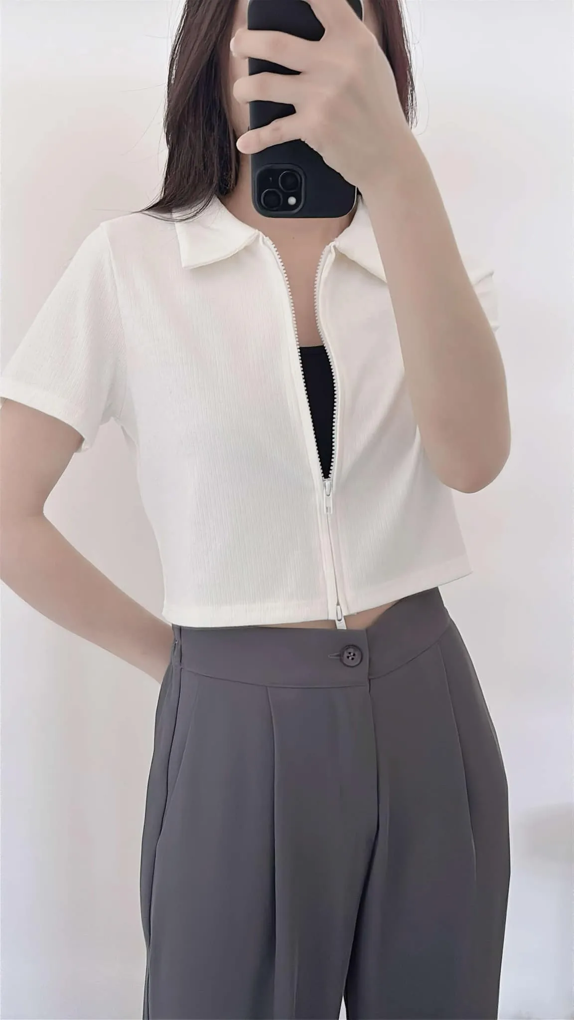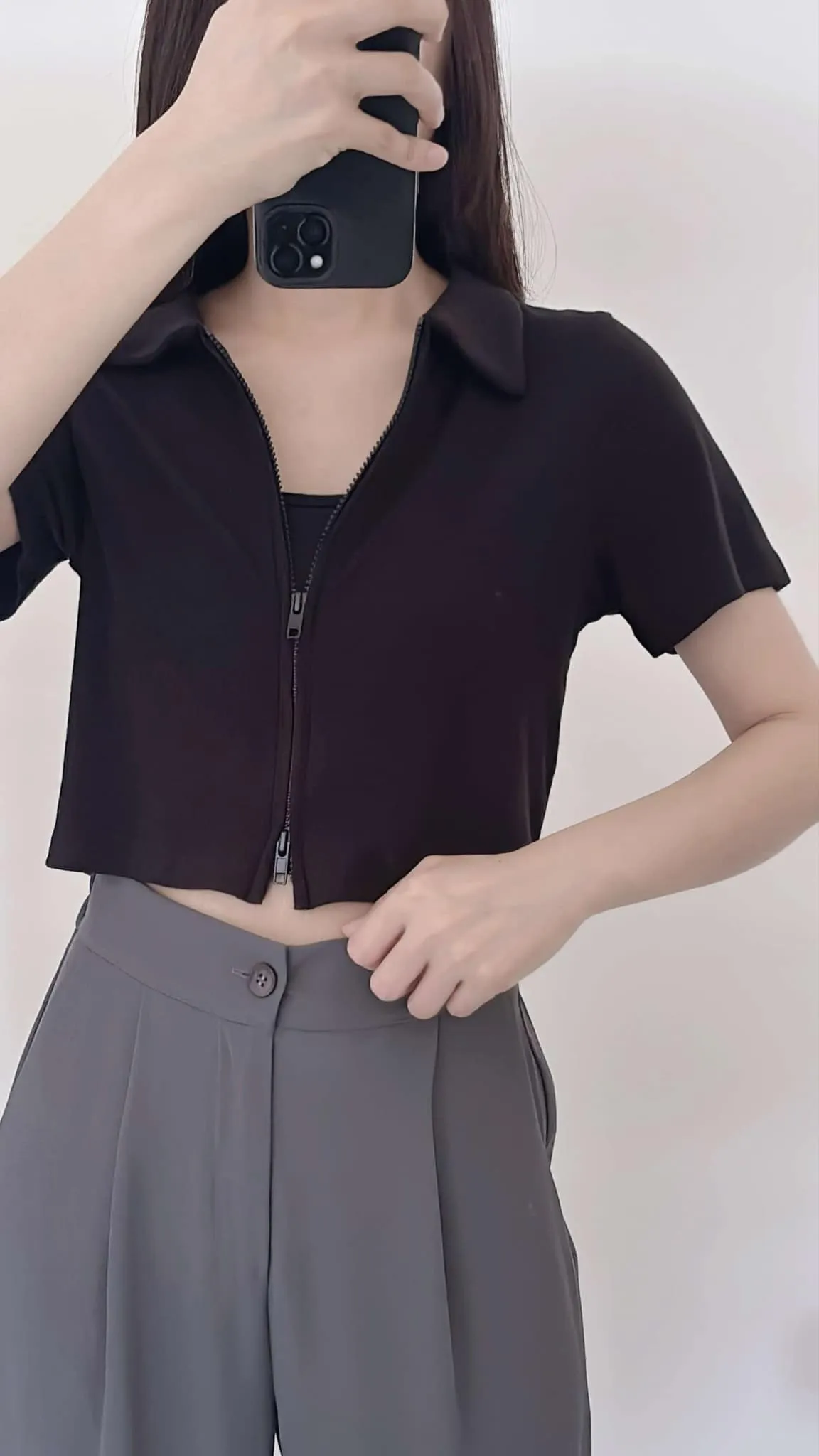 推薦款/微短版/涼感雙拉鍊柔棉上衣