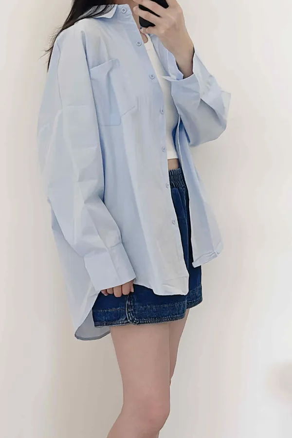 輕薄款/oversize水洗棉純色襯衫(附可拆式披肩)/大胸友善