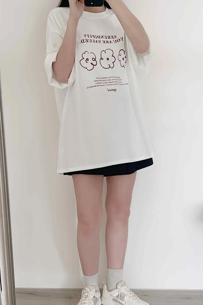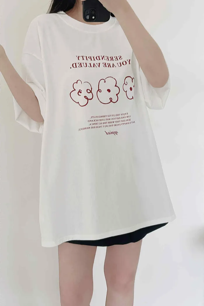 推薦款/有挺度!塗鴉小花大tee/大胸友善/男女皆可/100kg以下都可以