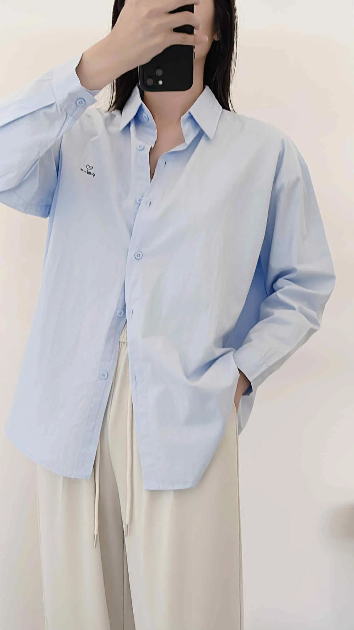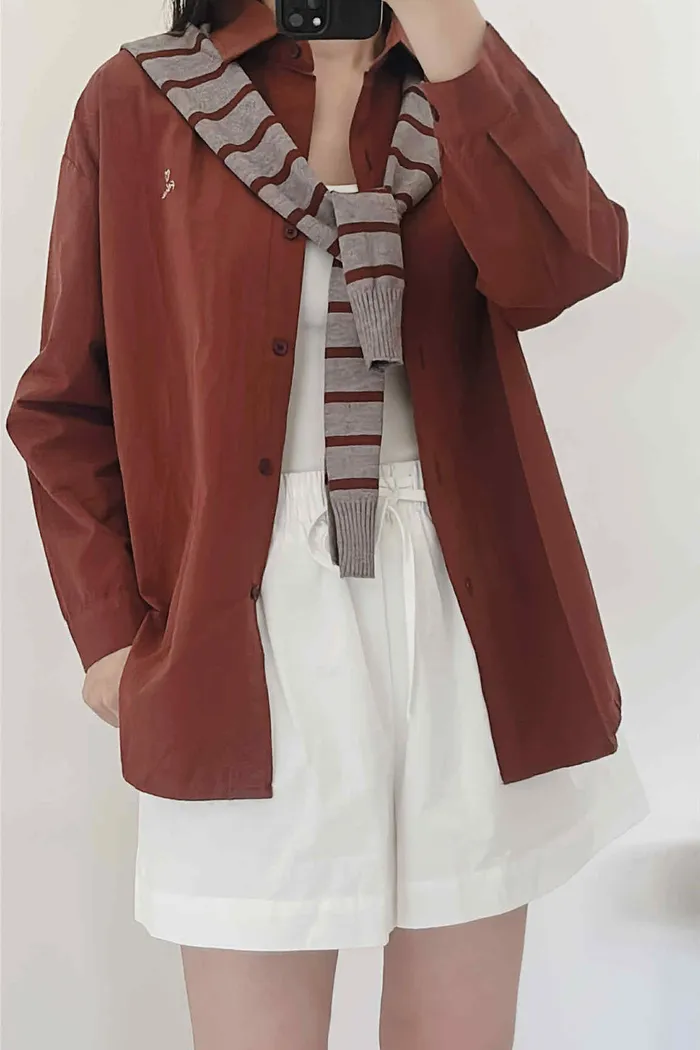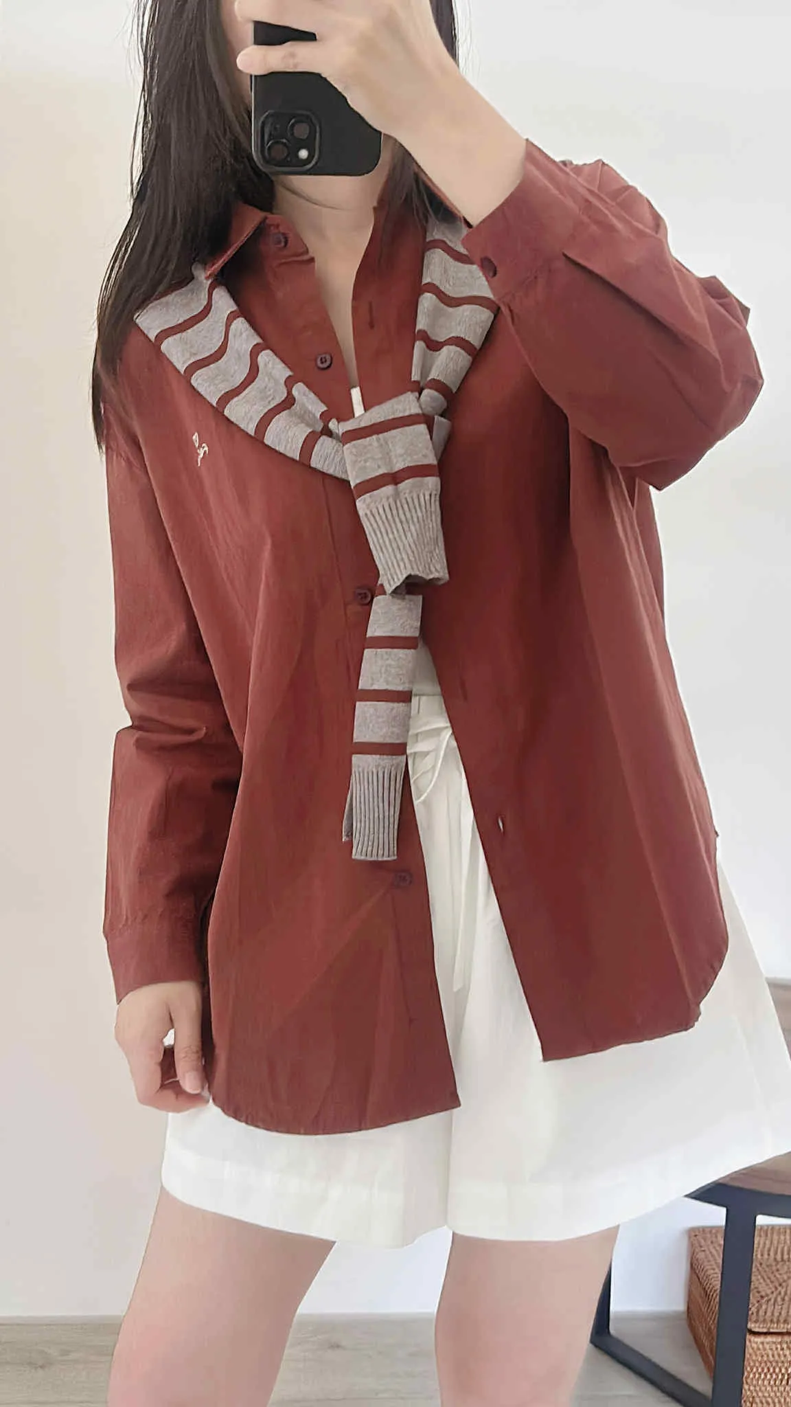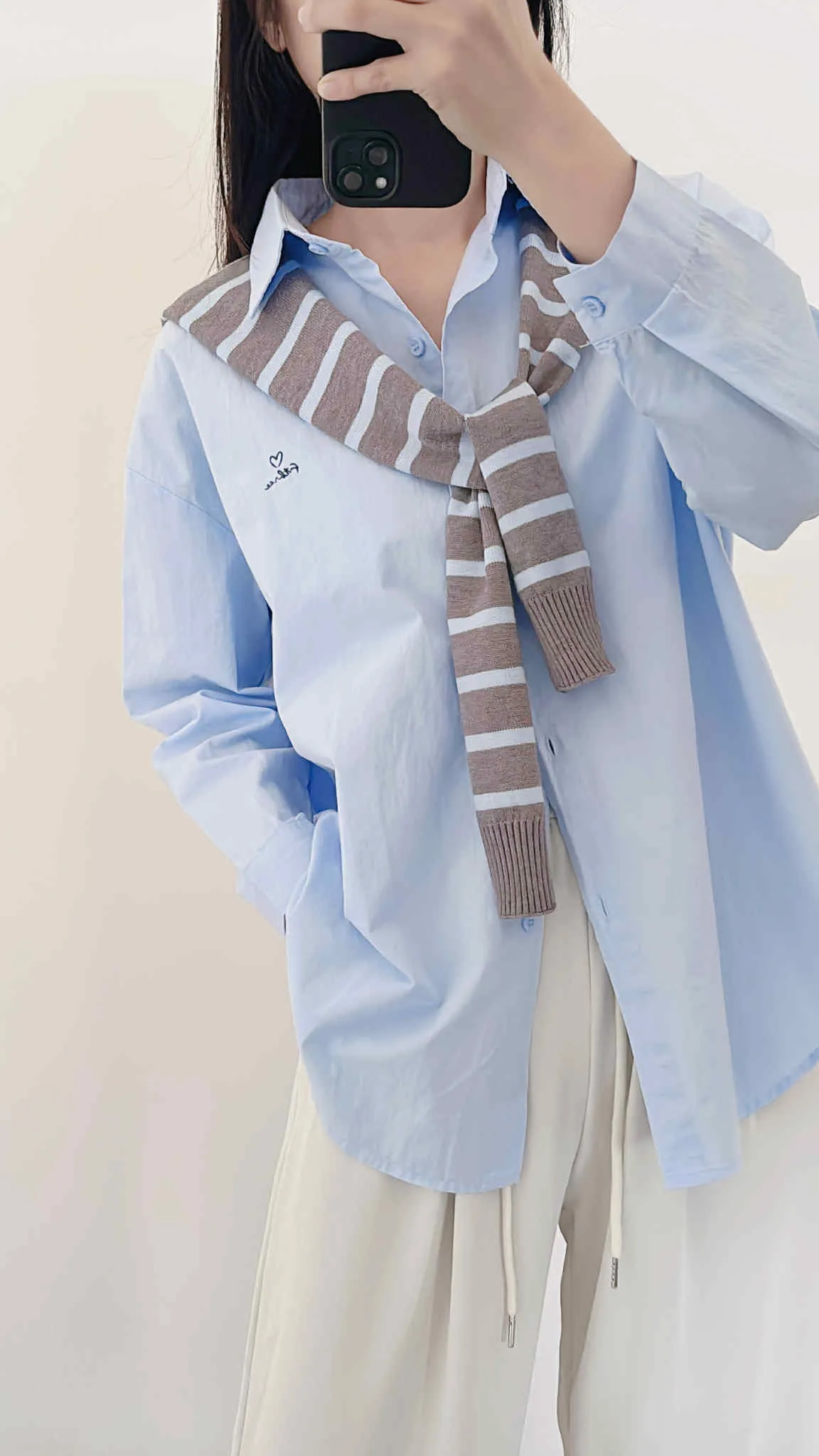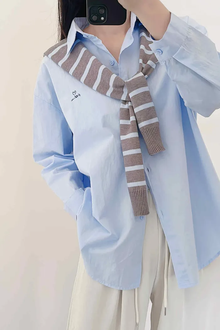 輕薄款/精緻小字刺繡水洗棉襯衫(附可拆式披肩)/大胸友善