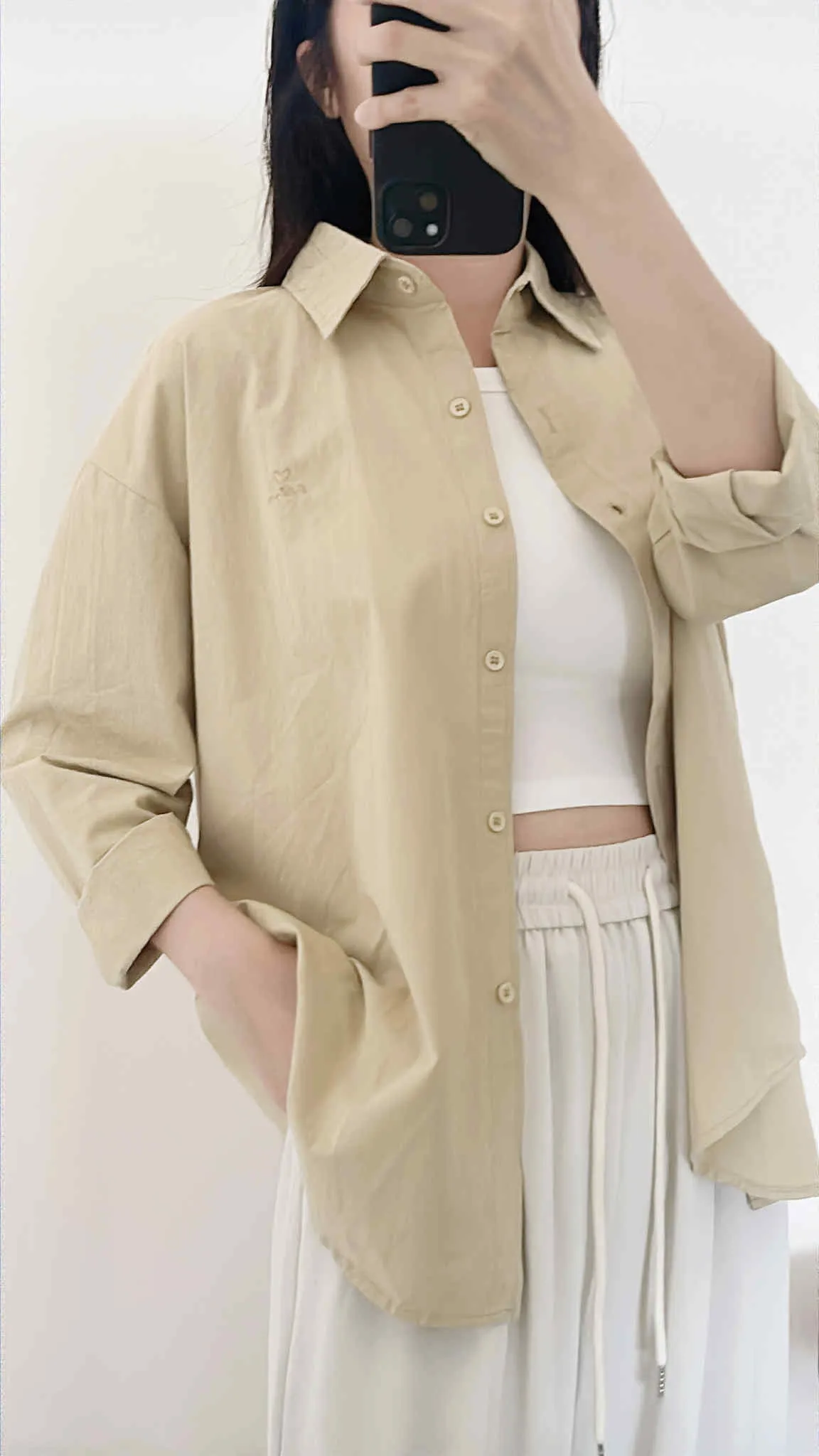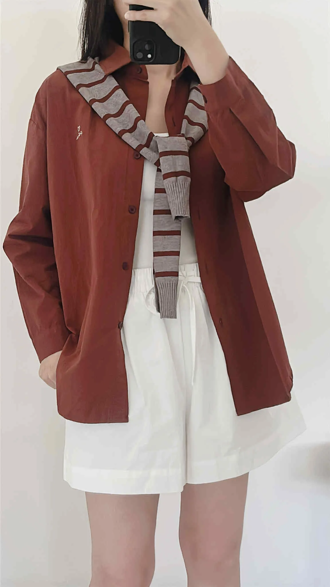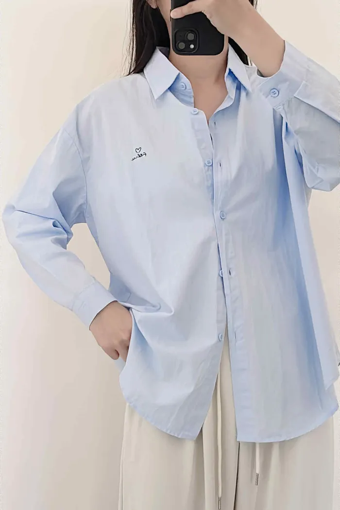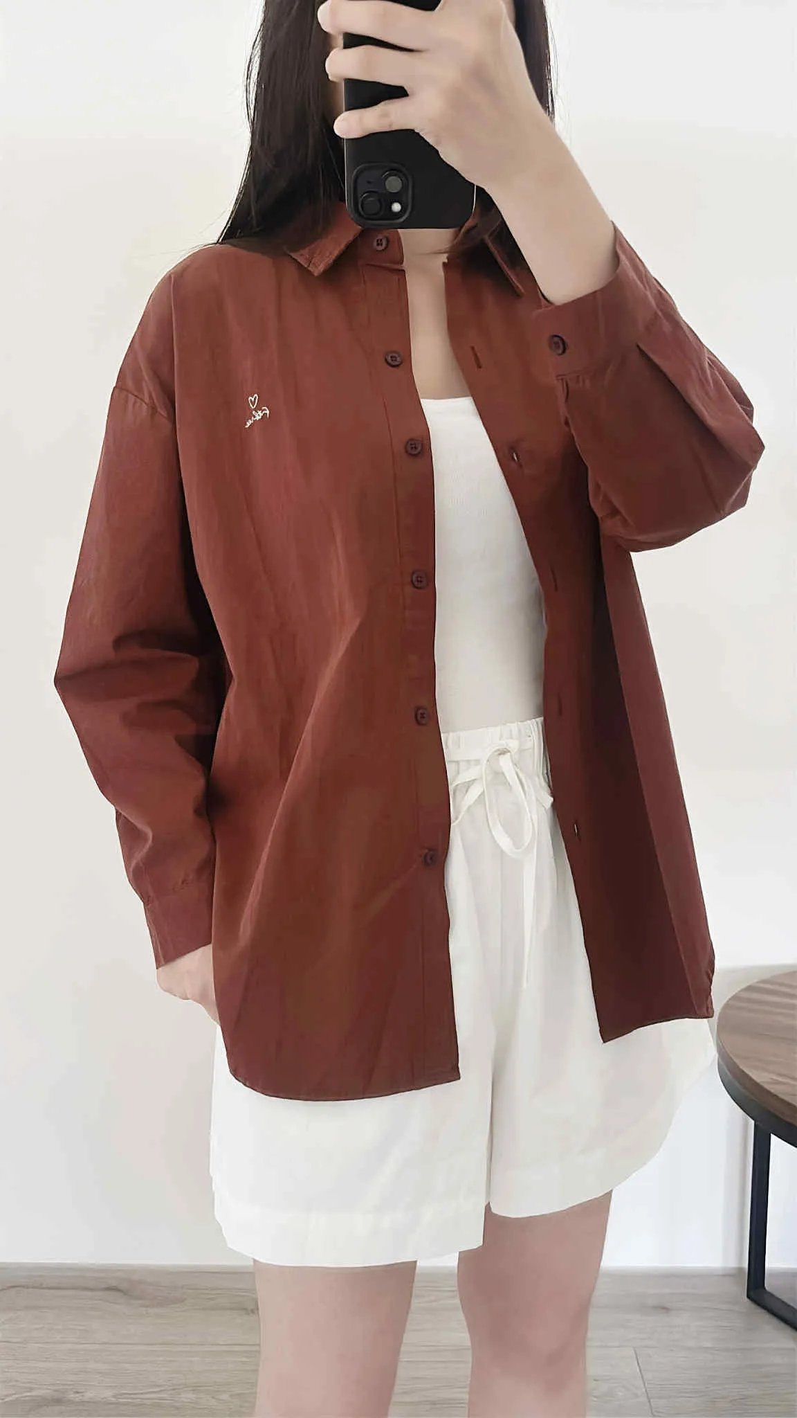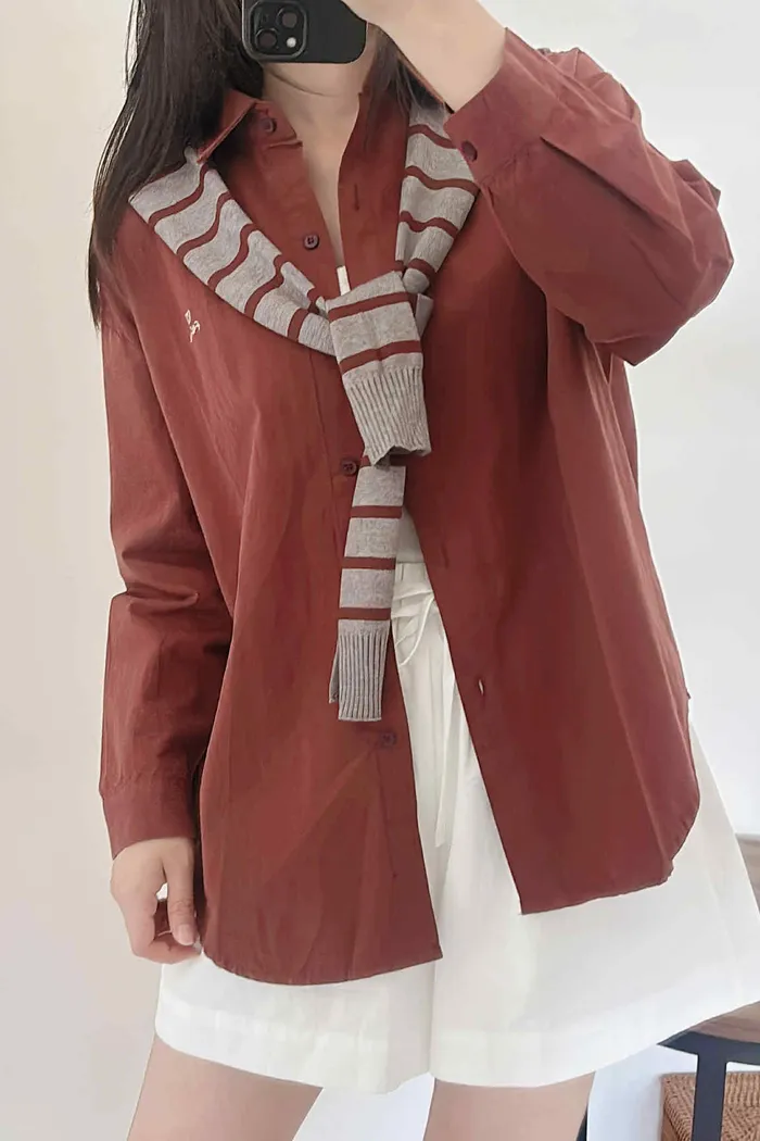 輕薄款/精緻小字刺繡水洗棉襯衫(附可拆式披肩)/大胸友善