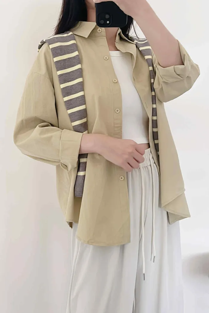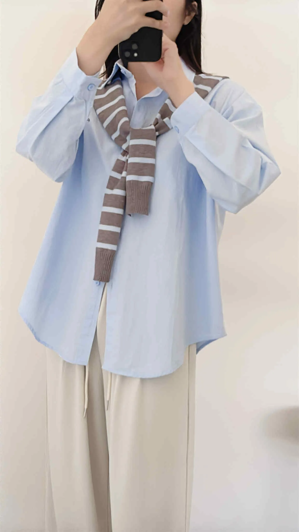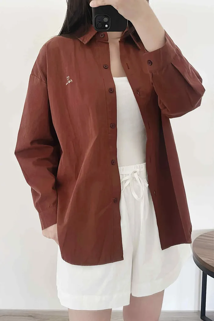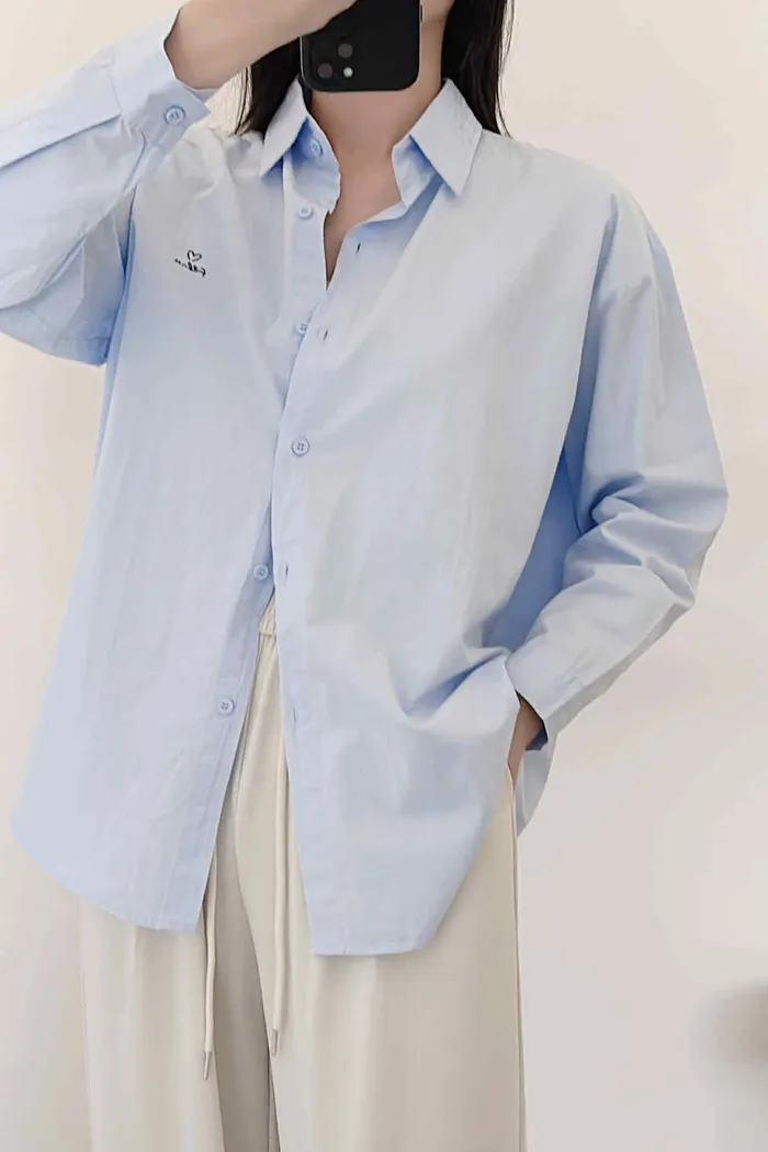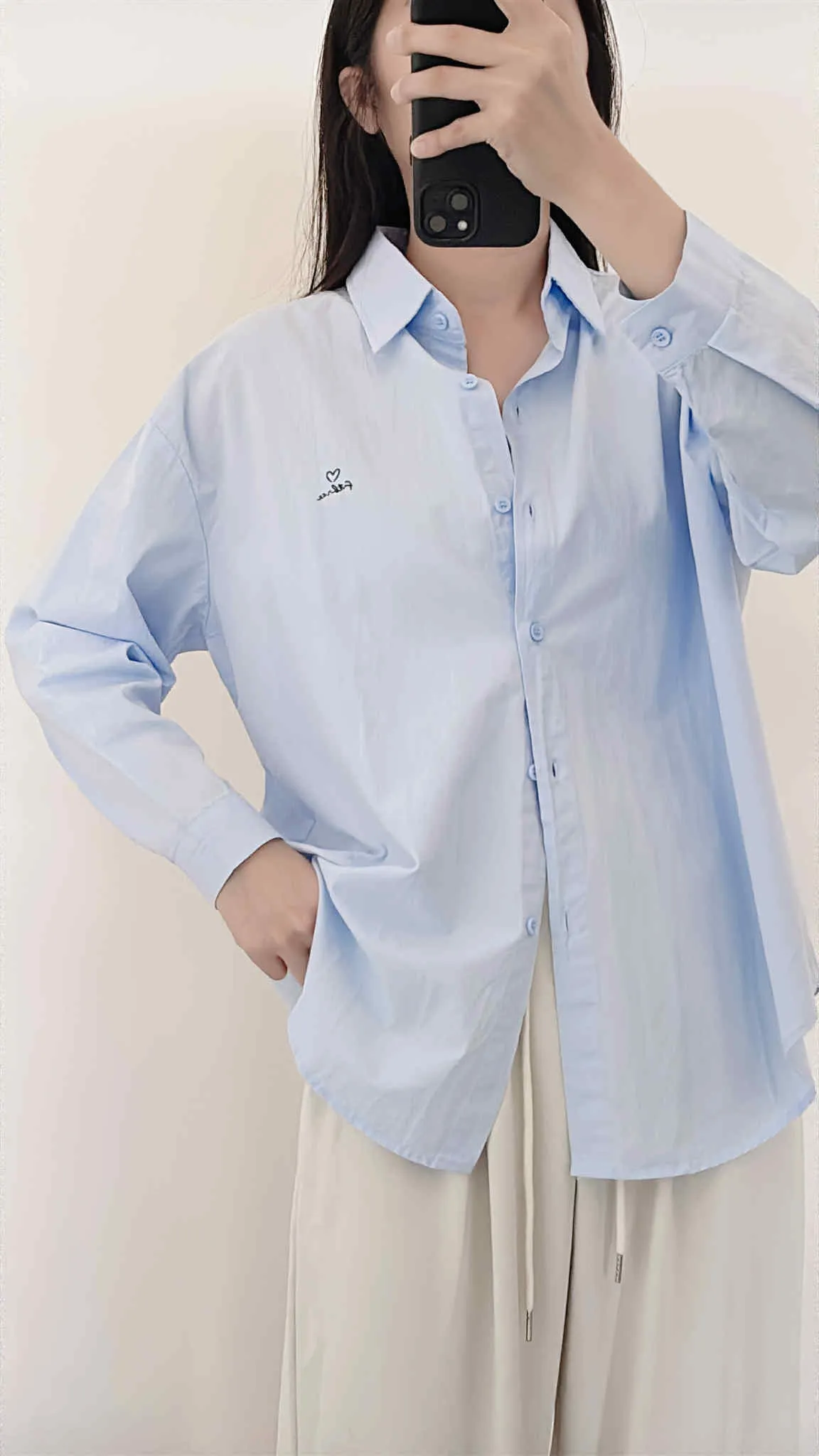 輕薄款/精緻小字刺繡水洗棉襯衫(附可拆式披肩)/大胸友善