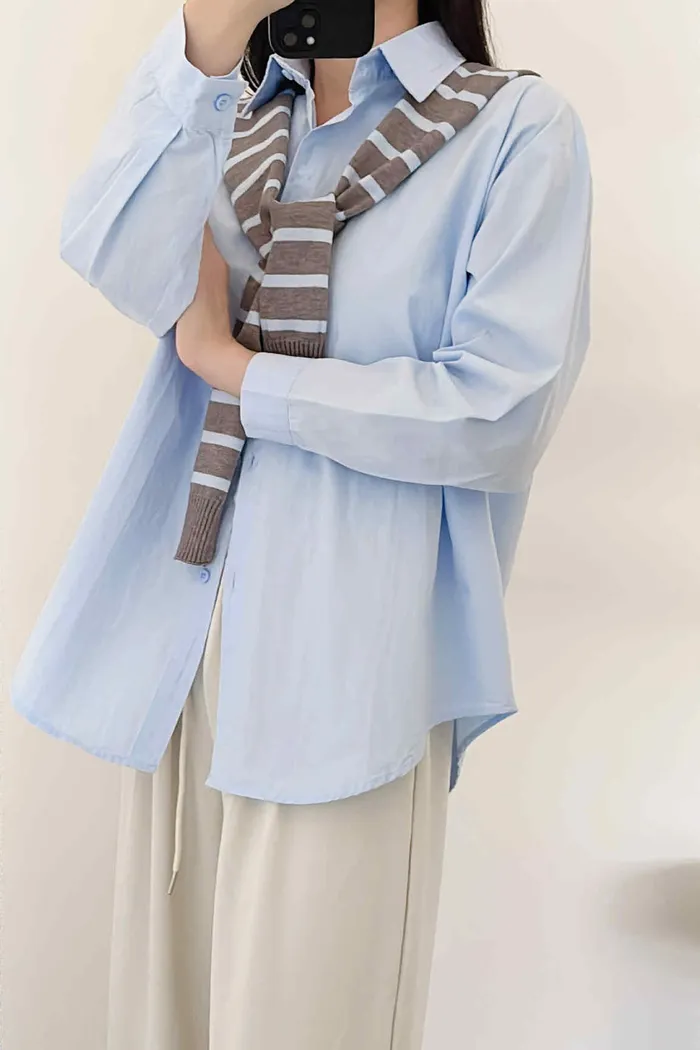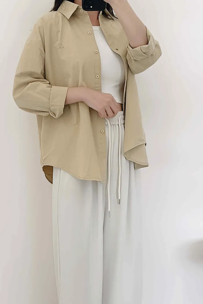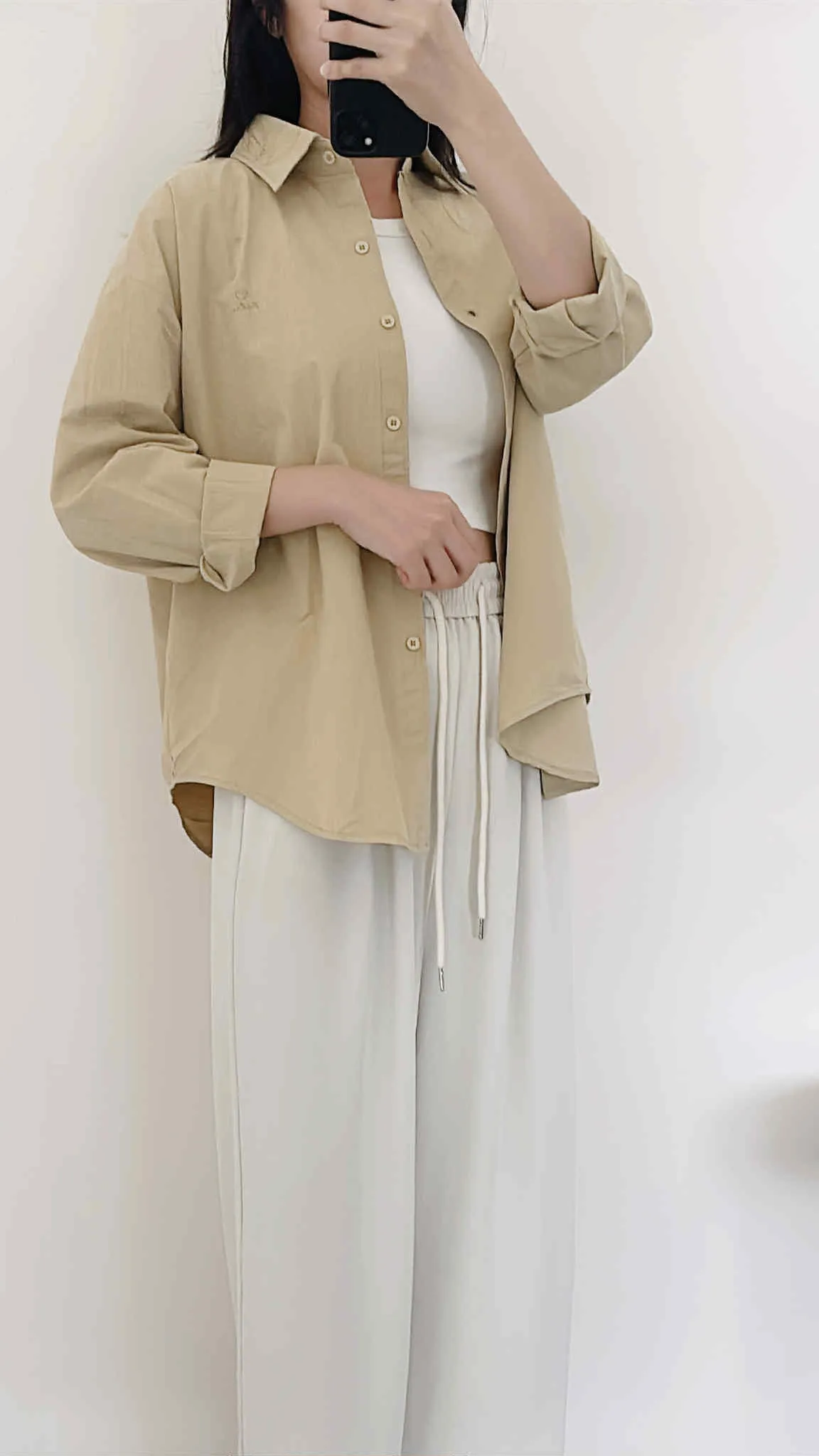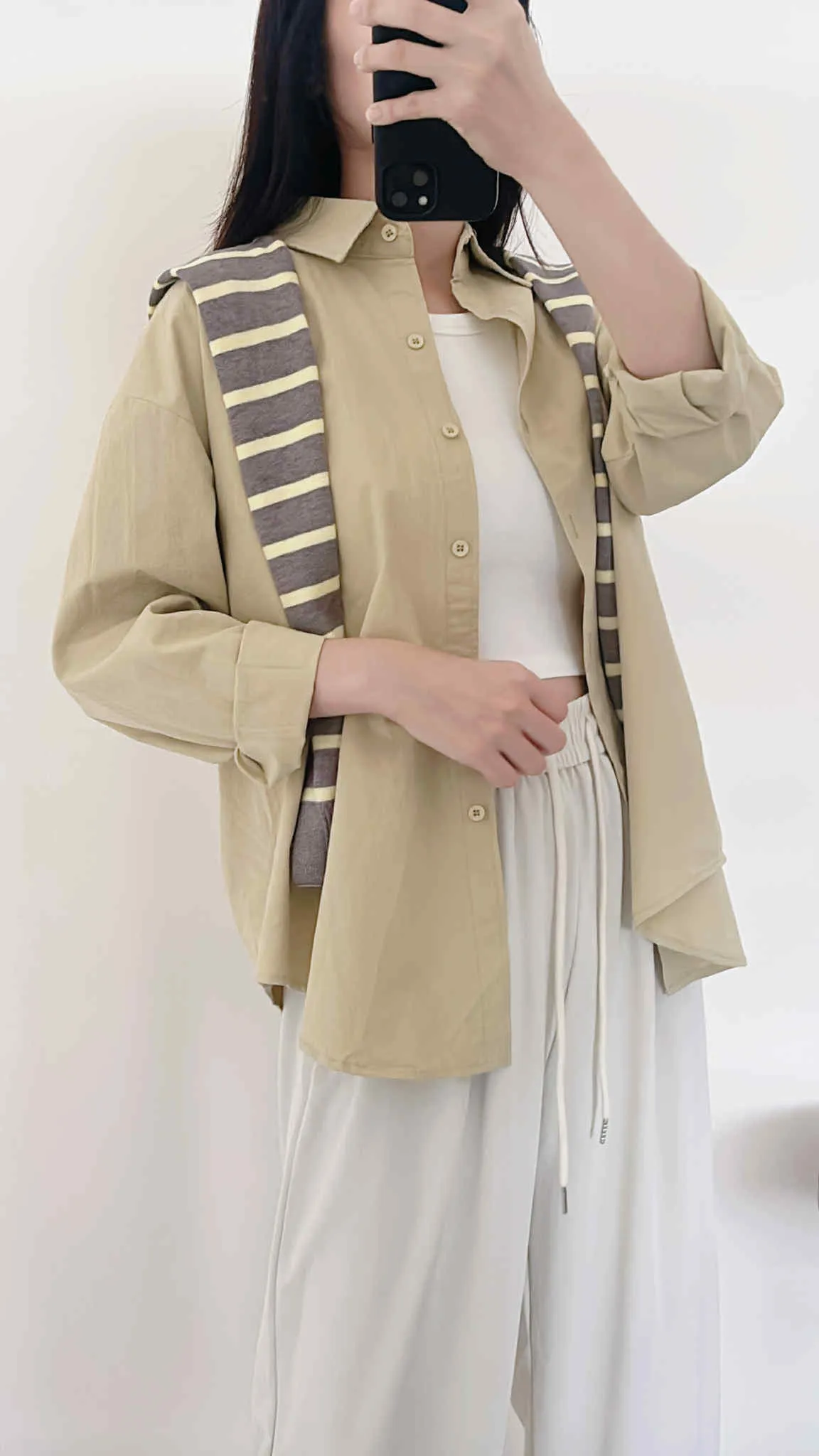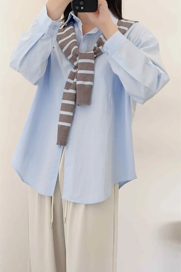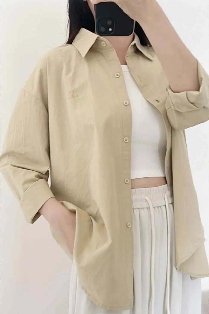 輕薄款/精緻小字刺繡水洗棉襯衫(附可拆式披肩)/大胸友善