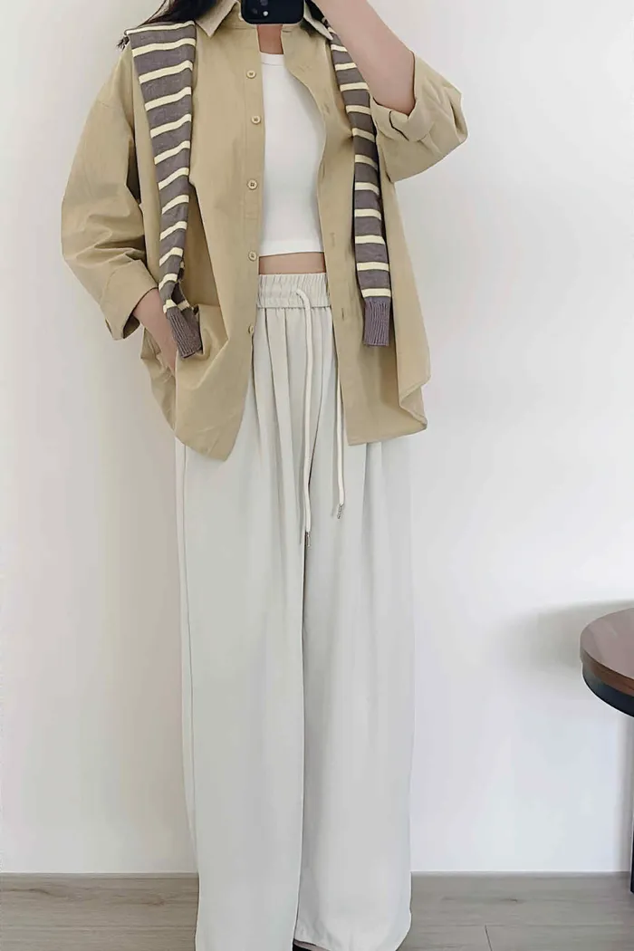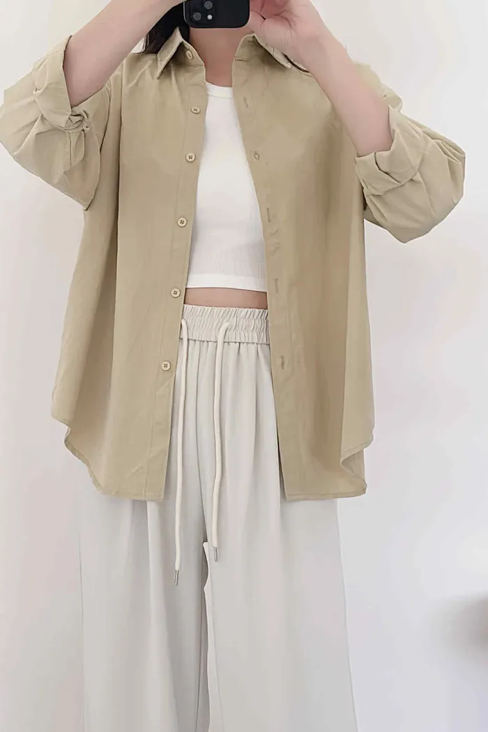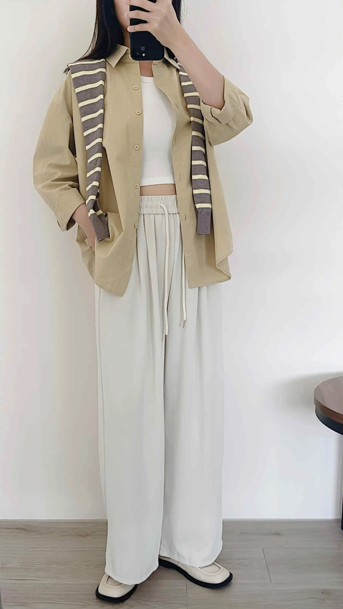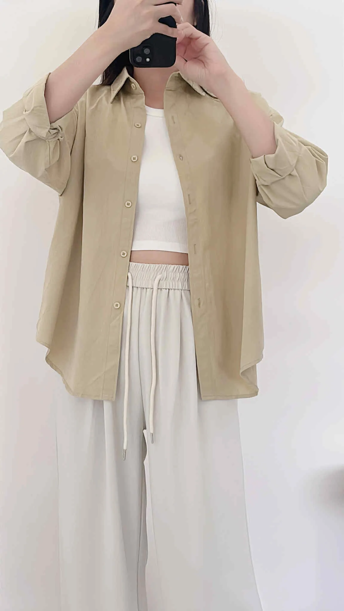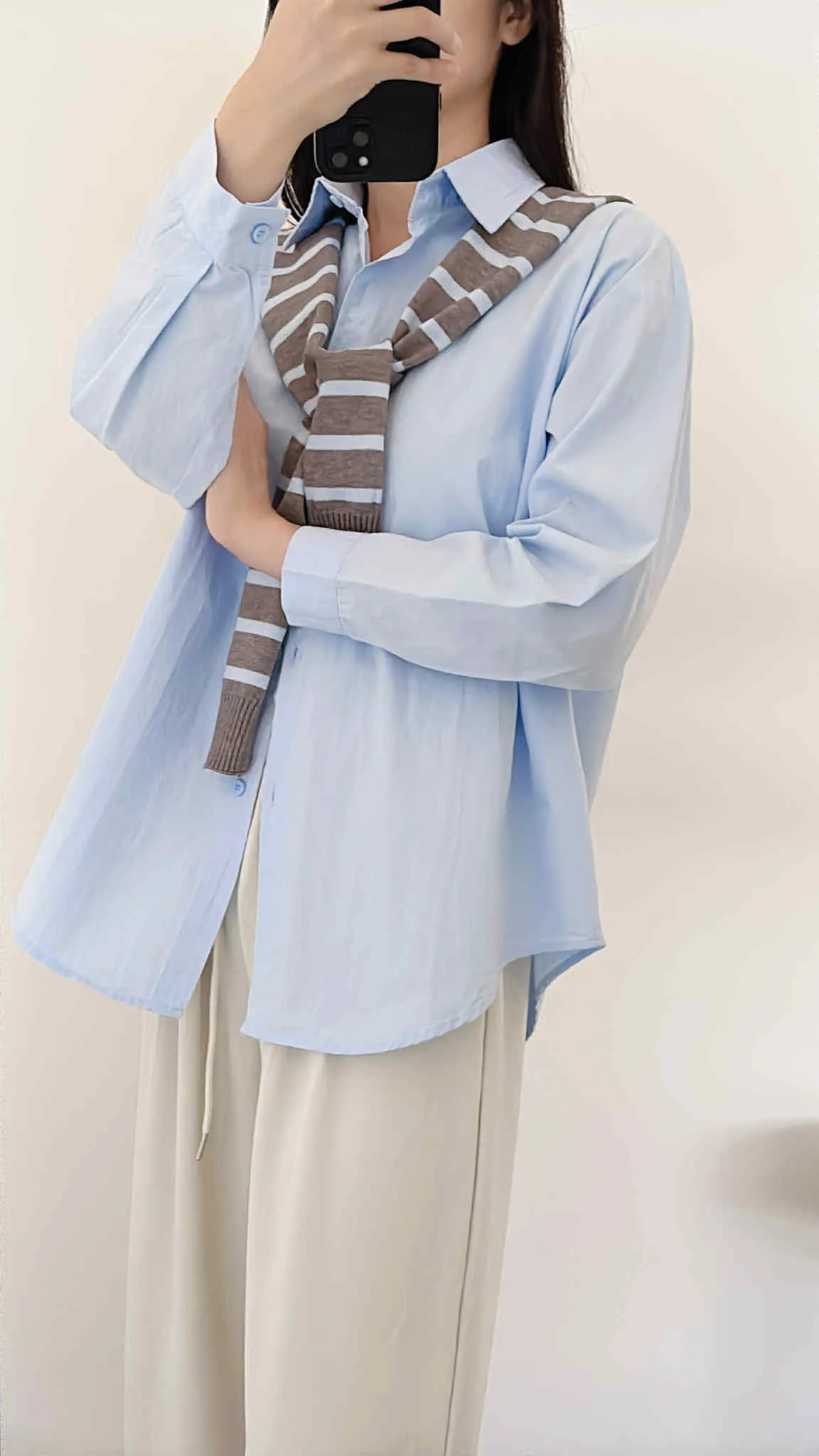 輕薄款/精緻小字刺繡水洗棉襯衫(附可拆式披肩)/大胸友善