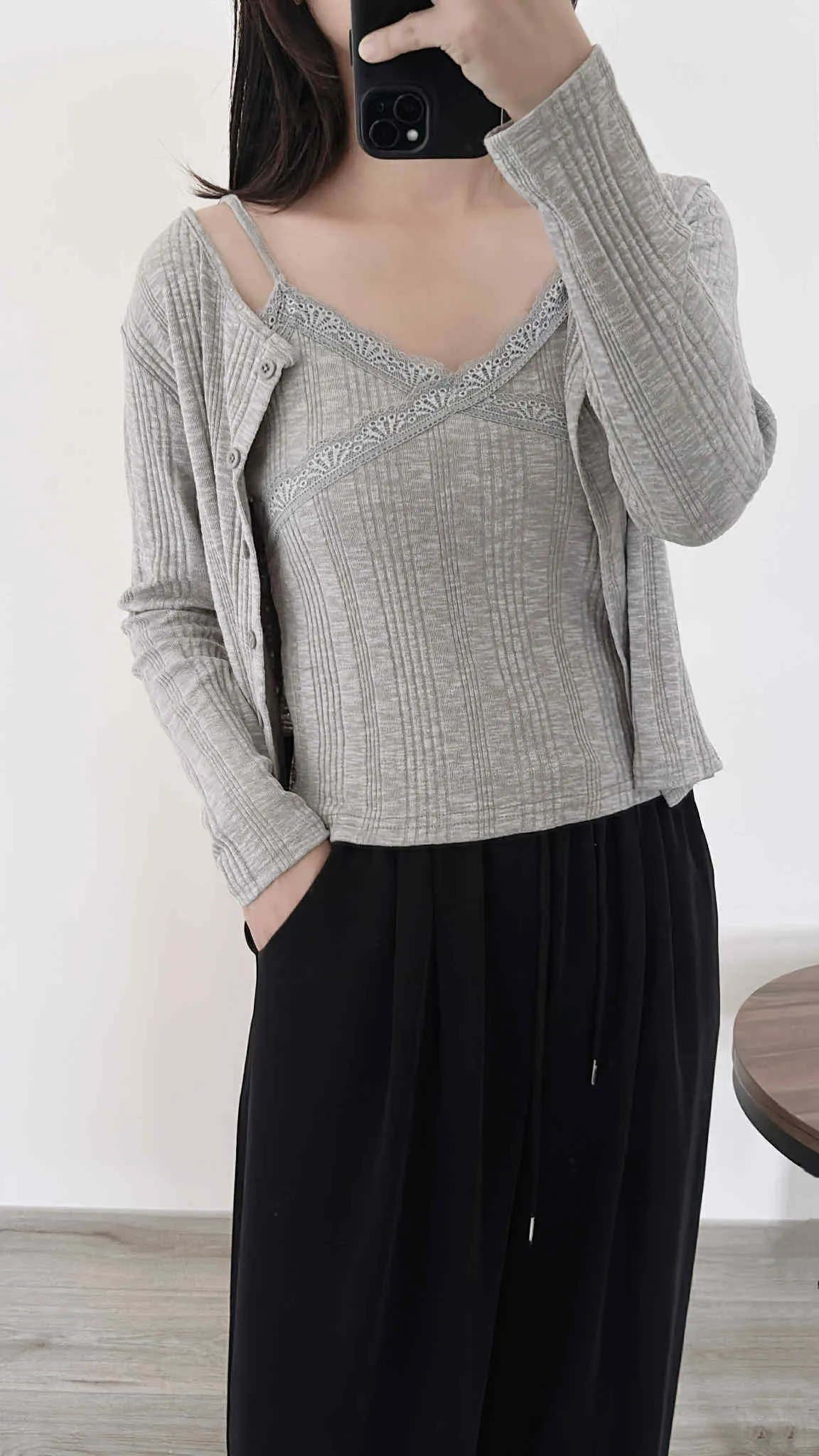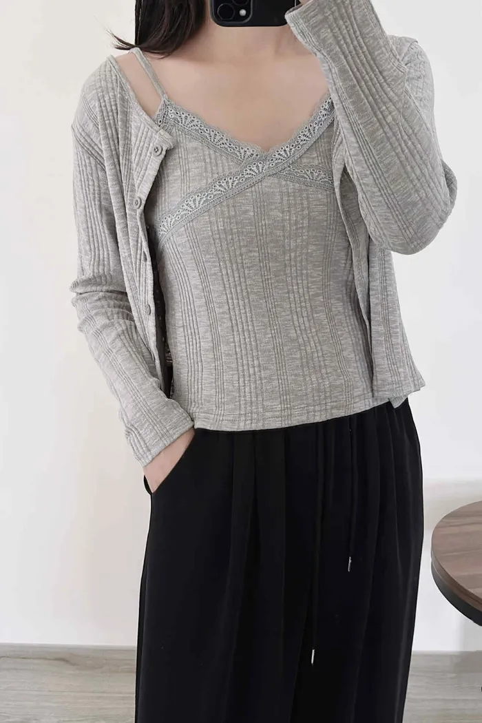 輕薄款/顯氣質造型開釦柔棉兩件組(外搭+背心)
