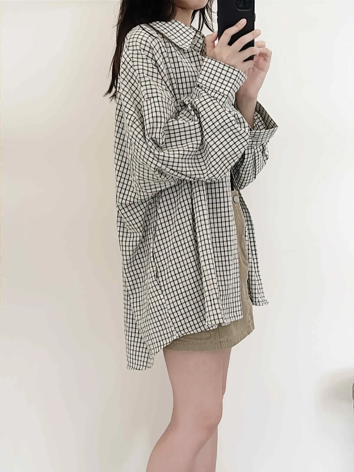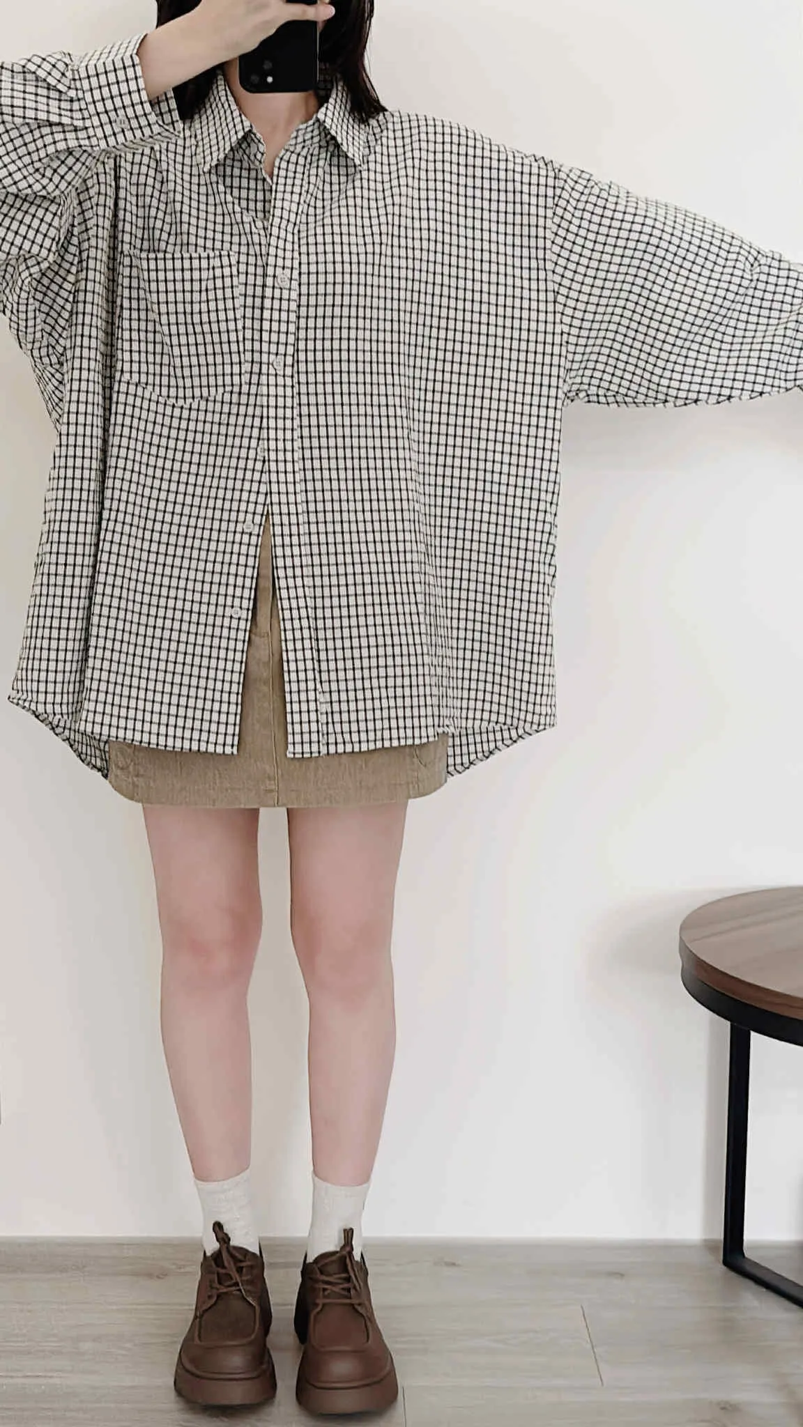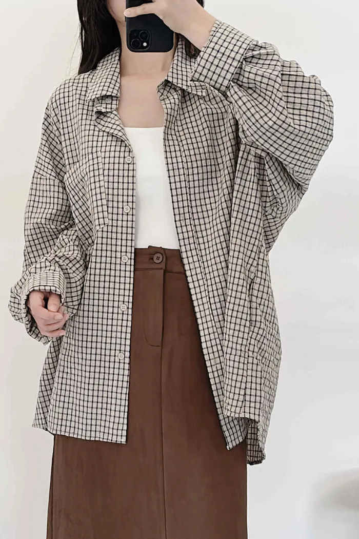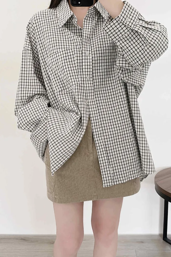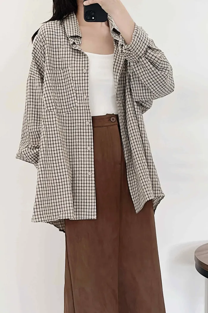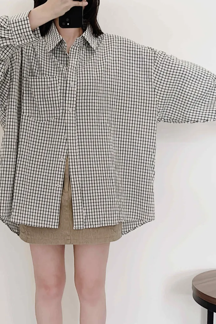 極輕薄/oversize隨性套著走格紋襯衫/大胸友善/有口袋/100kg以下都可以