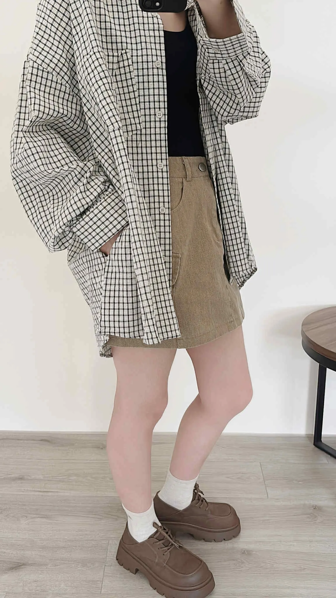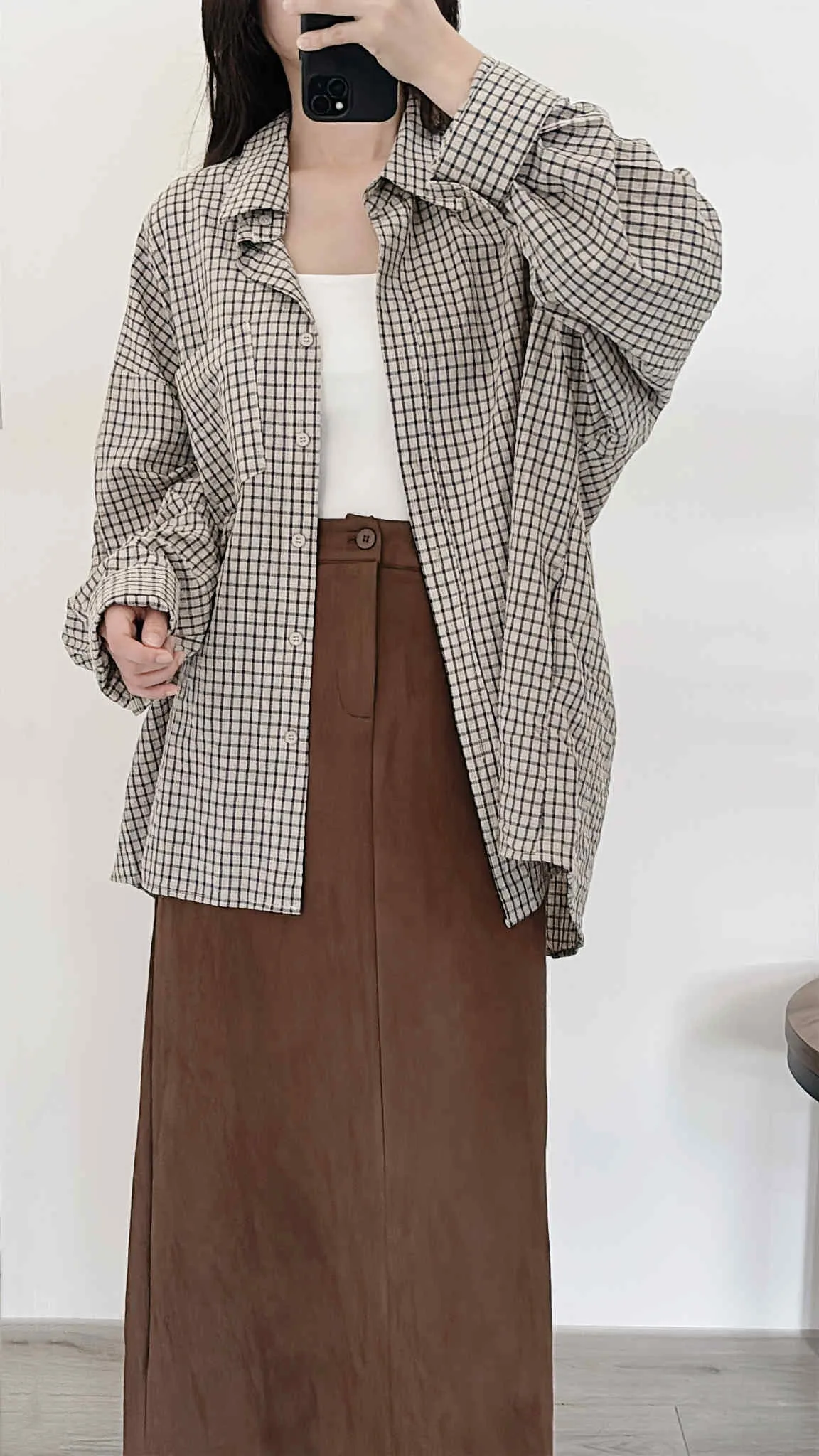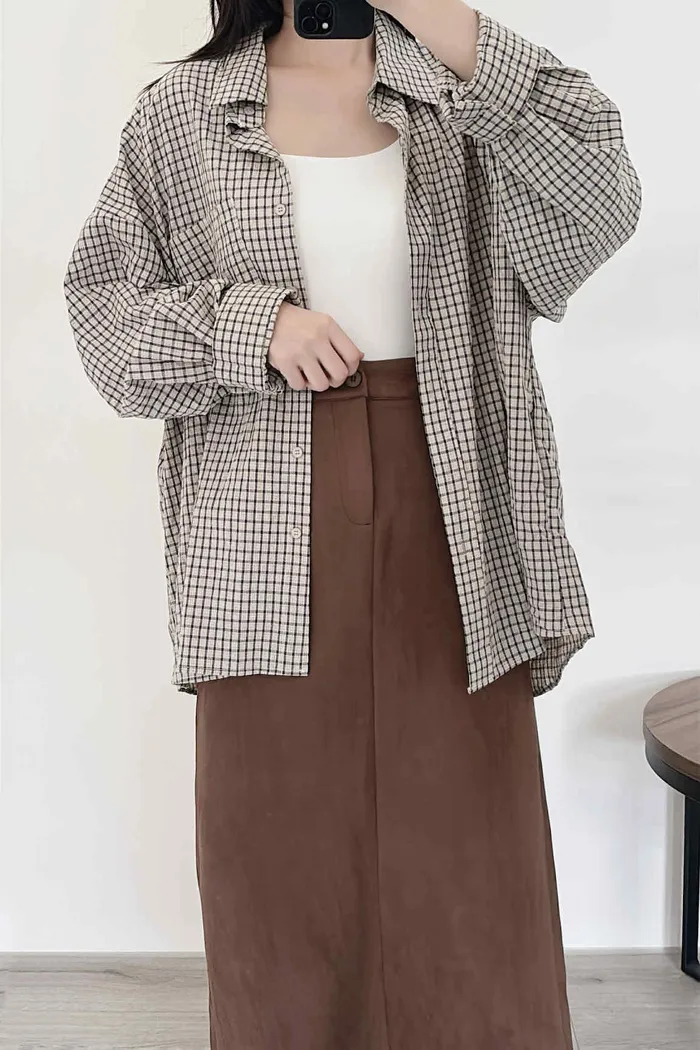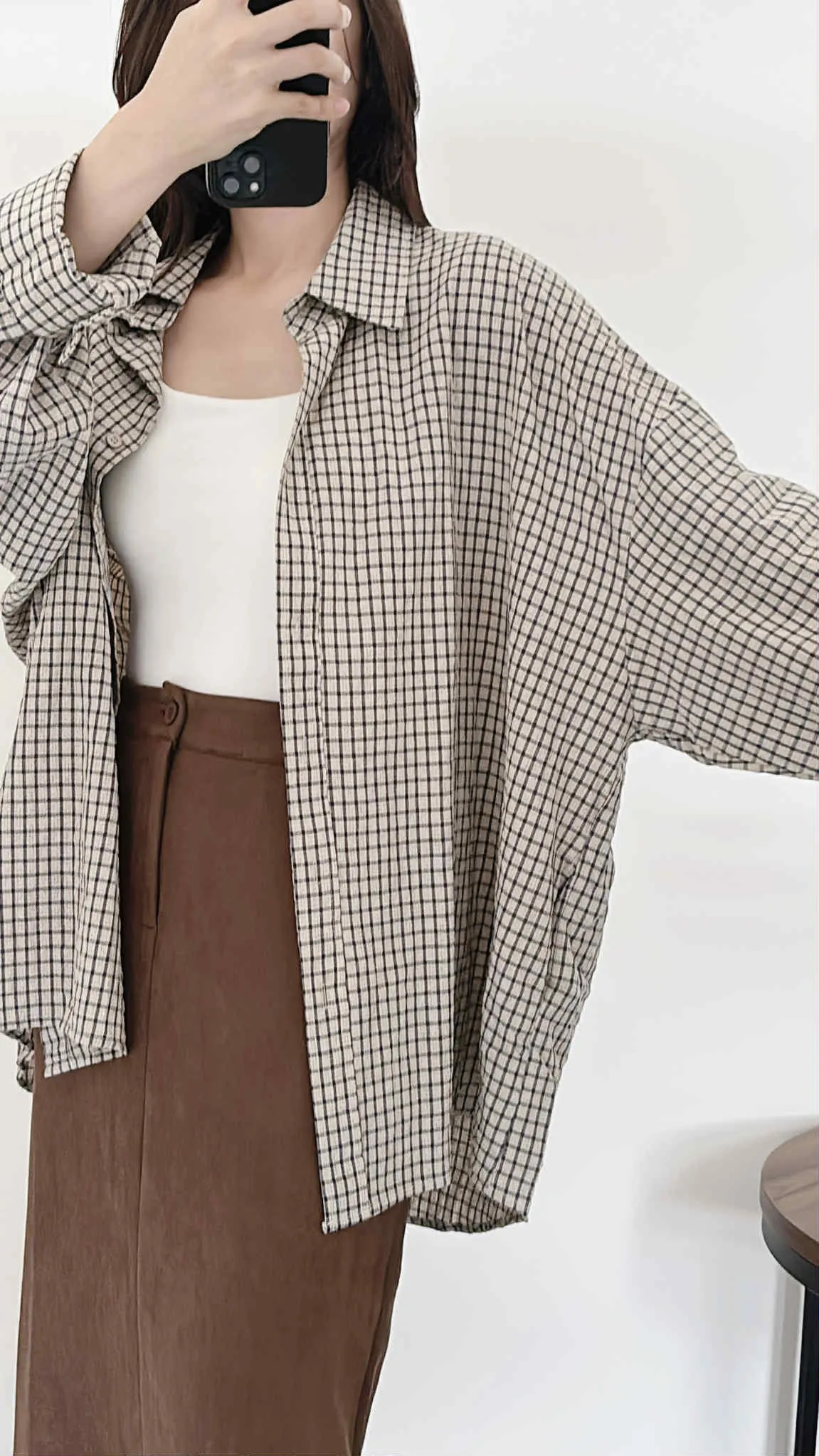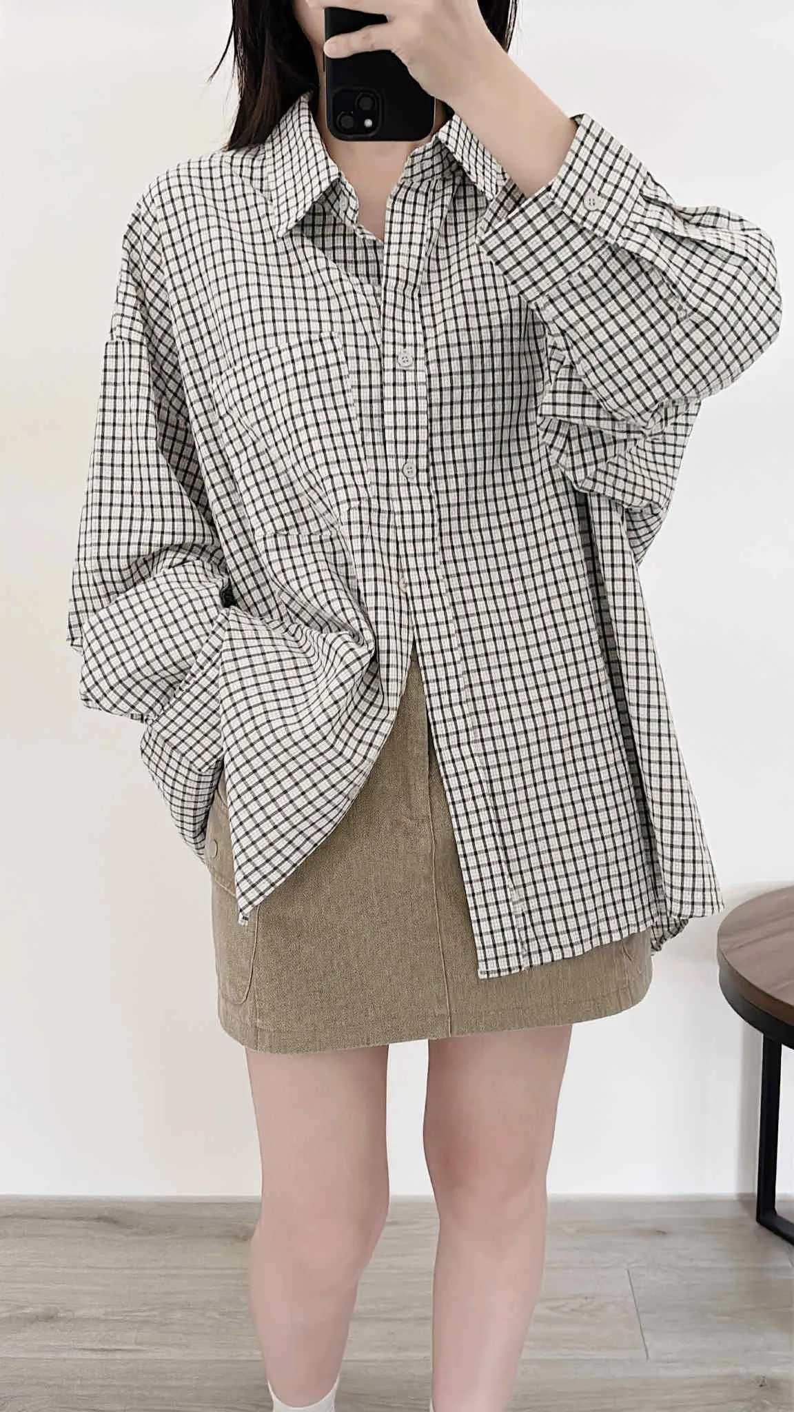 極輕薄/oversize隨性套著走格紋襯衫/大胸友善/有口袋/100kg以下都可以