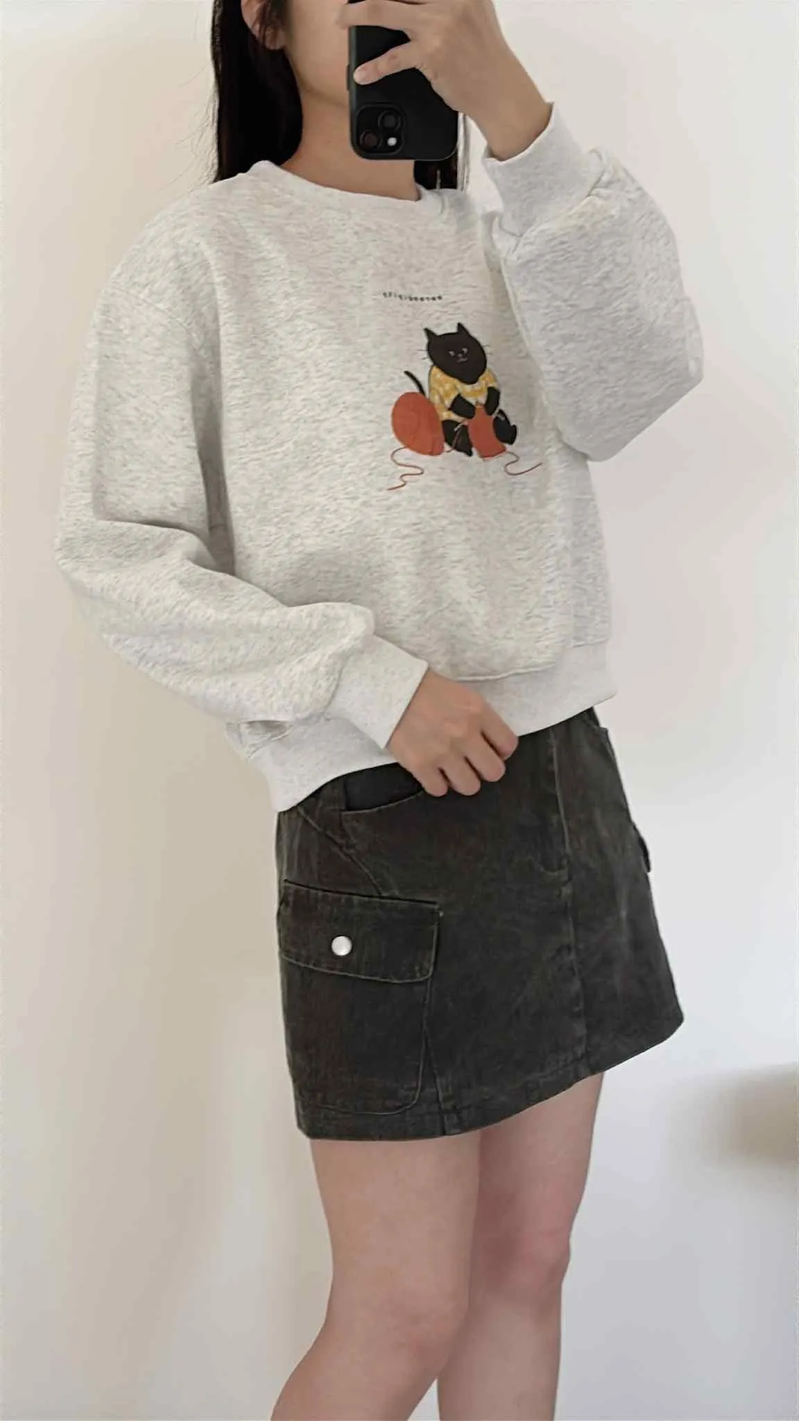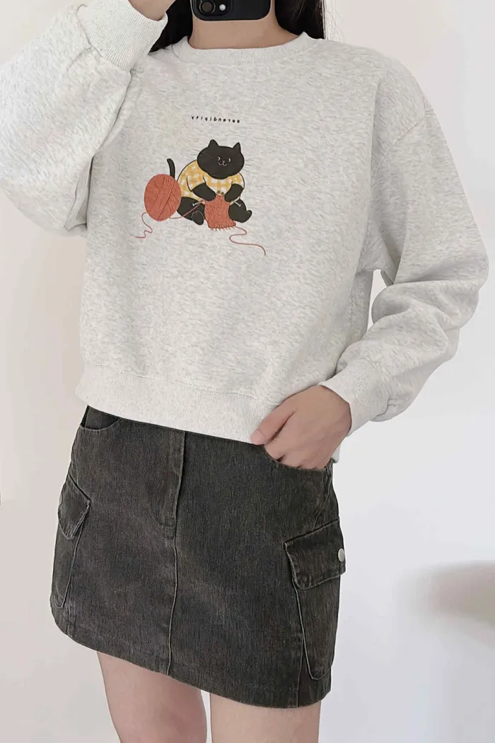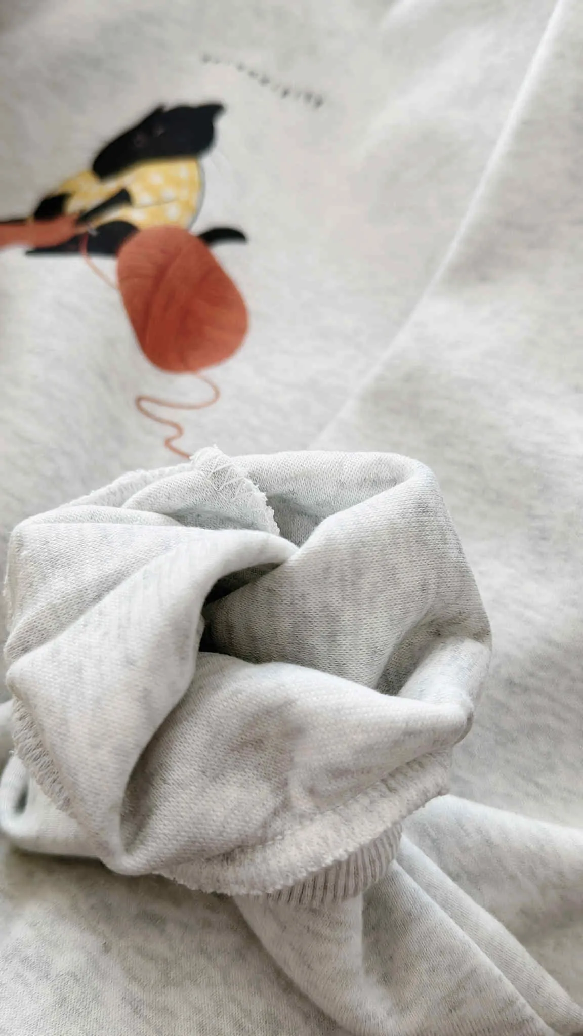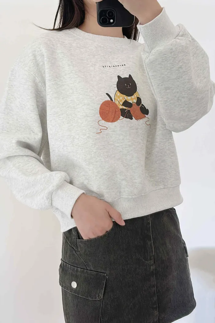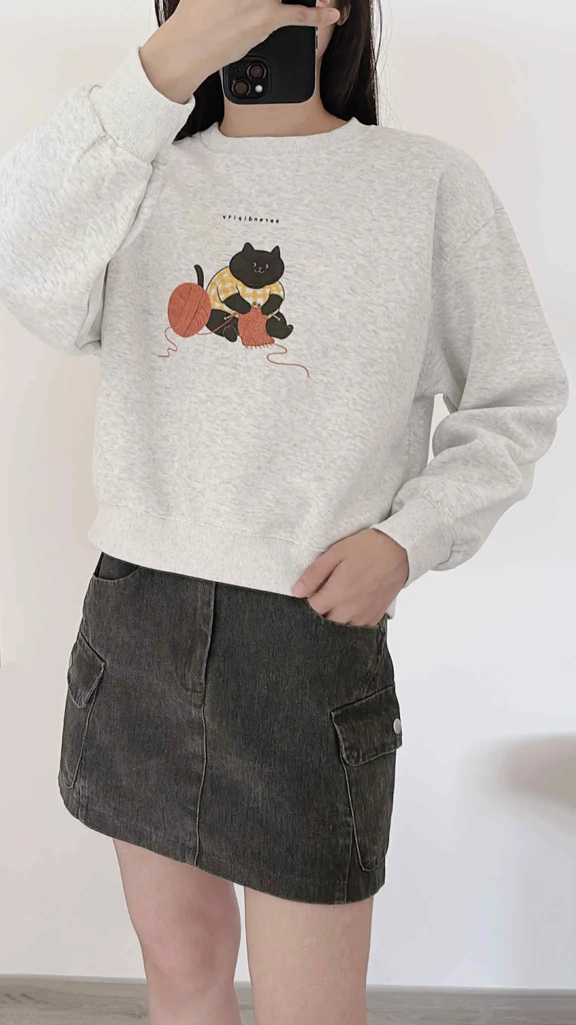 推薦款/微短版/織毛線圓滾滾貓貓柔棉大學tee/內無刷毛
