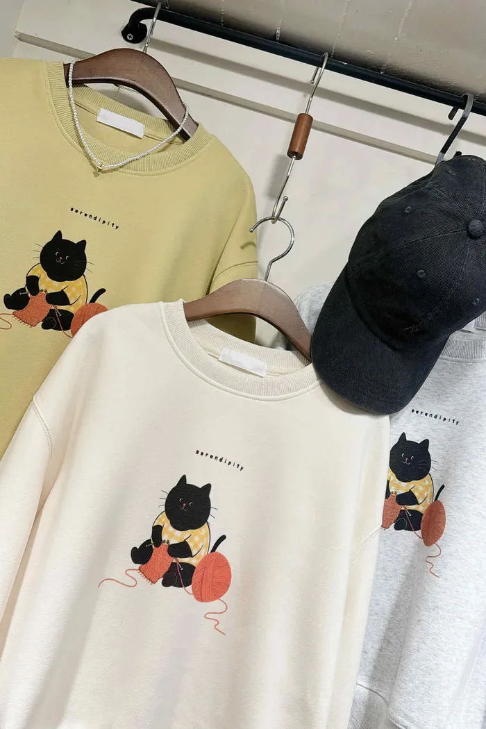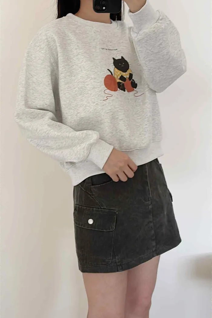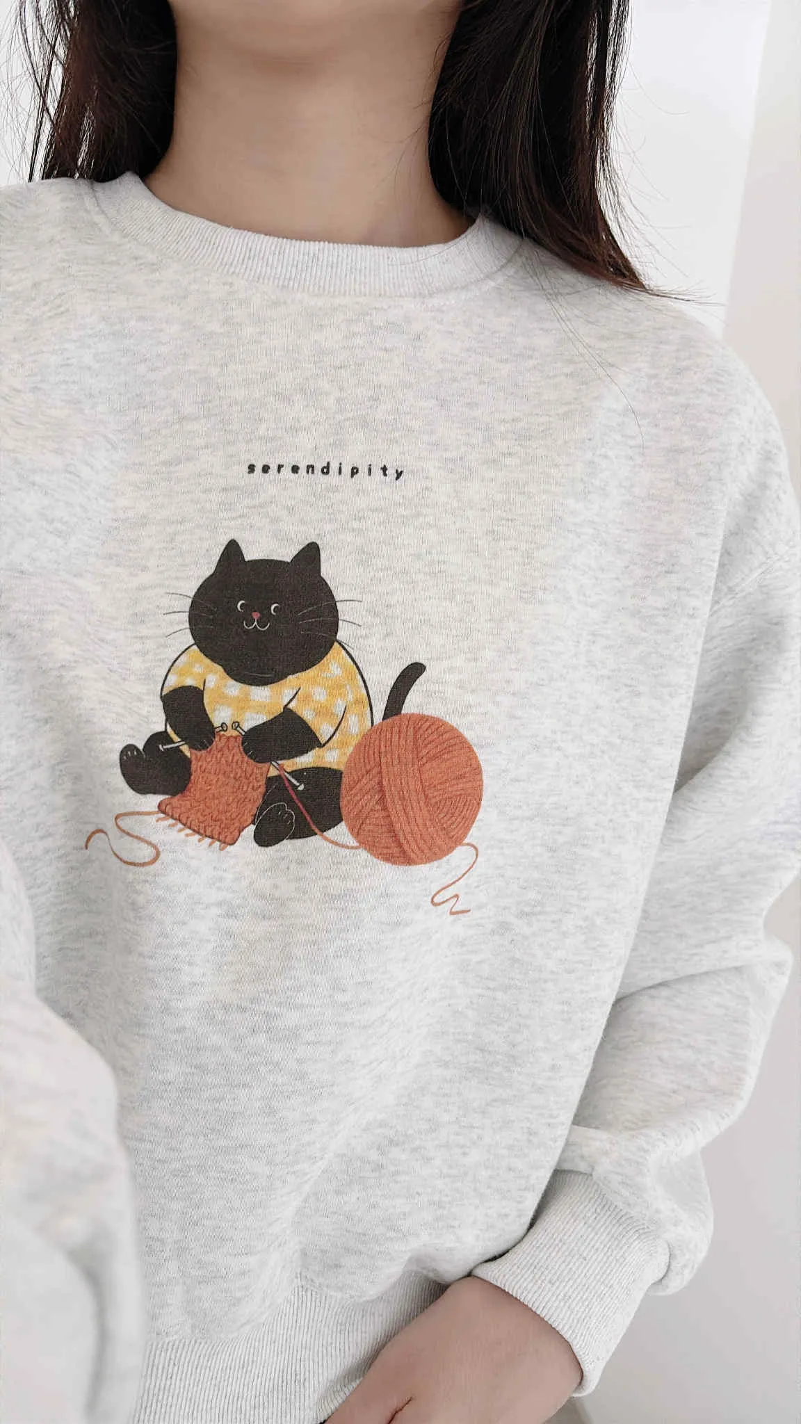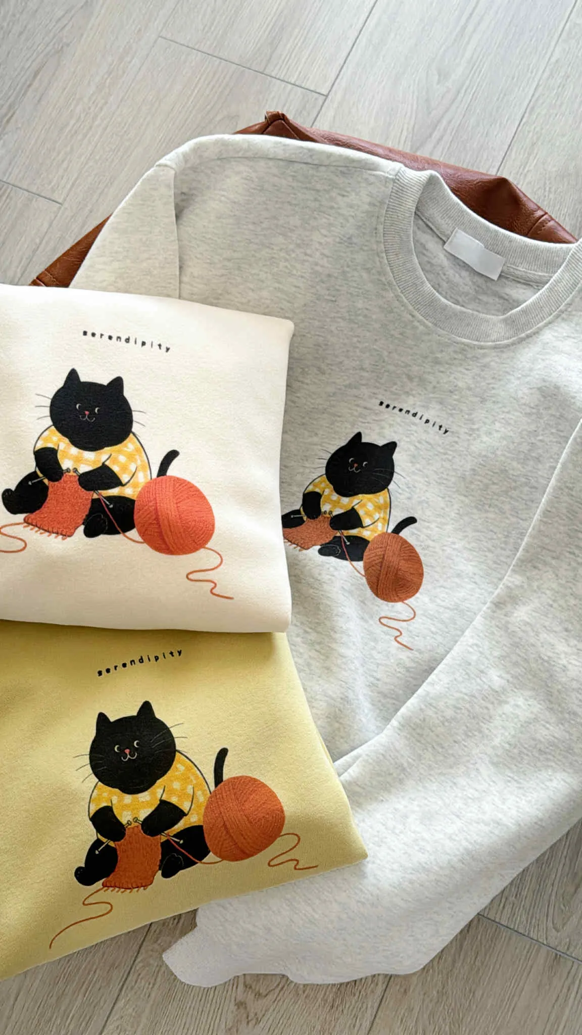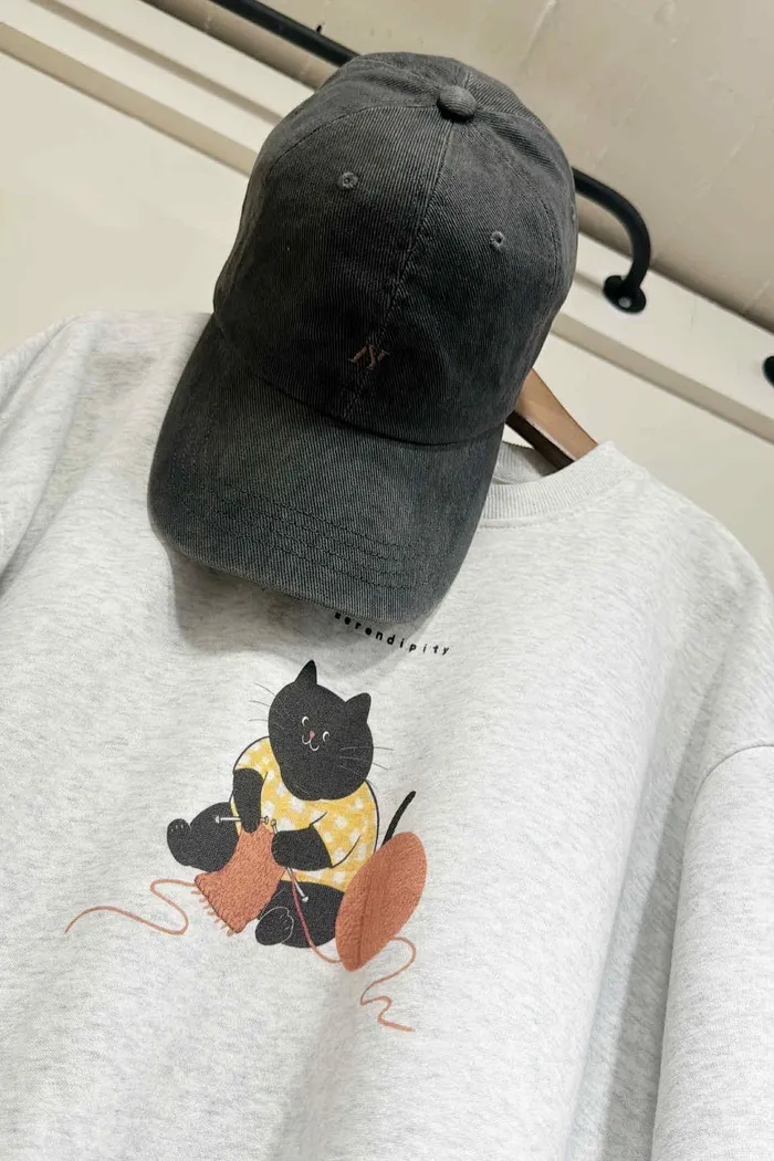 推薦款/微短版/織毛線圓滾滾貓貓柔棉大學tee/內無刷毛
