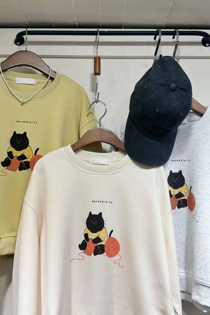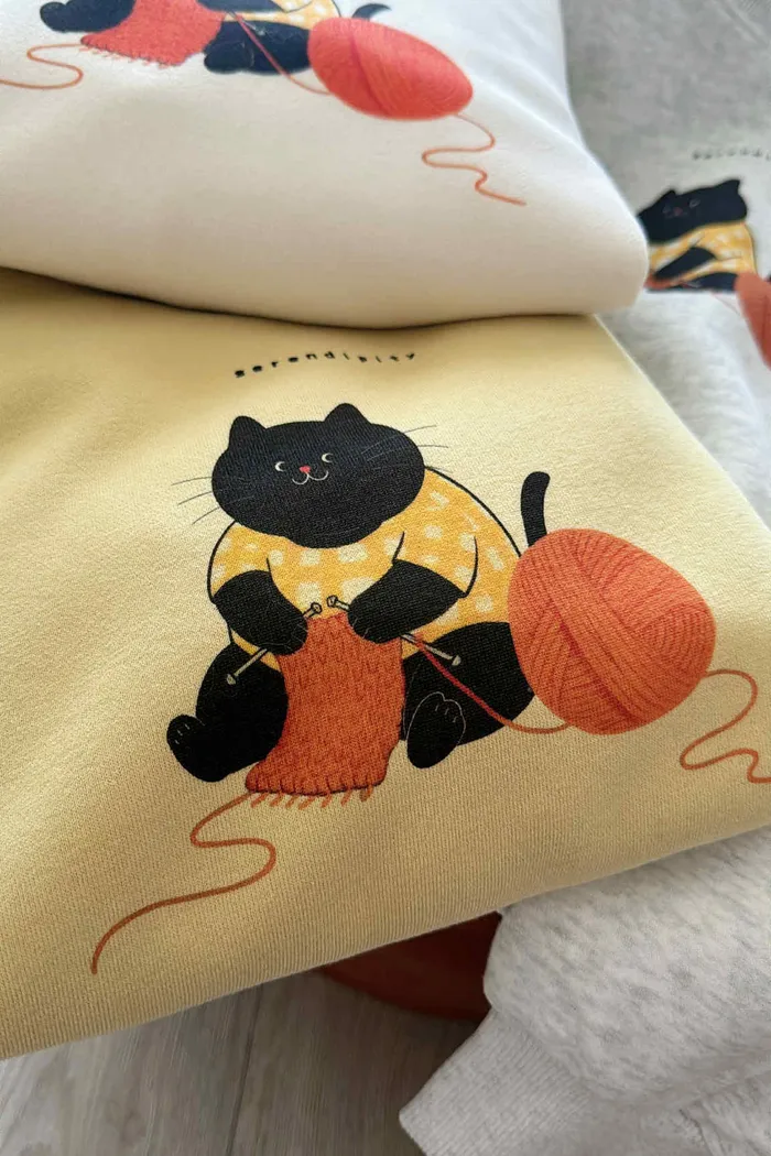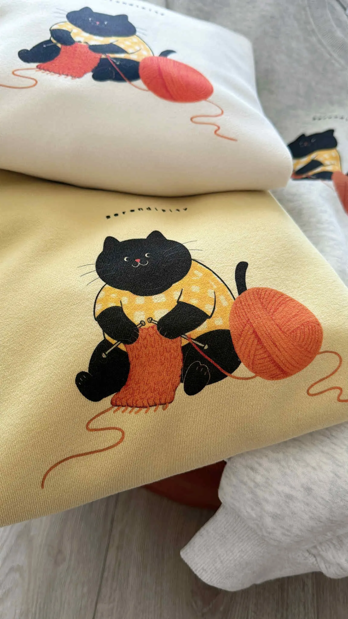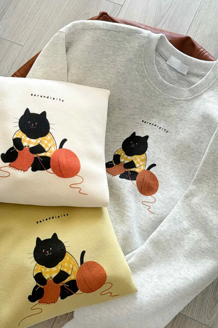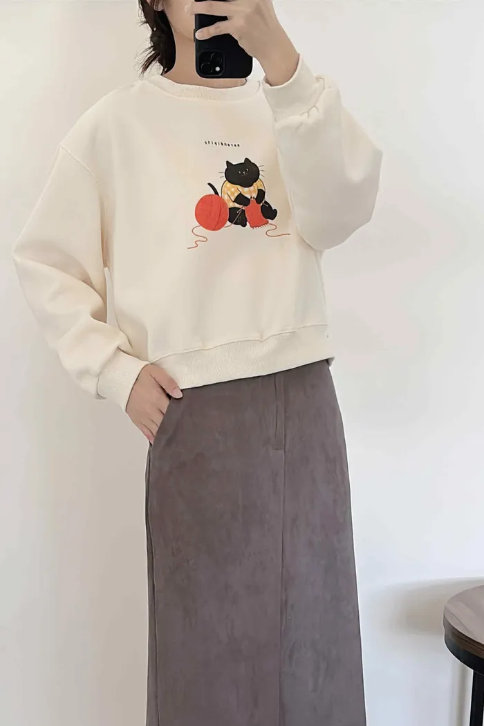 推薦款/微短版/織毛線圓滾滾貓貓柔棉大學tee/內無刷毛