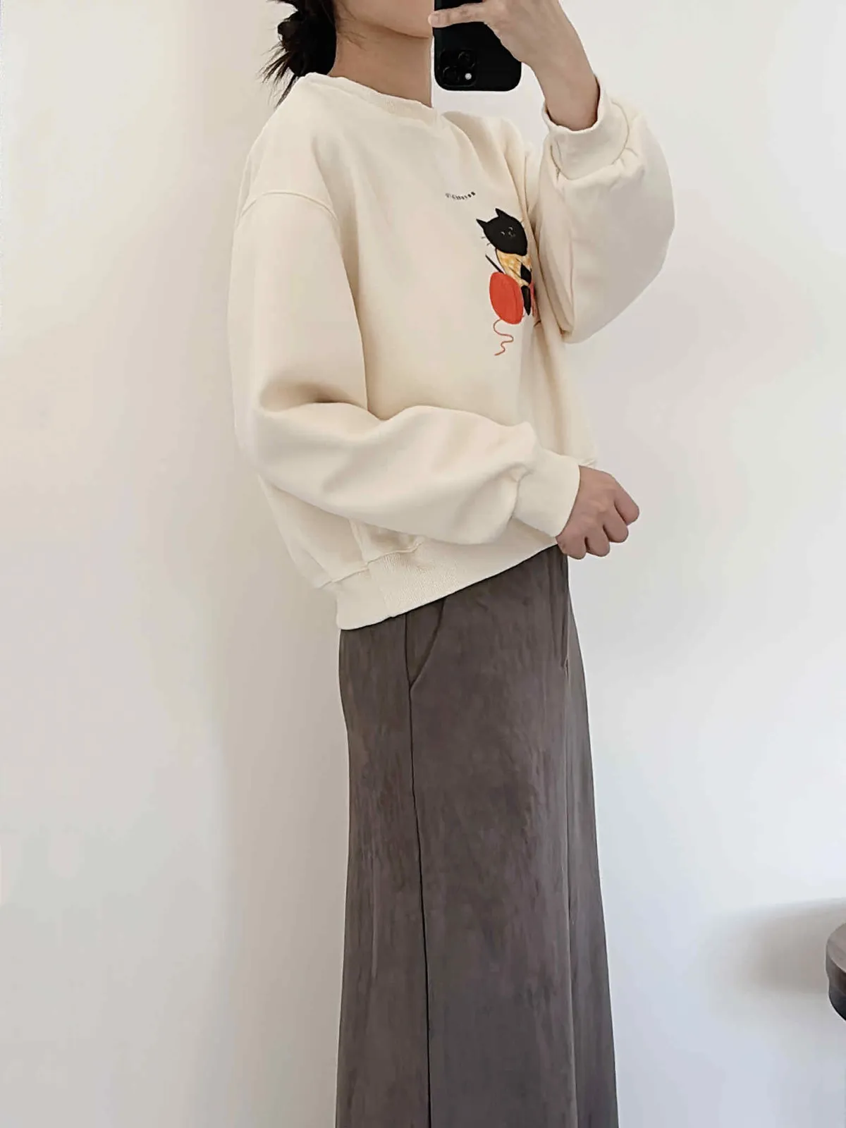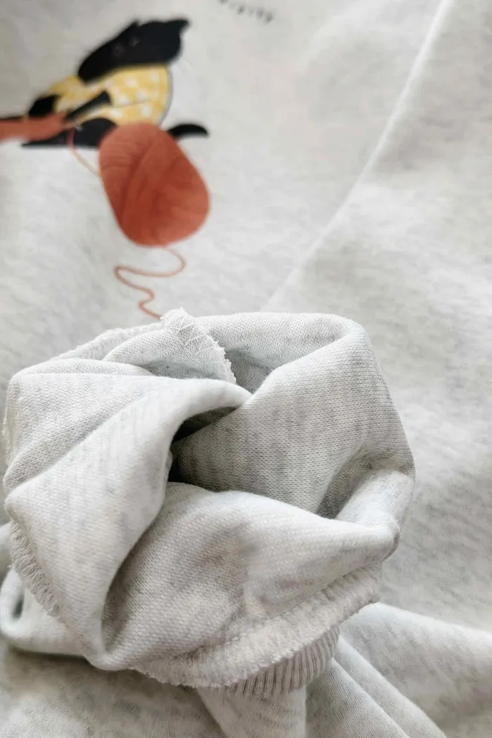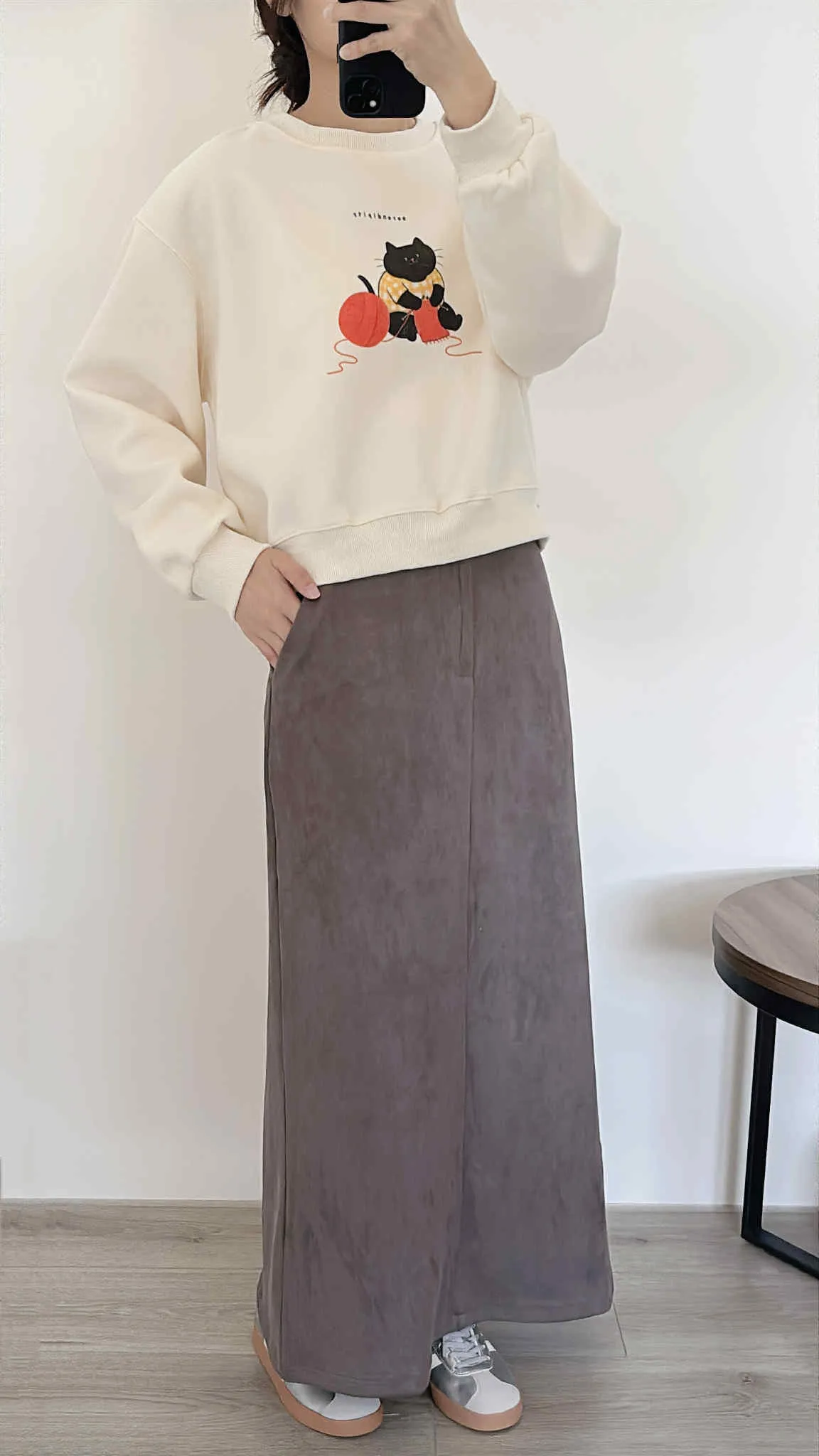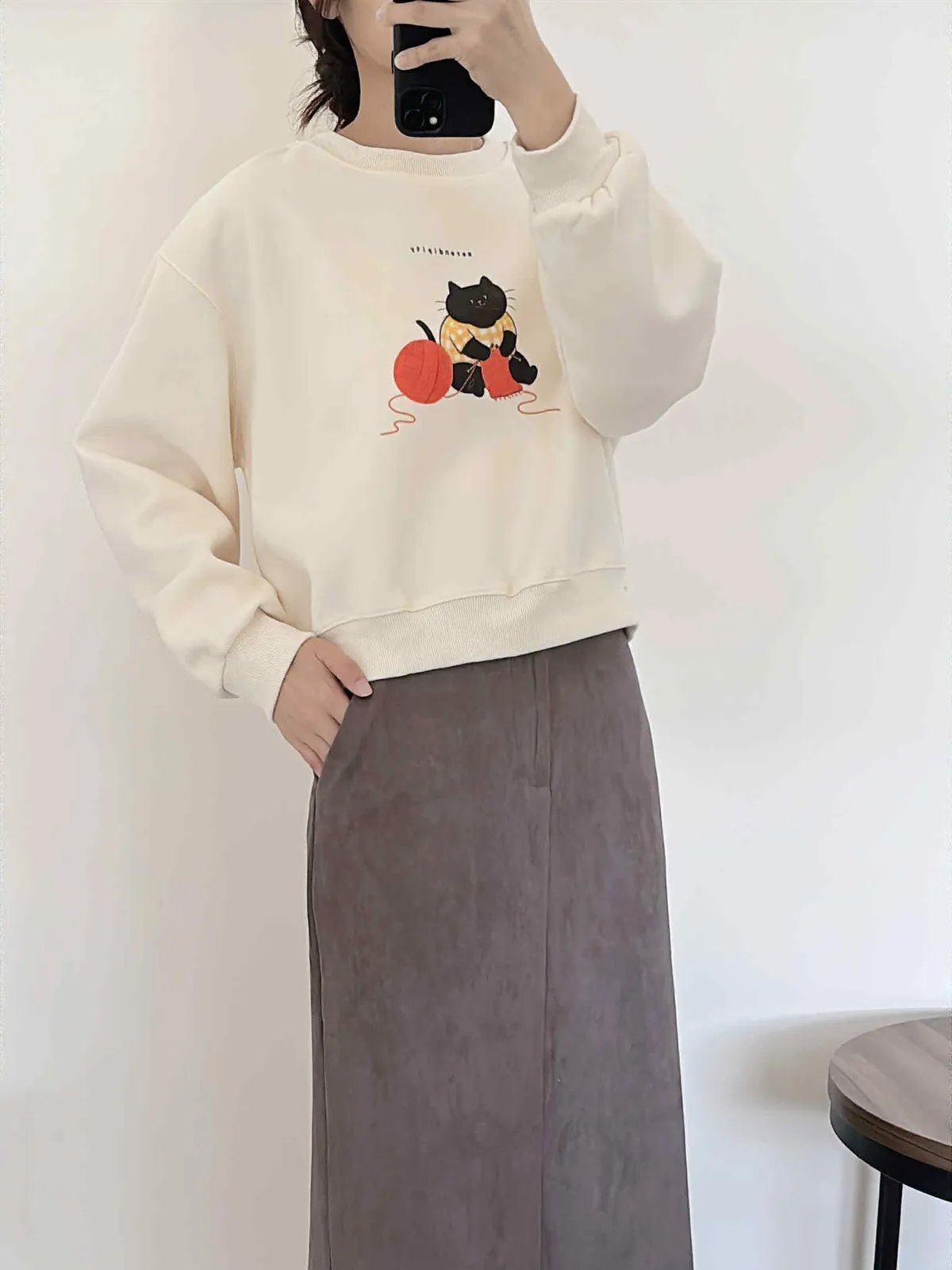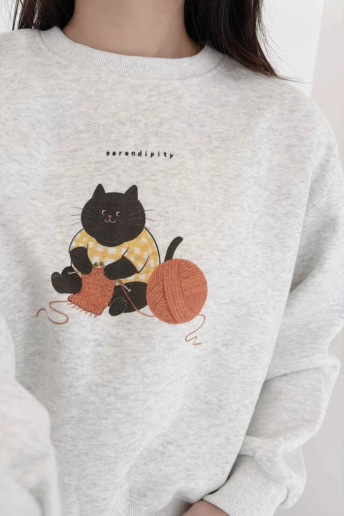 推薦款/微短版/織毛線圓滾滾貓貓柔棉大學tee/內無刷毛