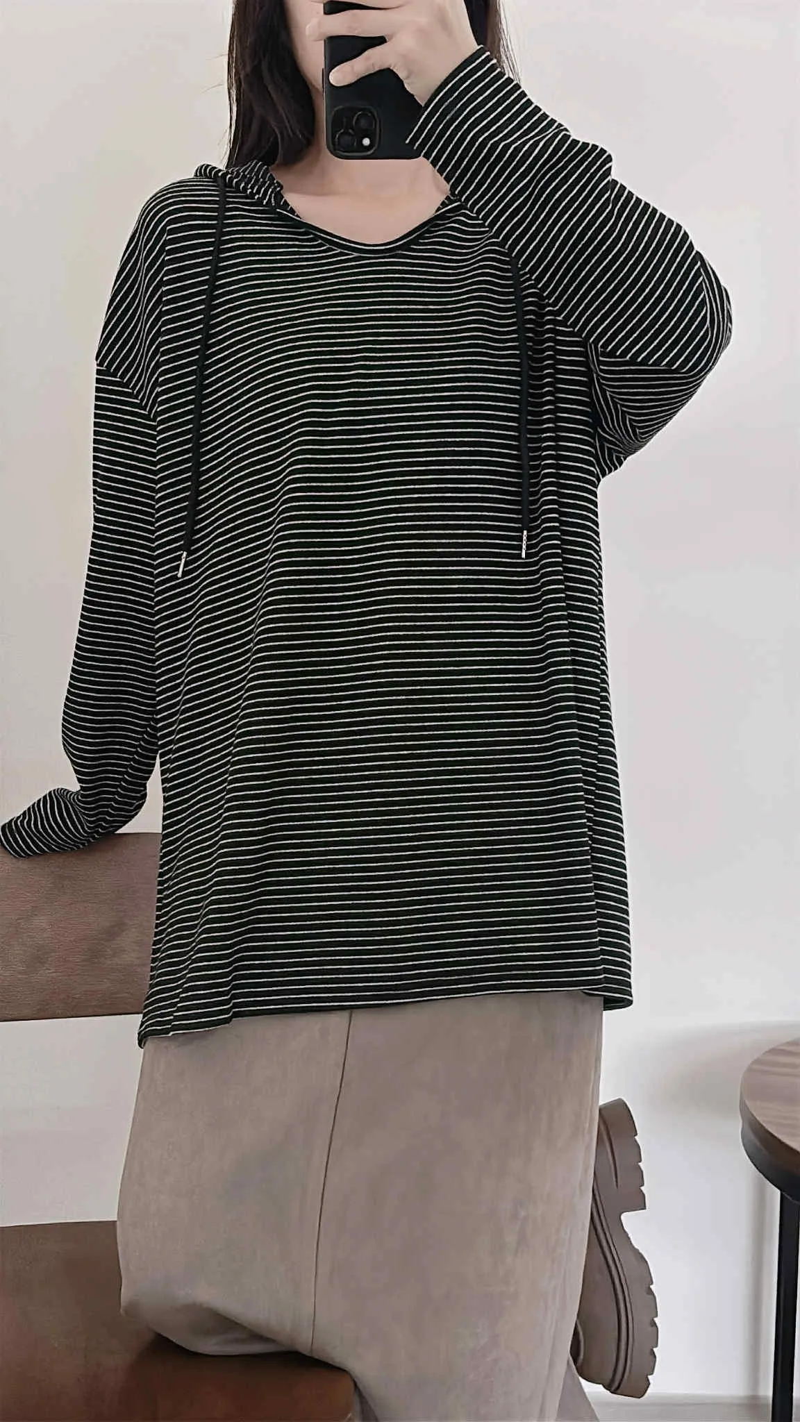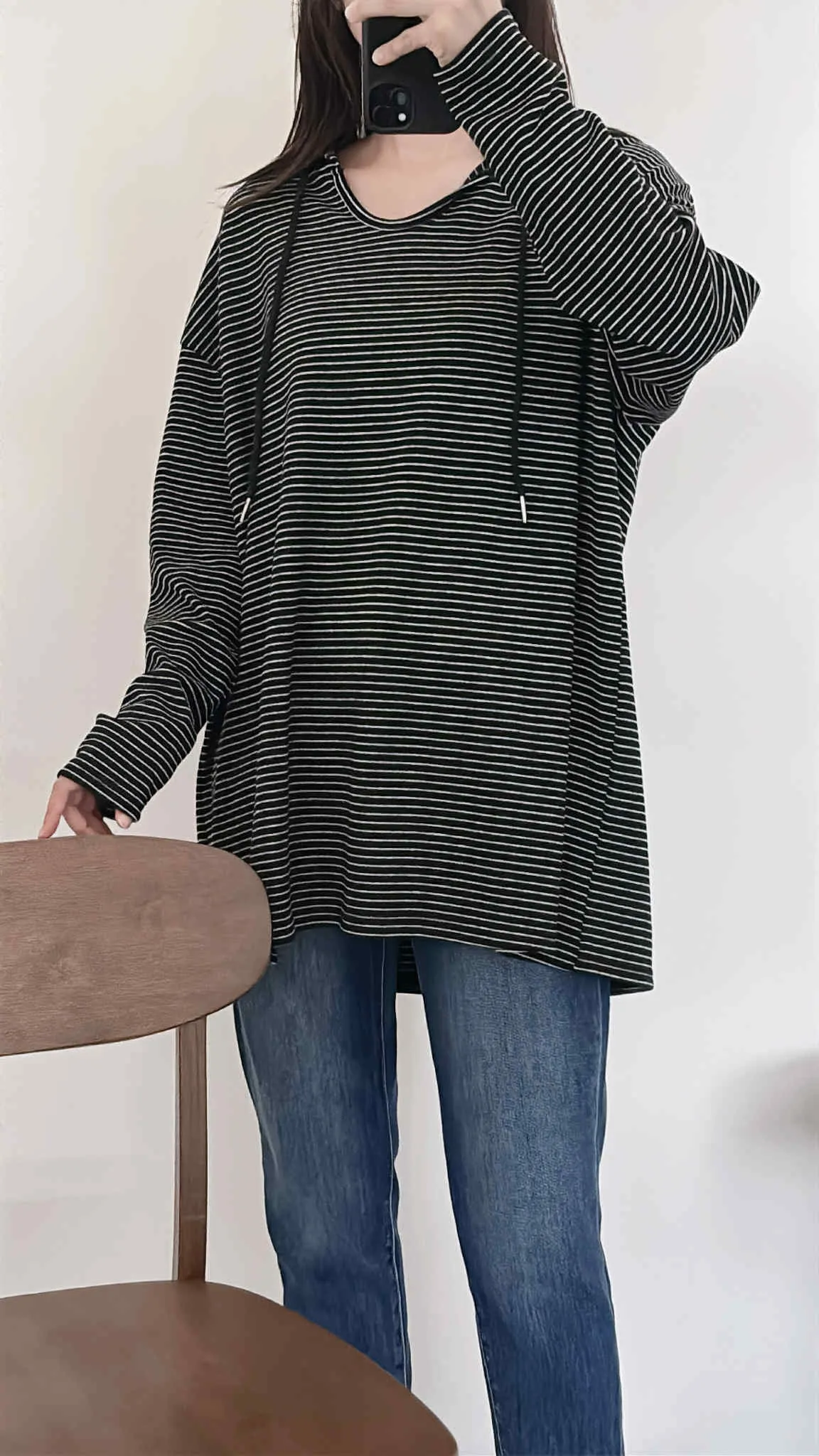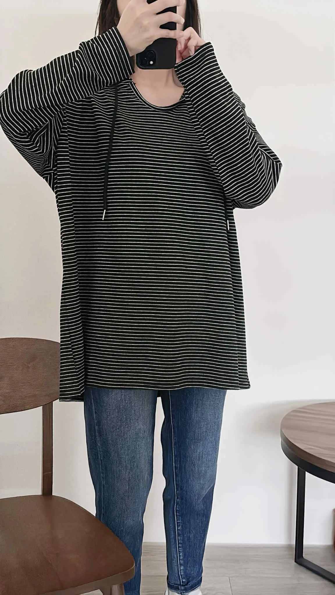 極輕薄/連帽條紋Q彈棉料大tee/男女皆可/大胸友善