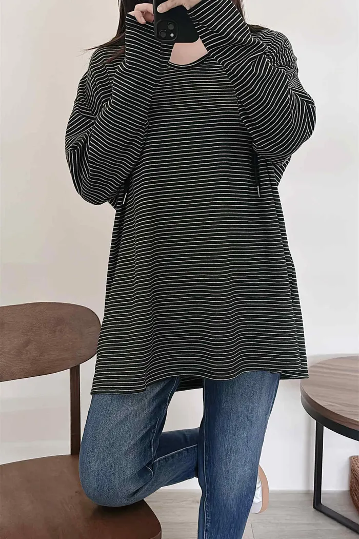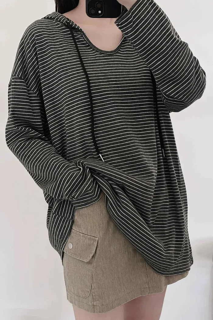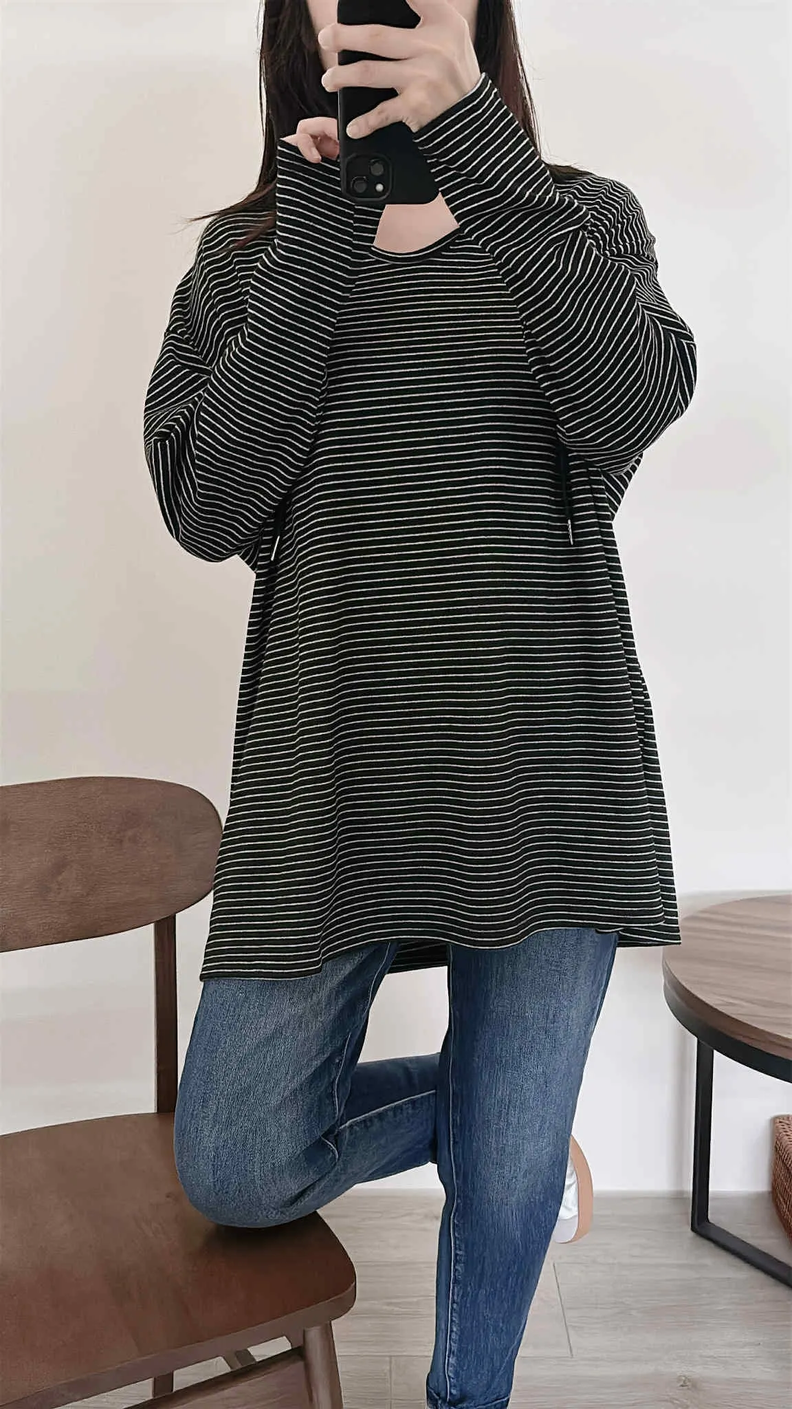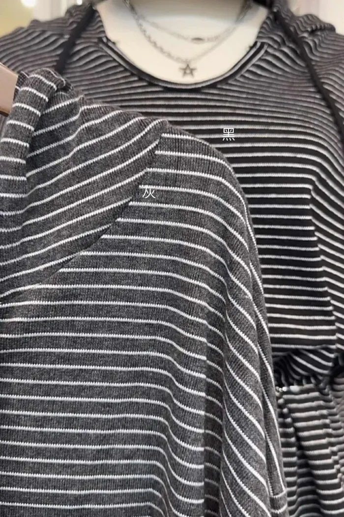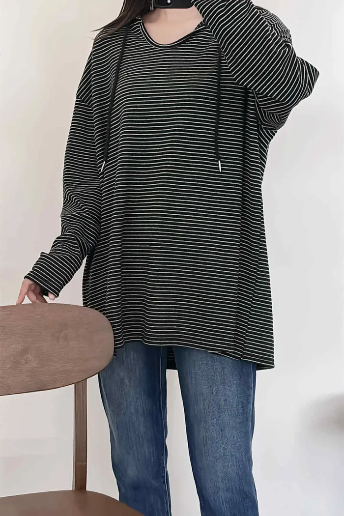極輕薄/連帽條紋Q彈棉料大tee/男女皆可/大胸友善