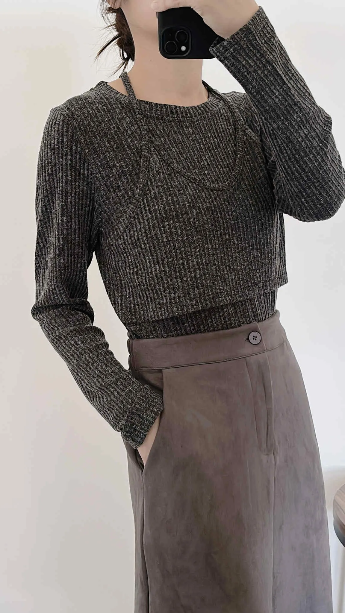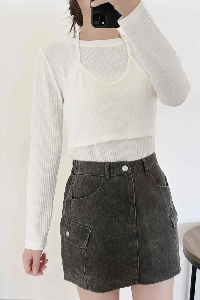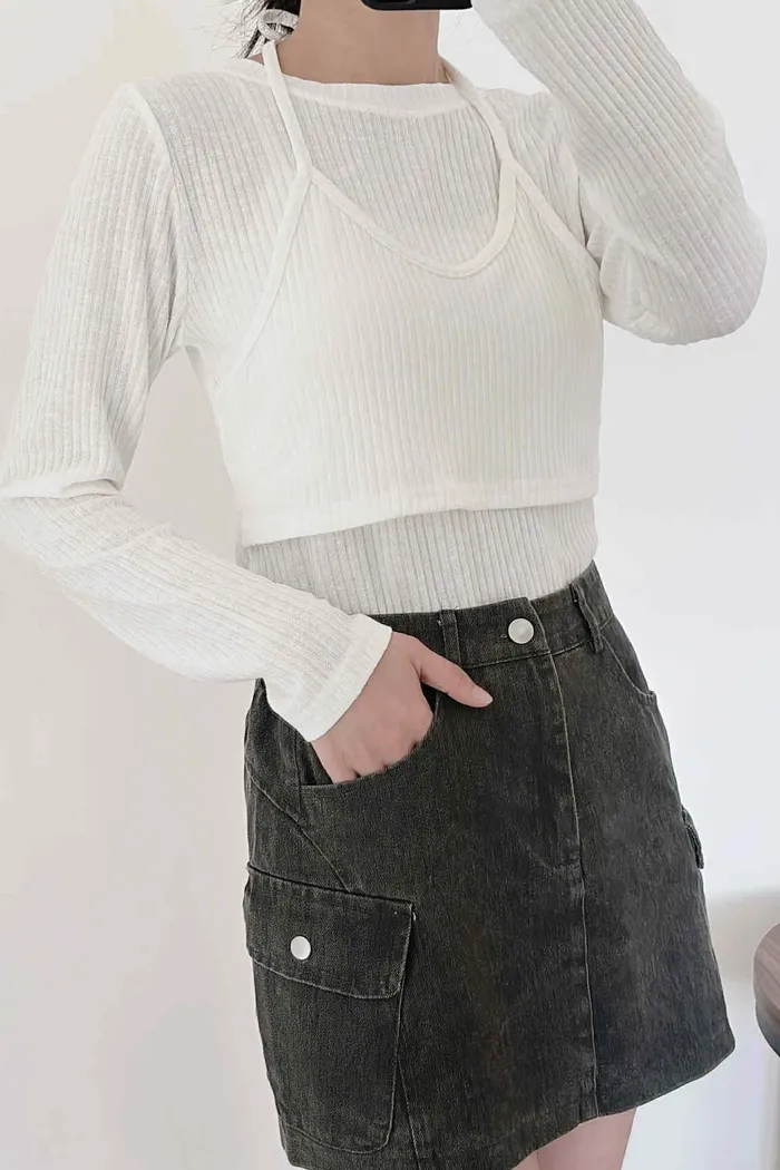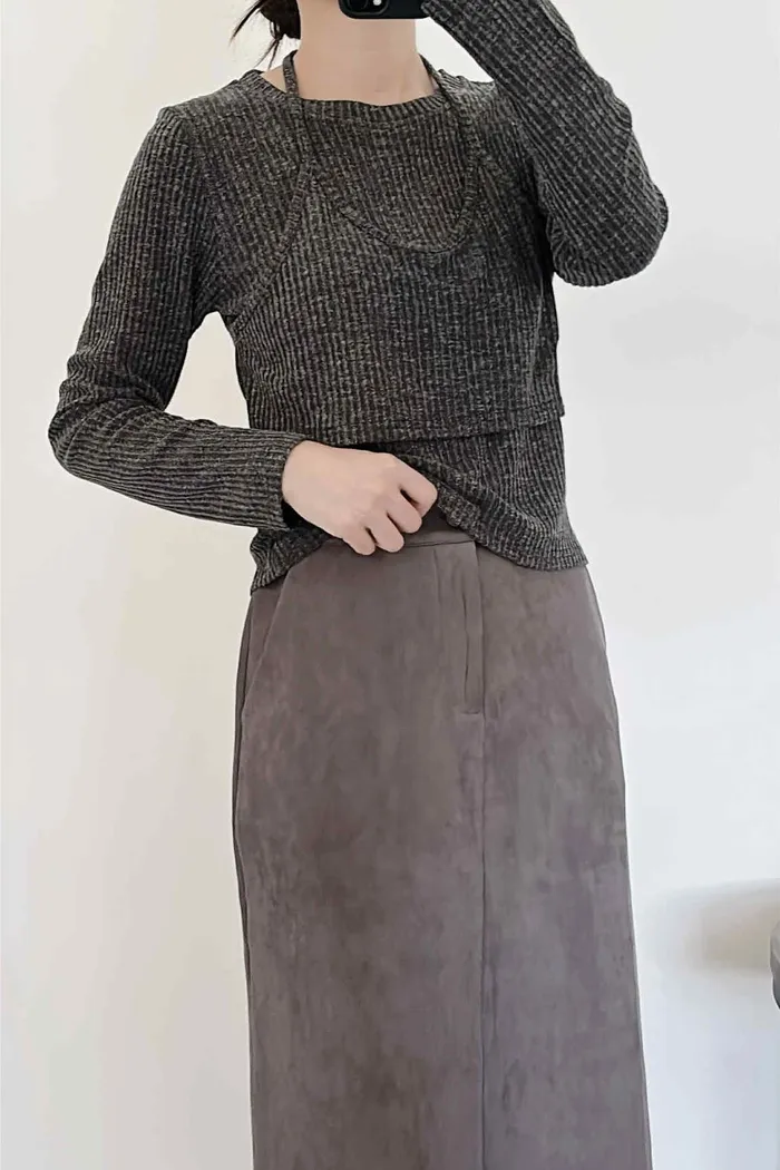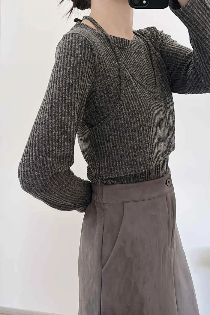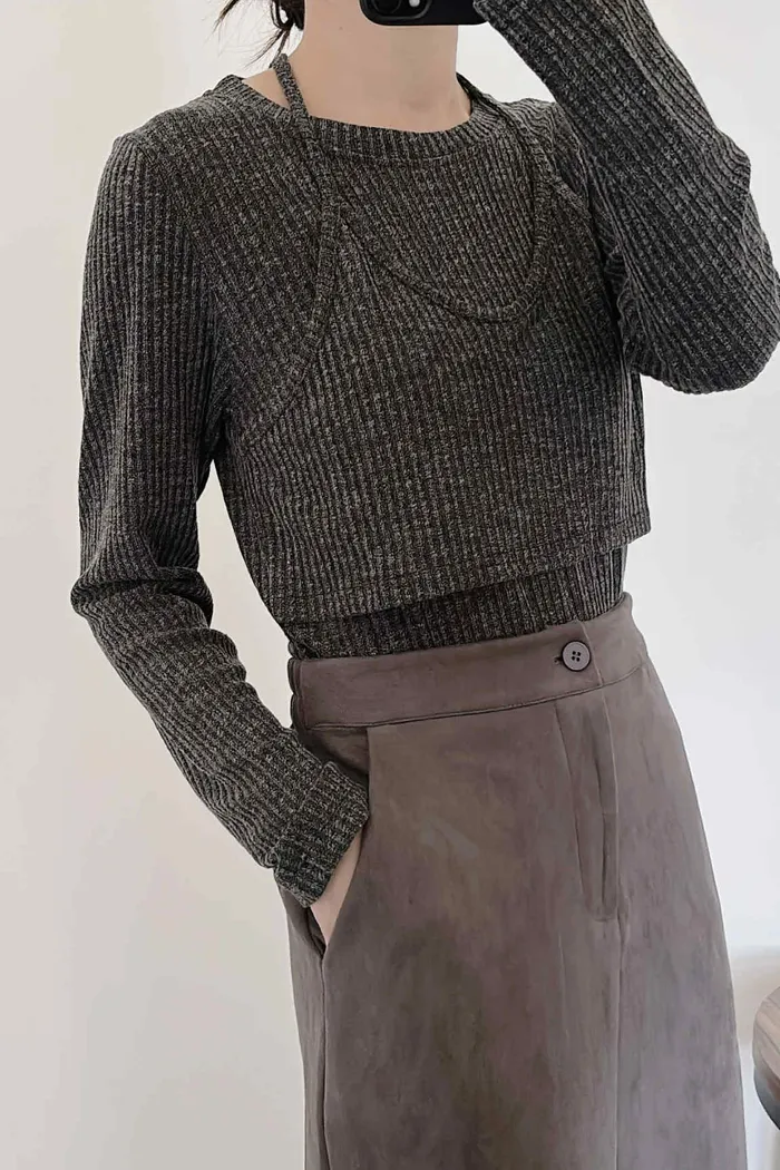 假兩件繞脖薄款針織上衣