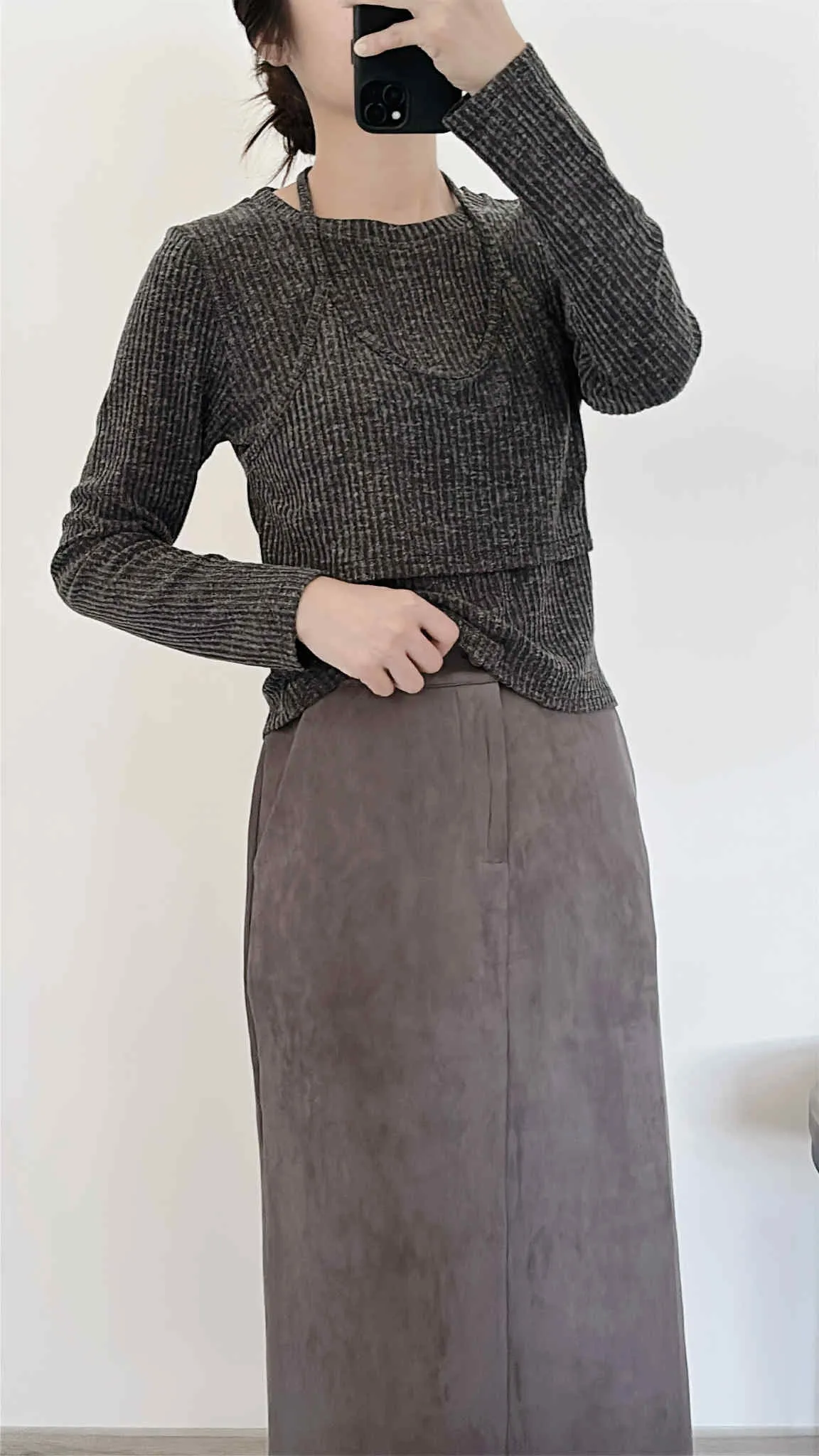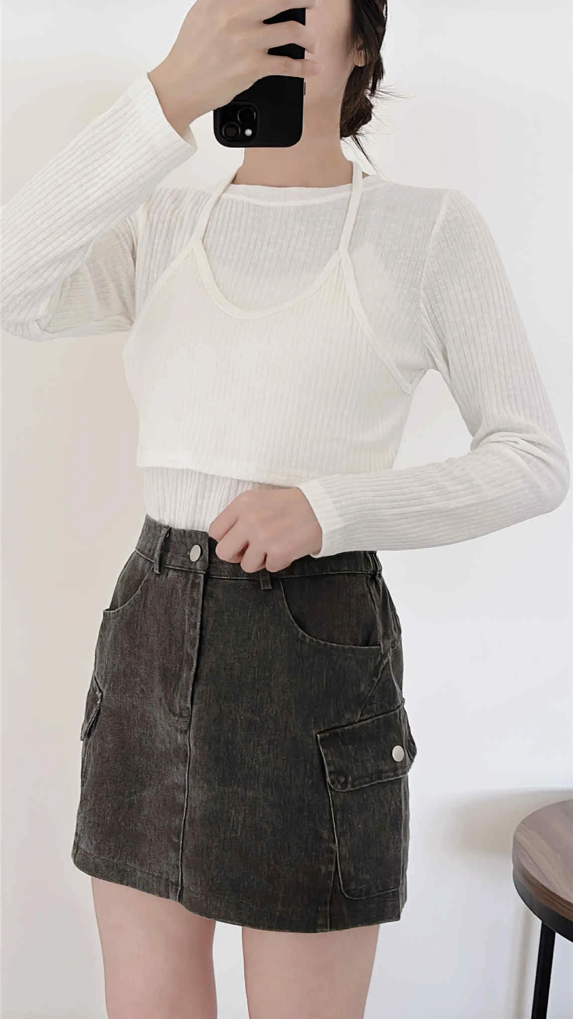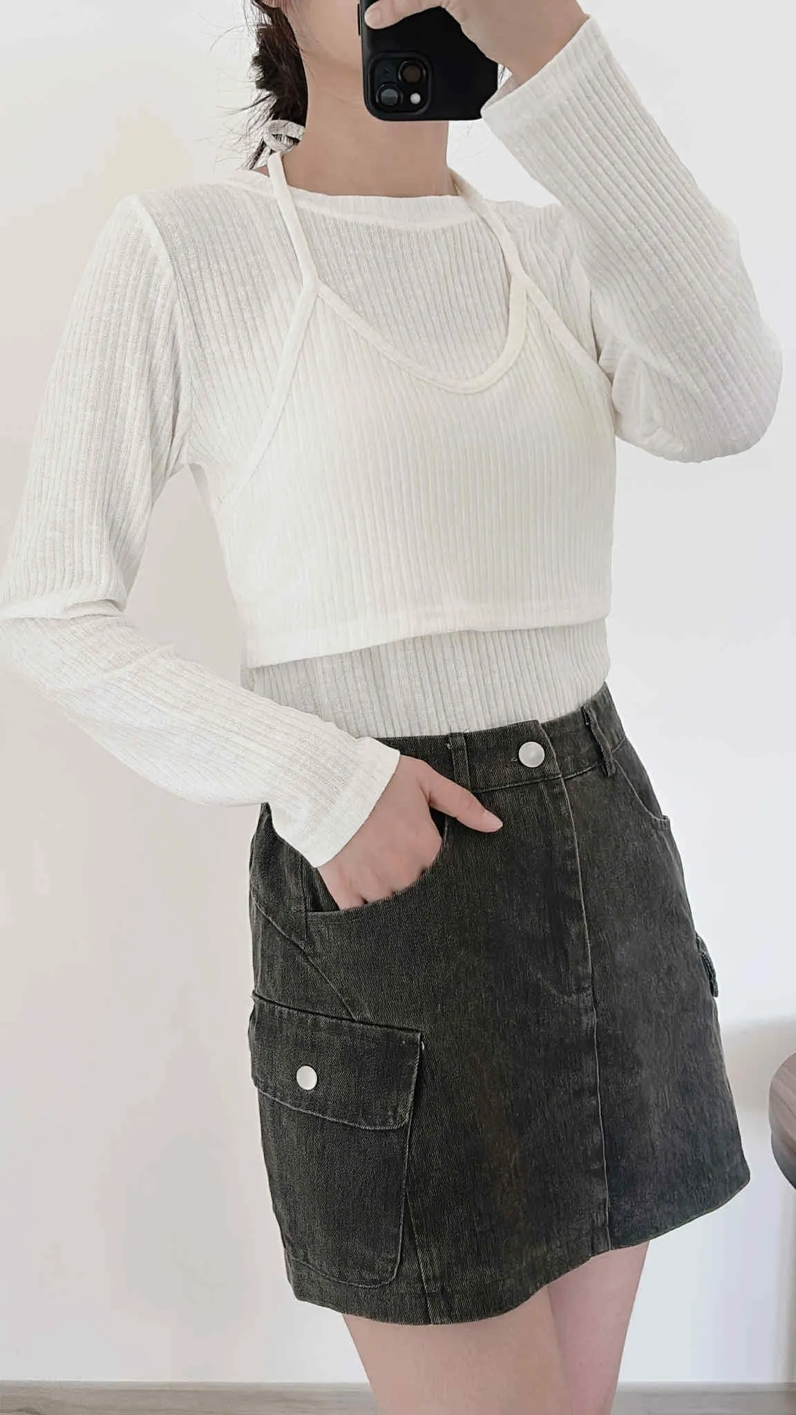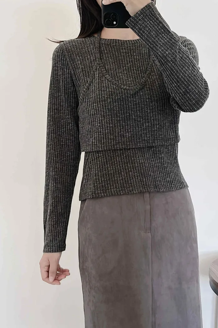 假兩件繞脖薄款針織上衣