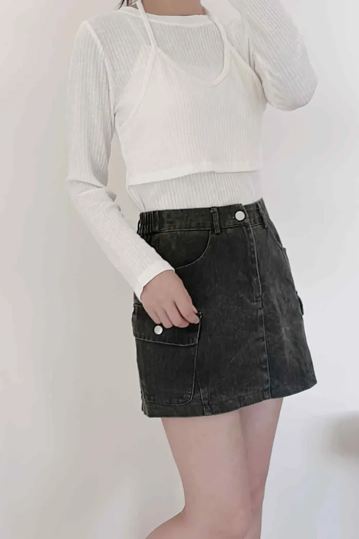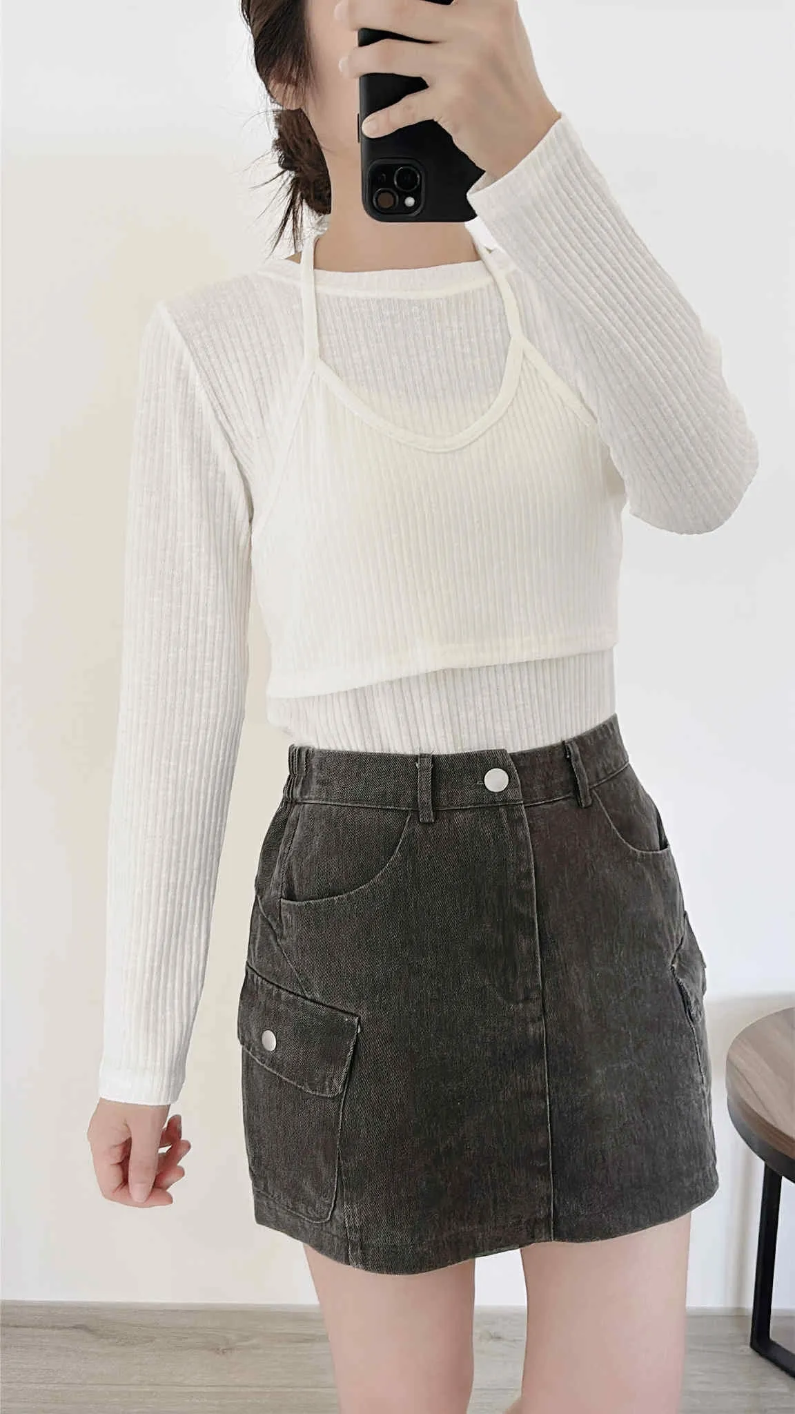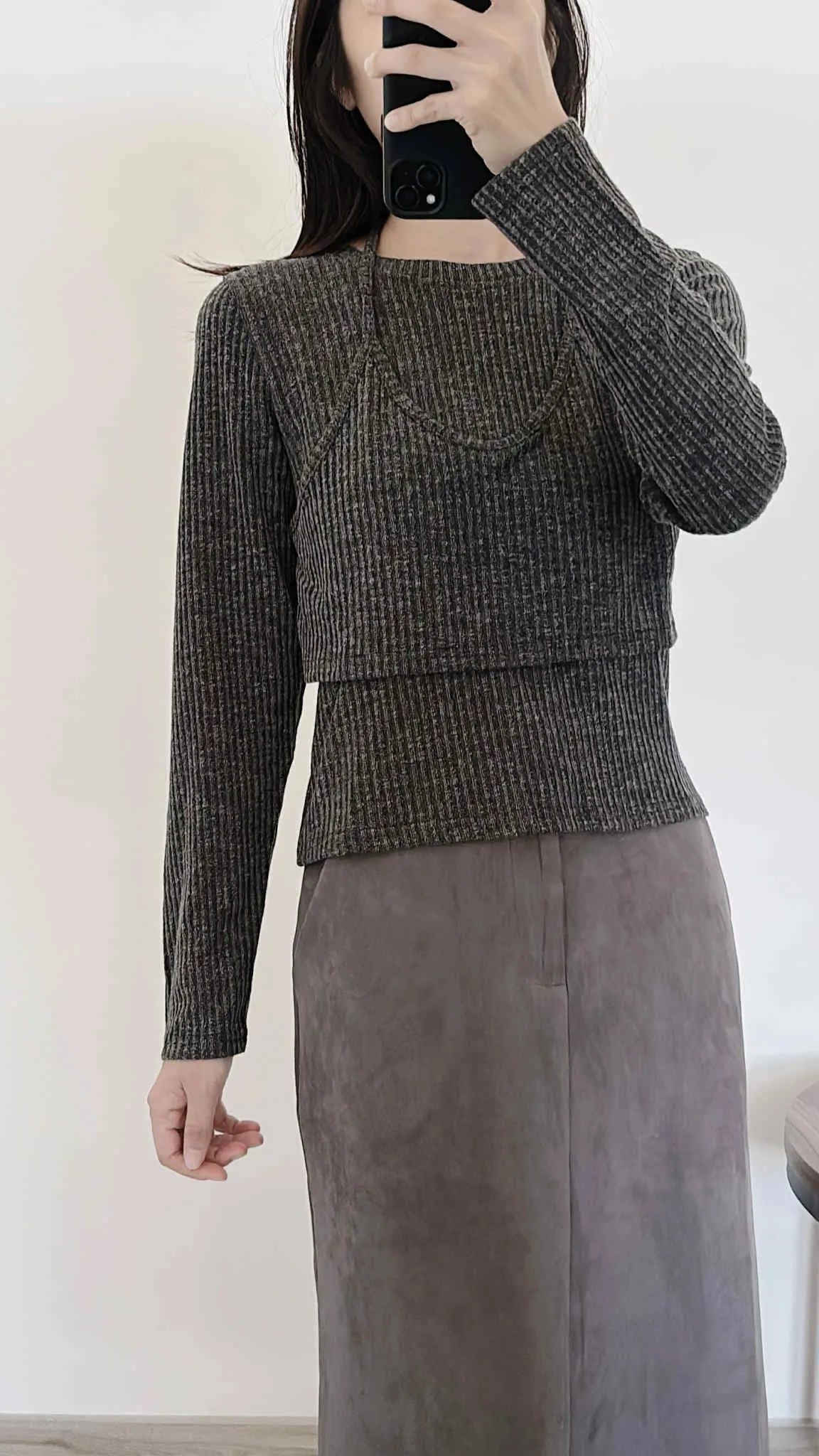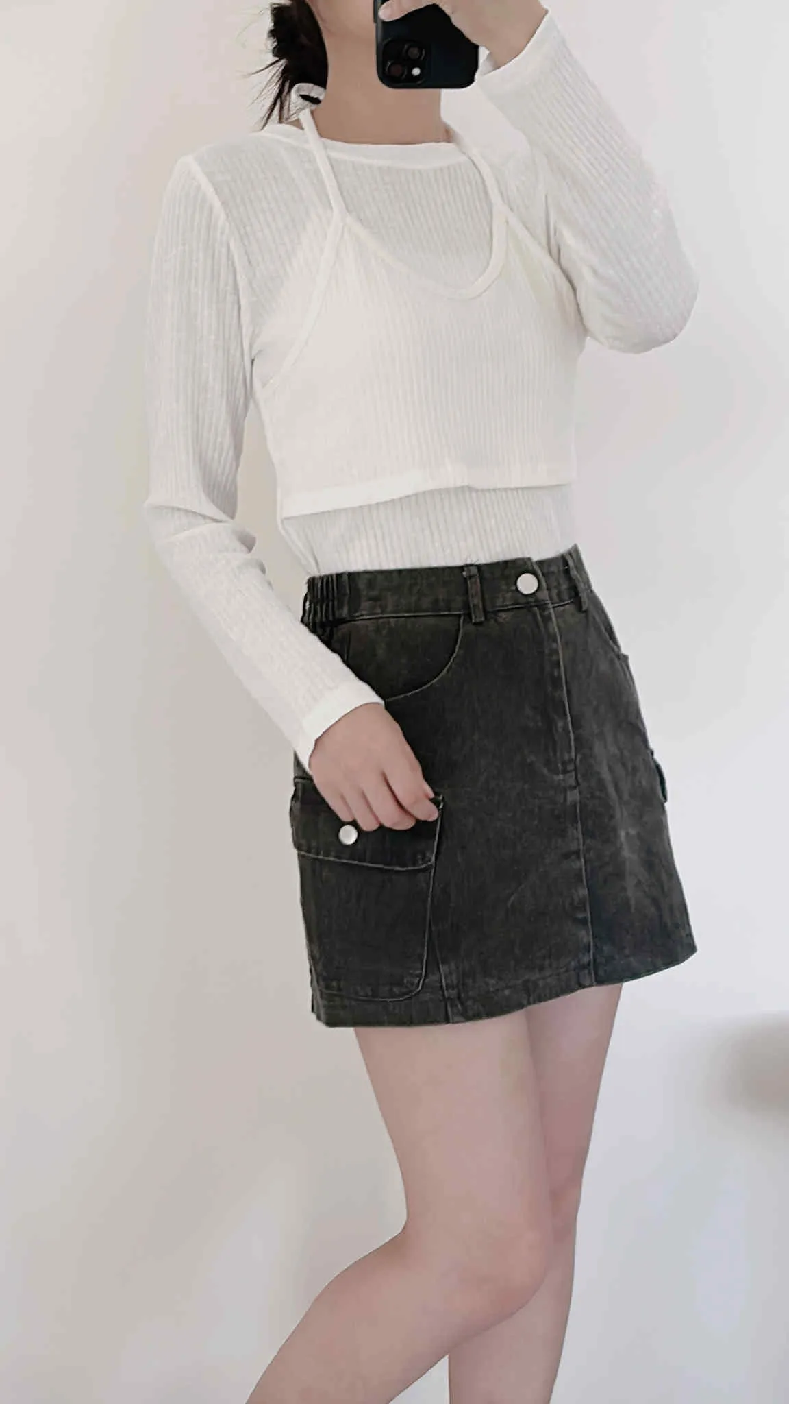 假兩件繞脖薄款針織上衣