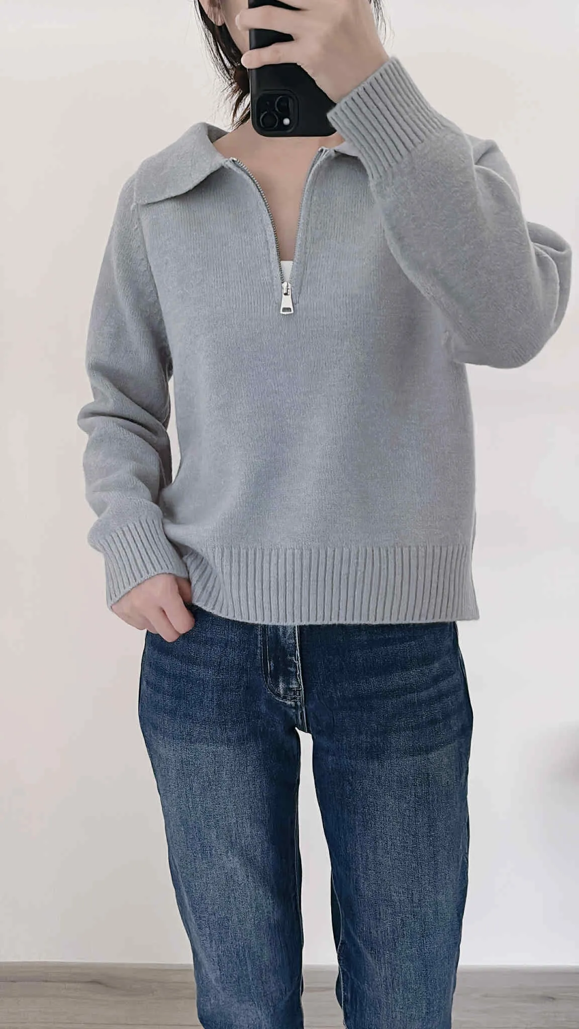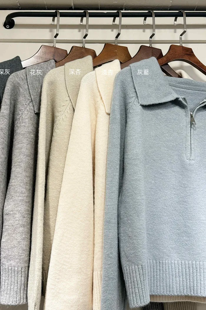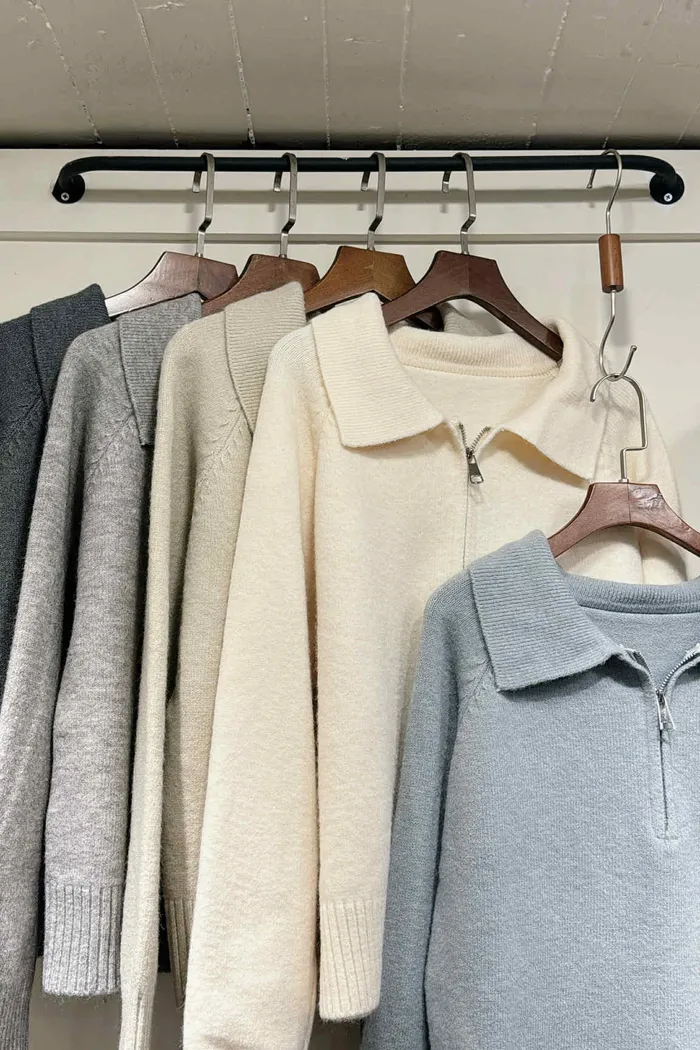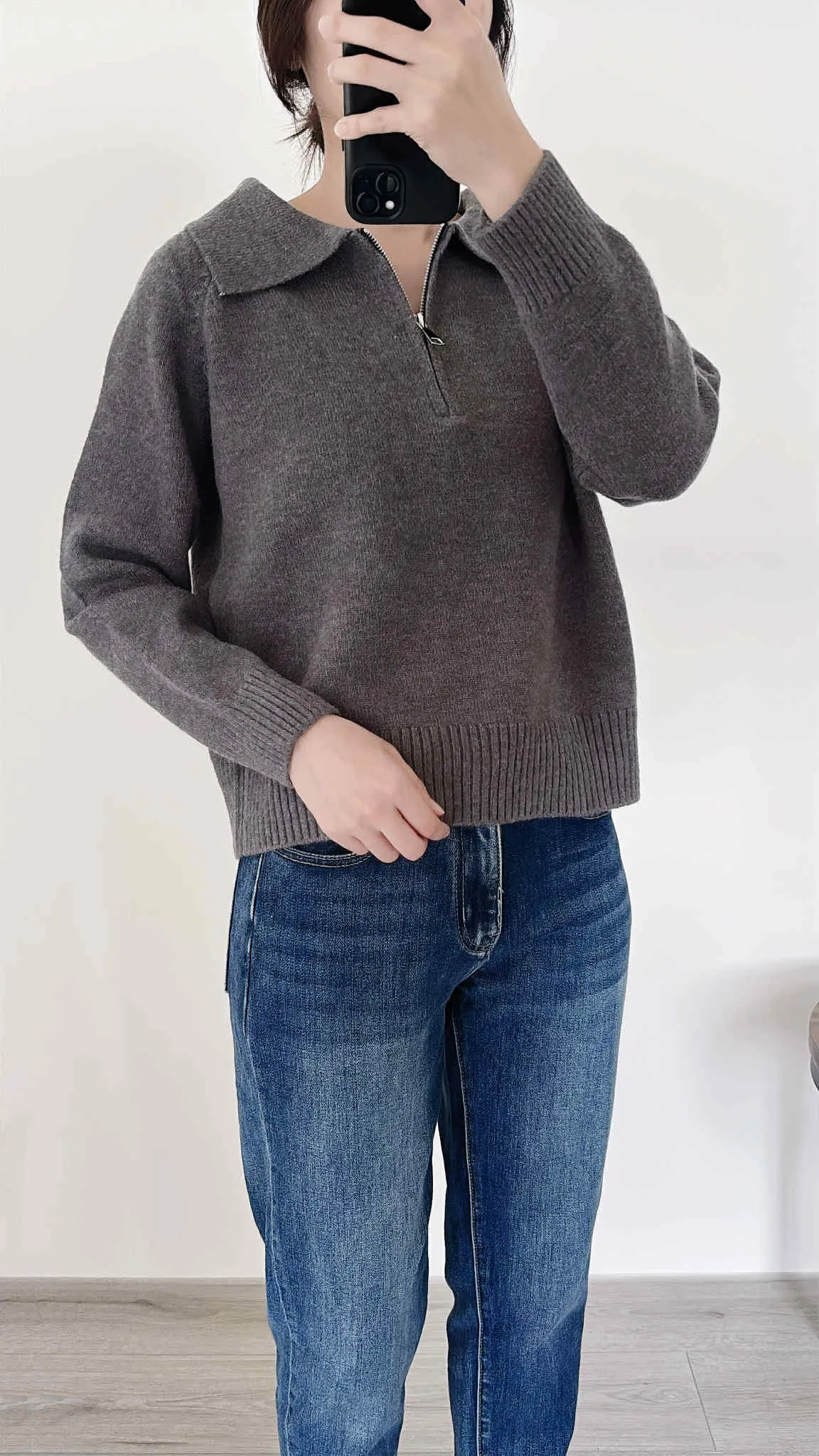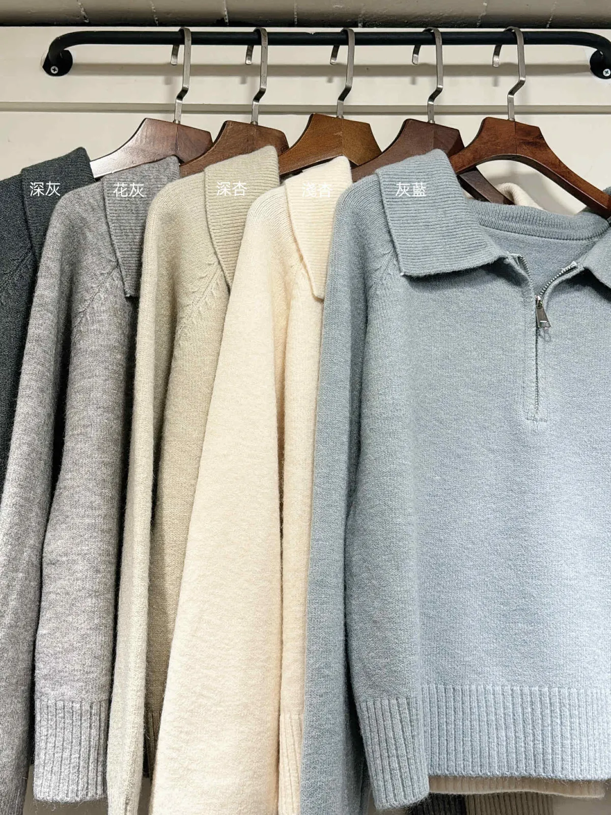 高CP值回饋款!拉鍊翻領軟料針織上衣