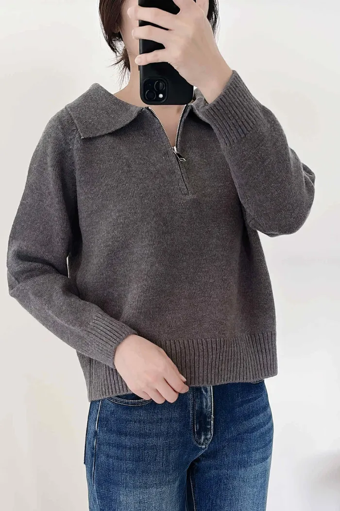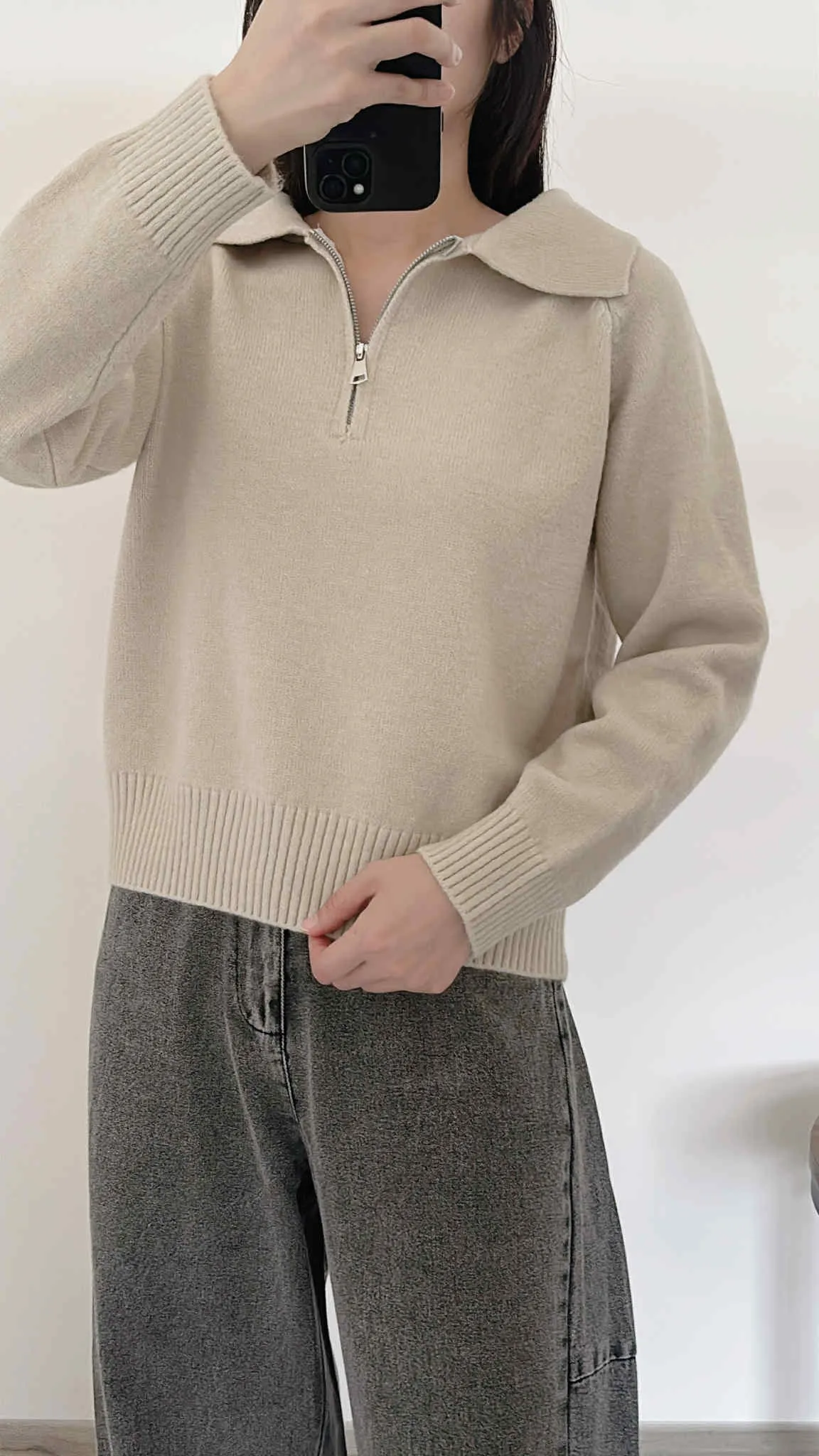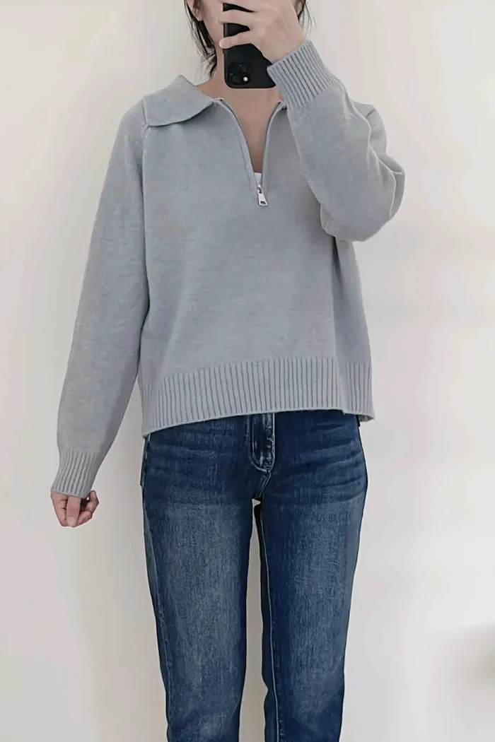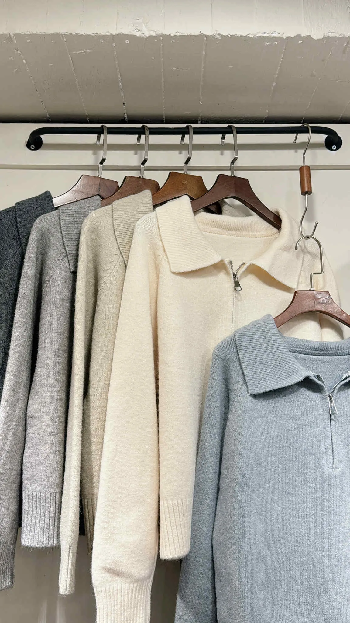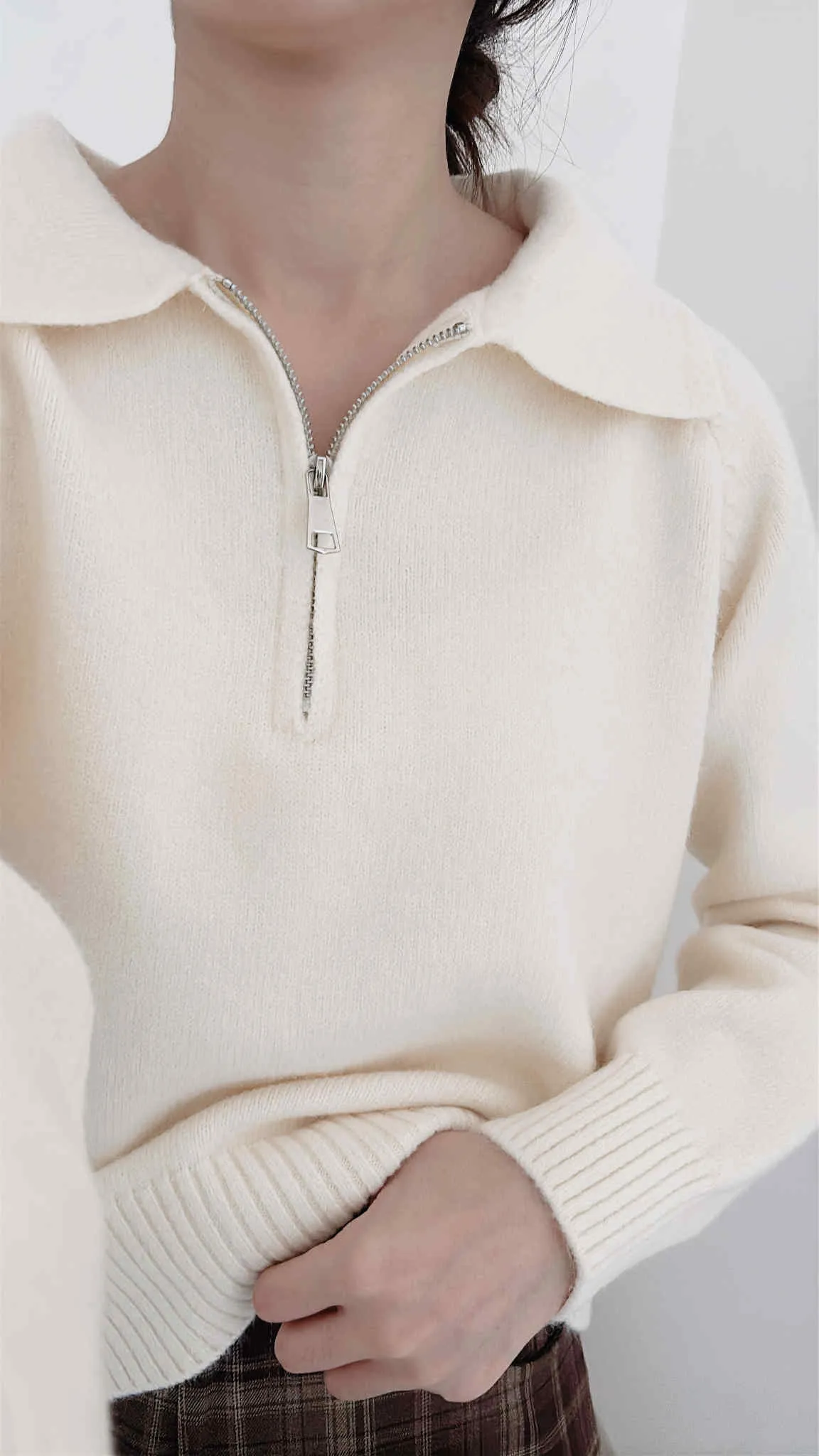 高CP值回饋款!拉鍊翻領軟料針織上衣