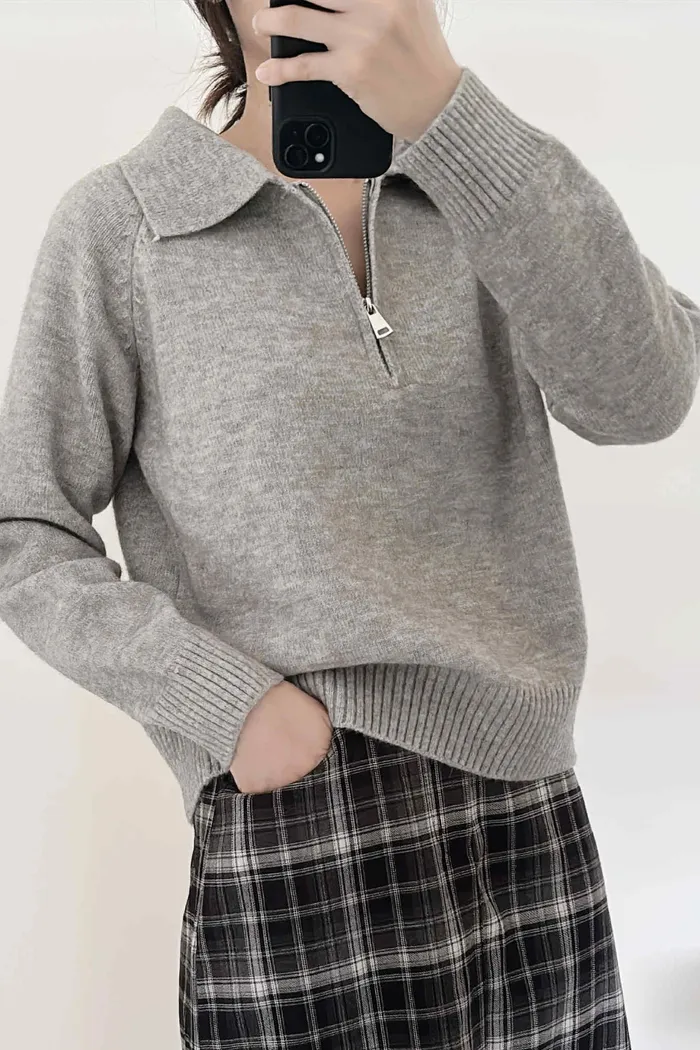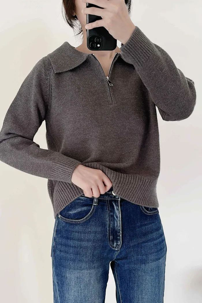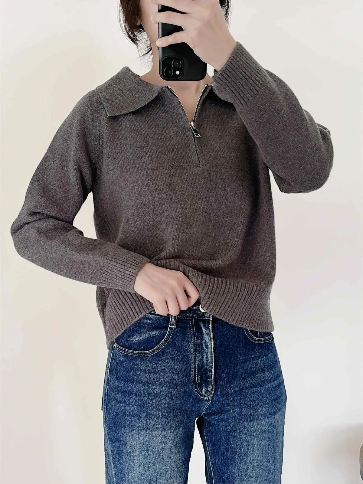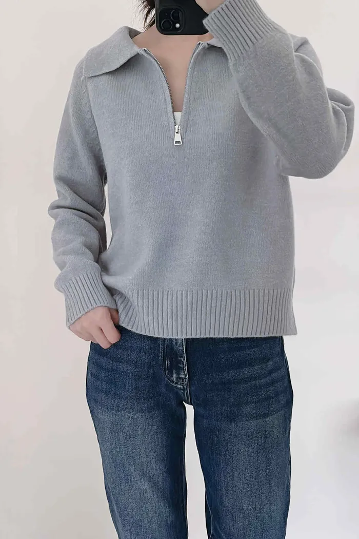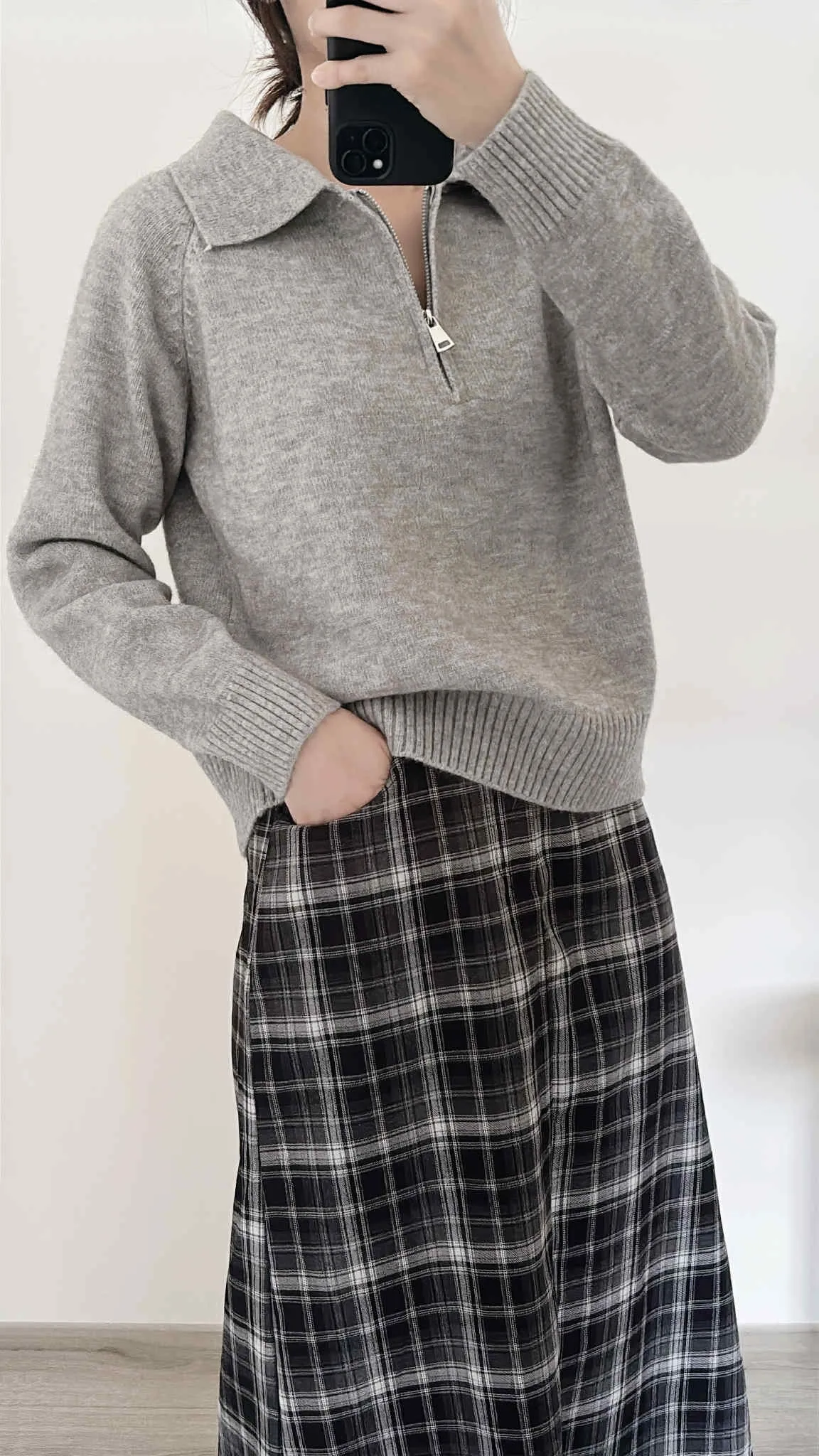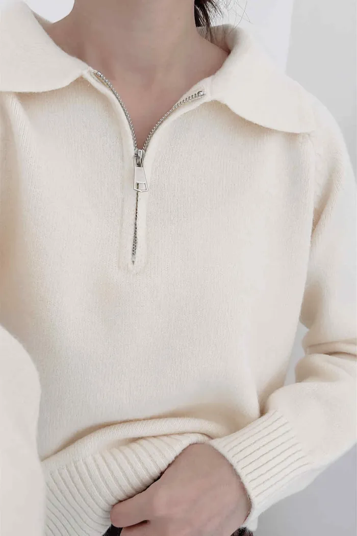 高CP值回饋款!拉鍊翻領軟料針織上衣