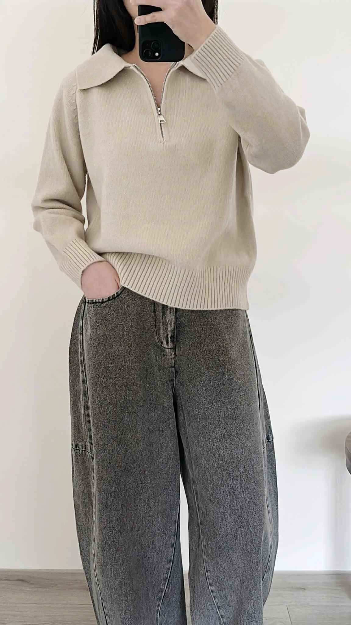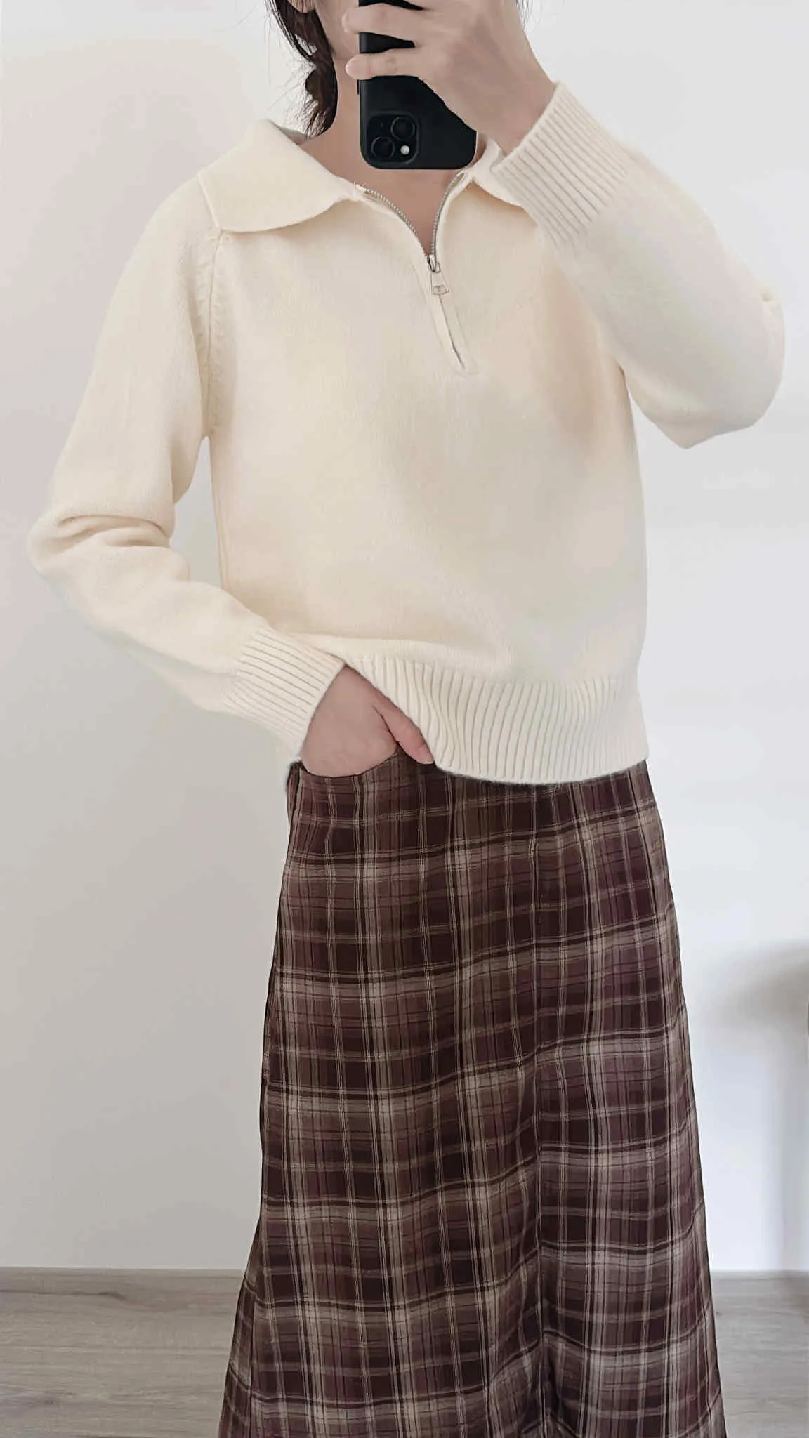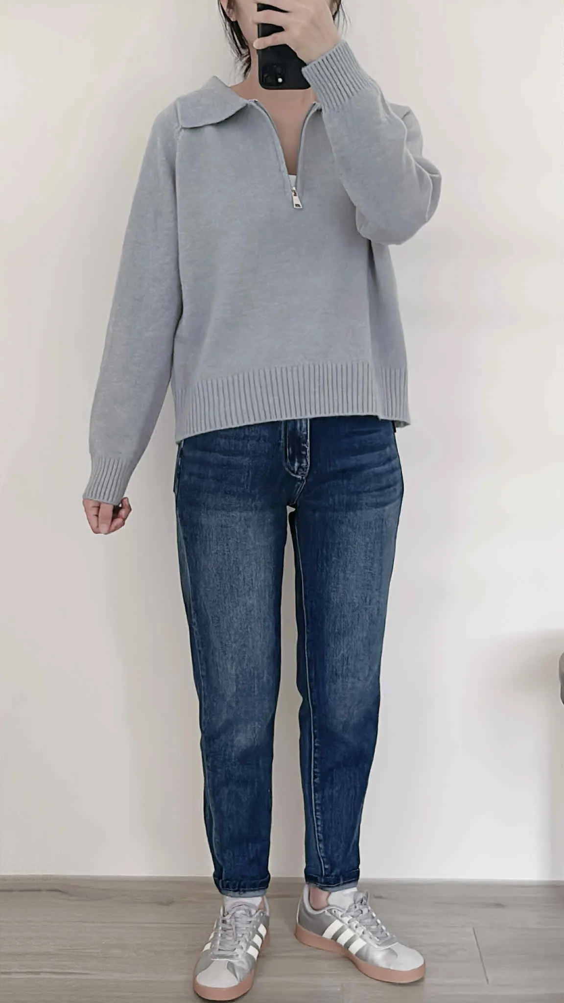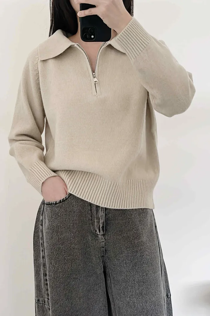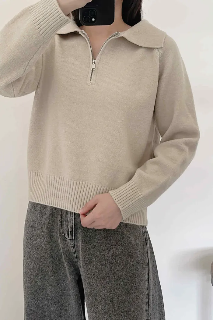 高CP值回饋款!拉鍊翻領軟料針織上衣