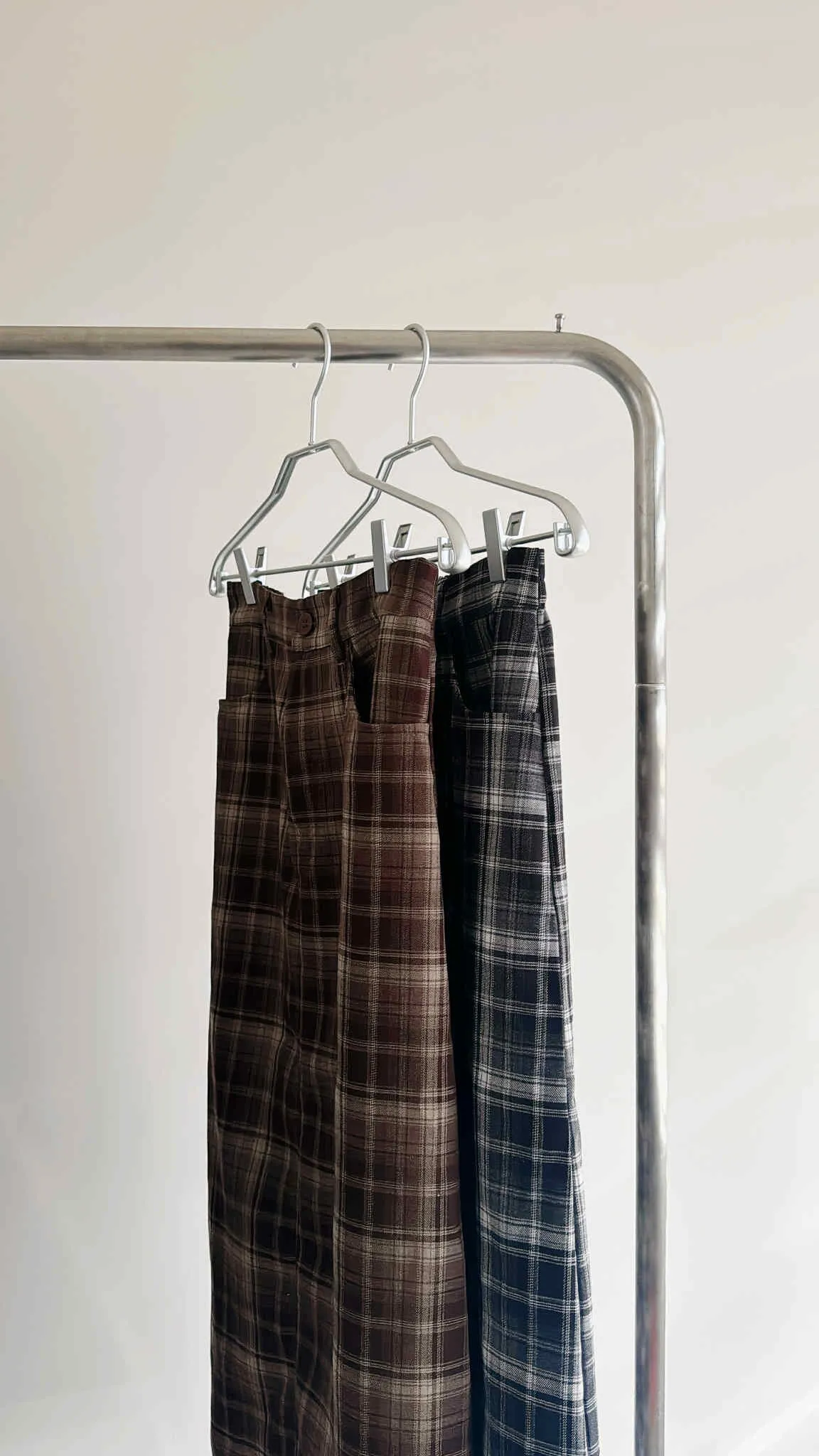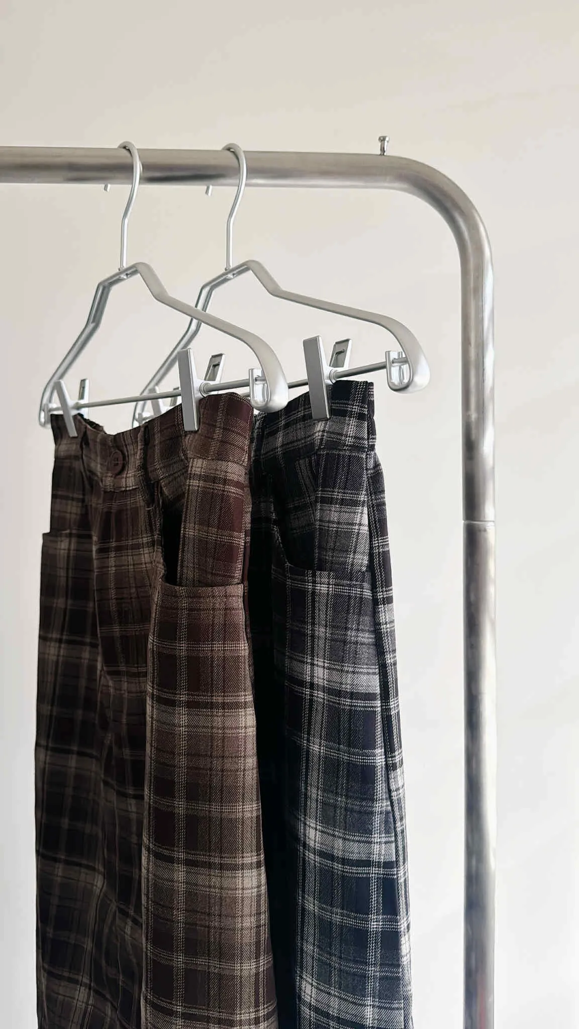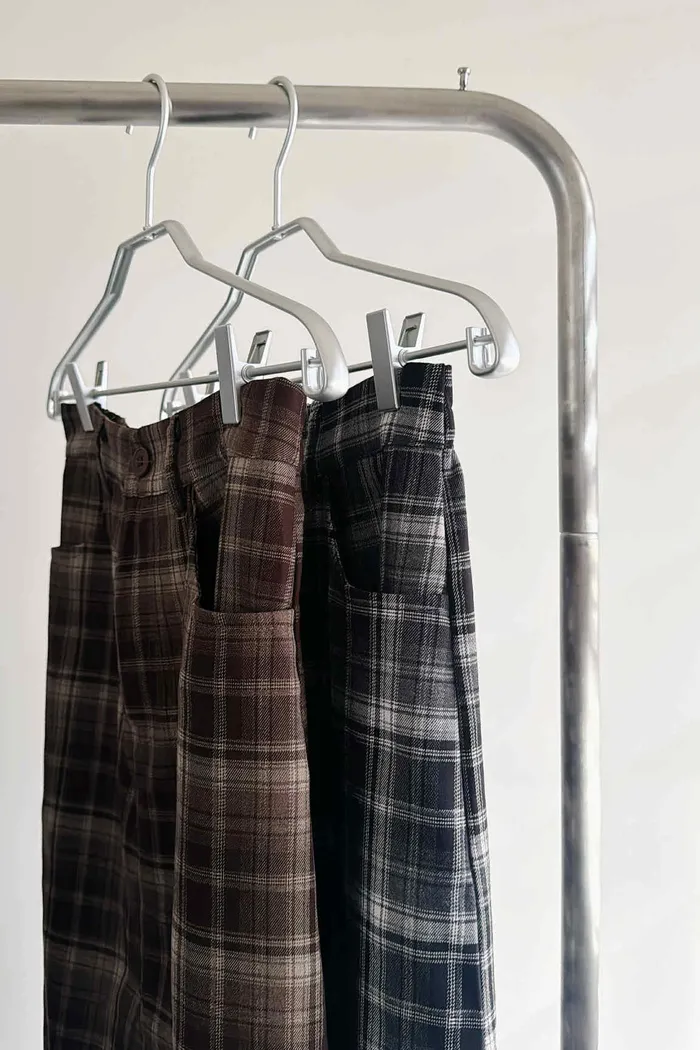 後開衩格紋西裝長裙/後鬆緊腰/有口袋