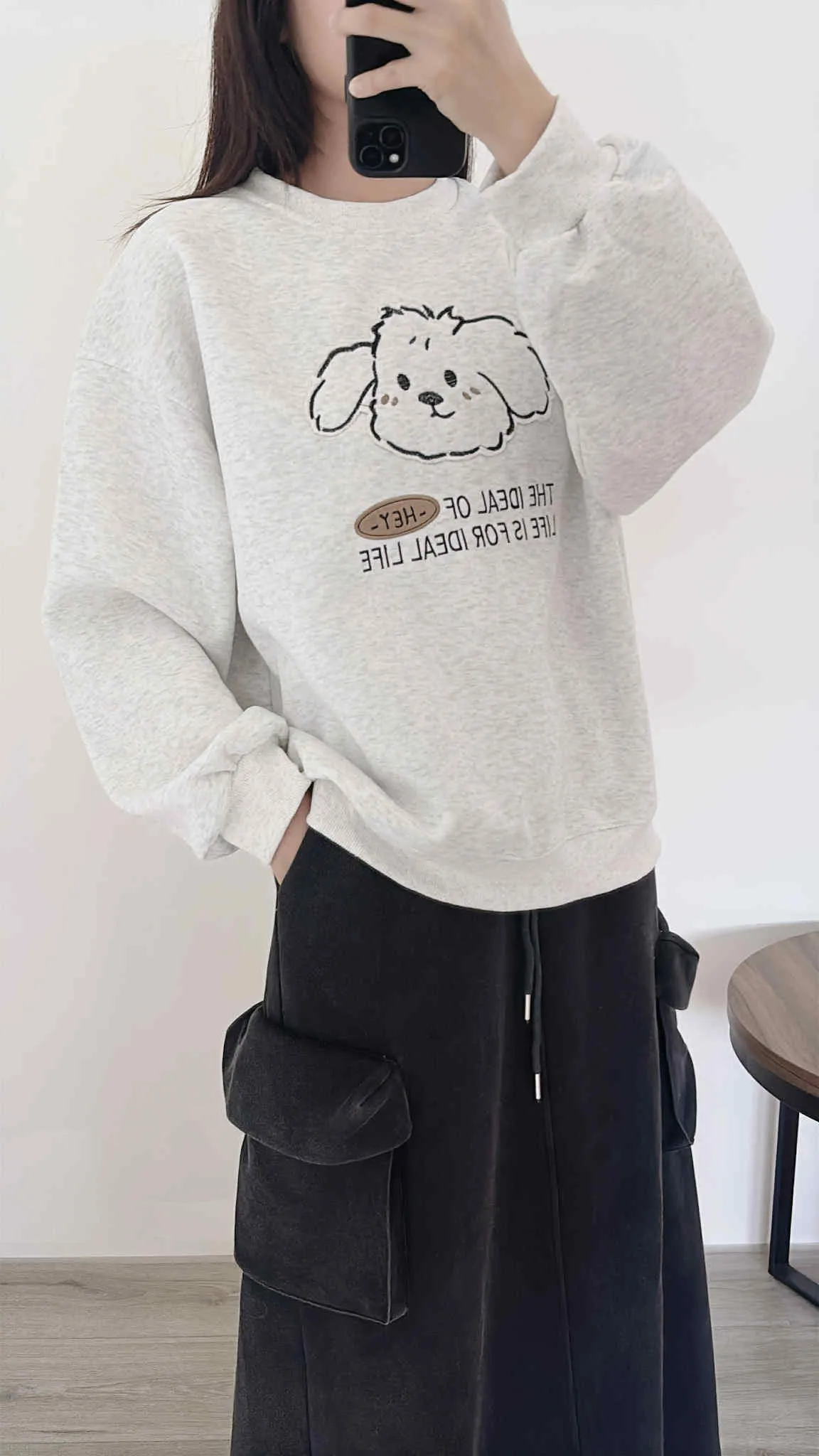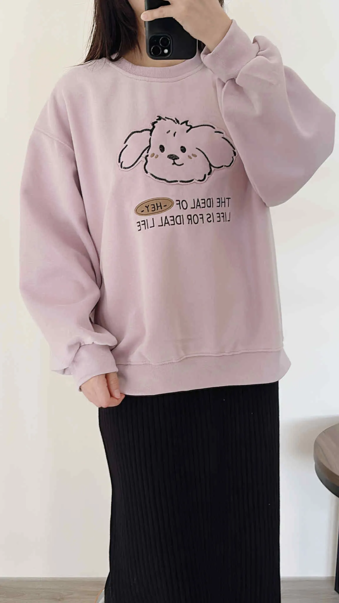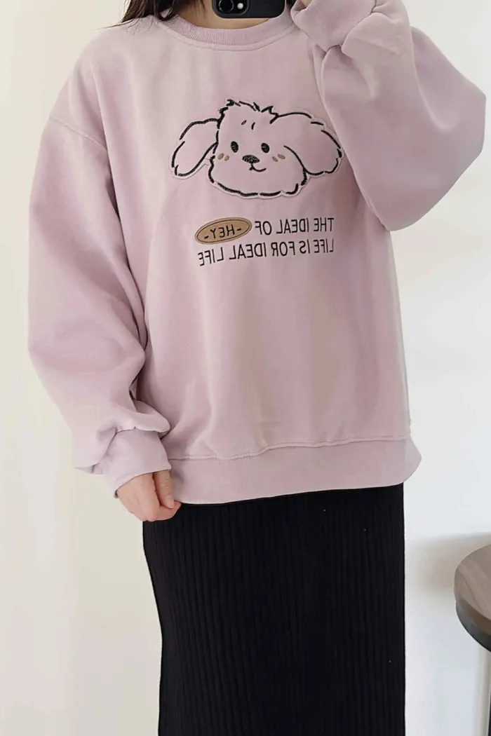 推薦款/縫線布貼狗狗大學tee/大胸友善/內無刷毛