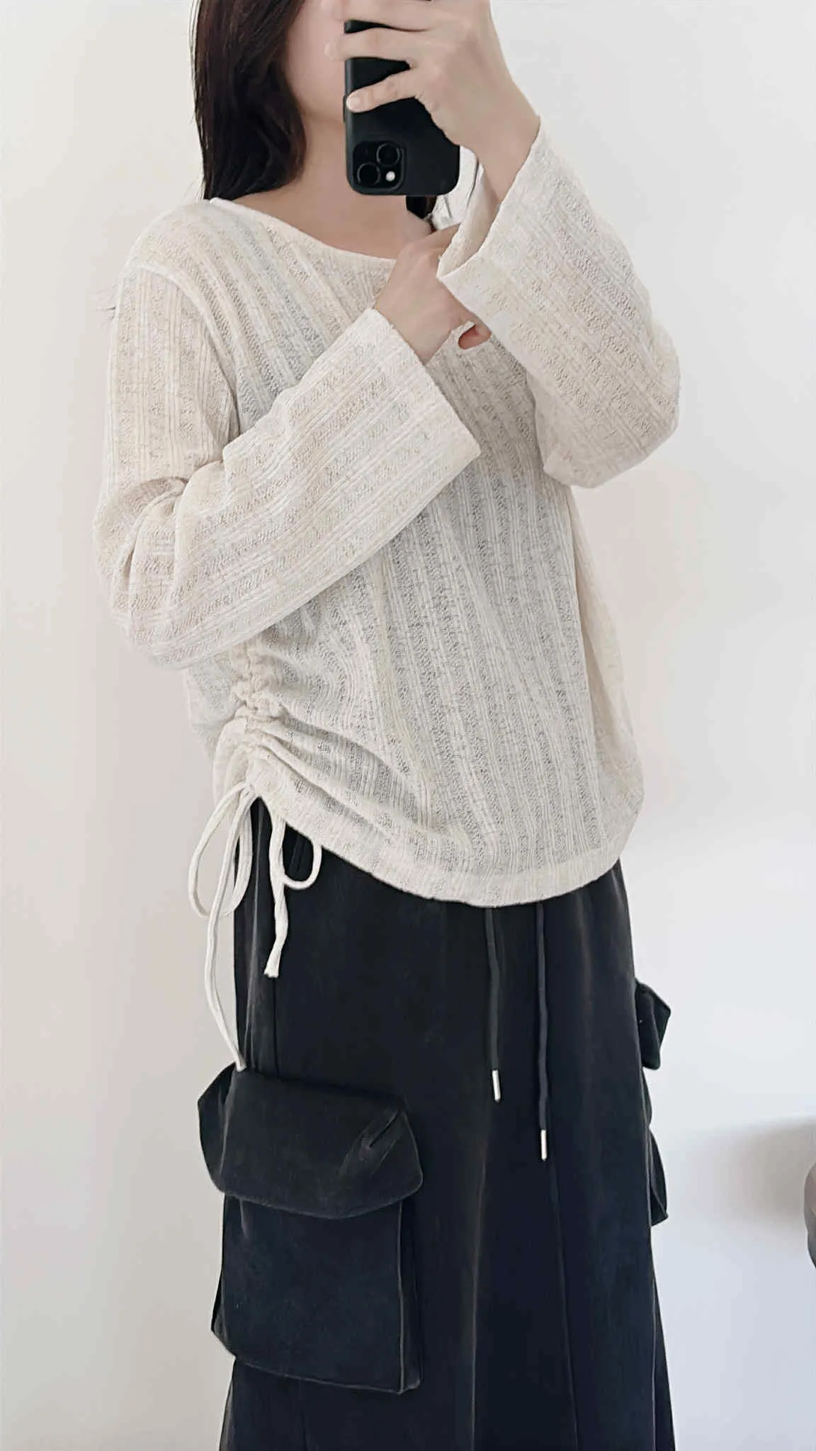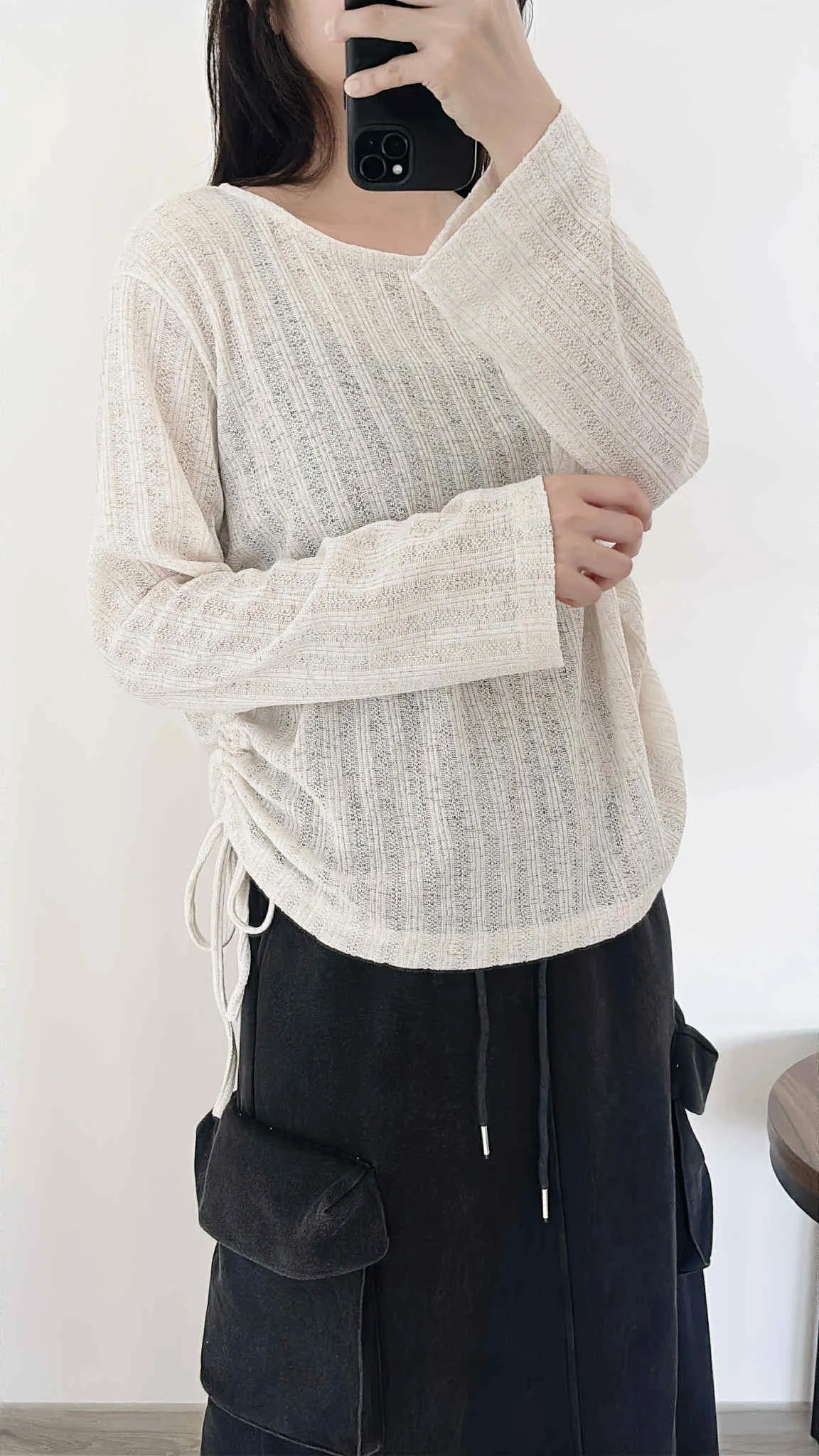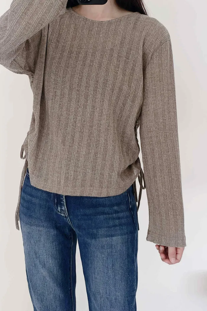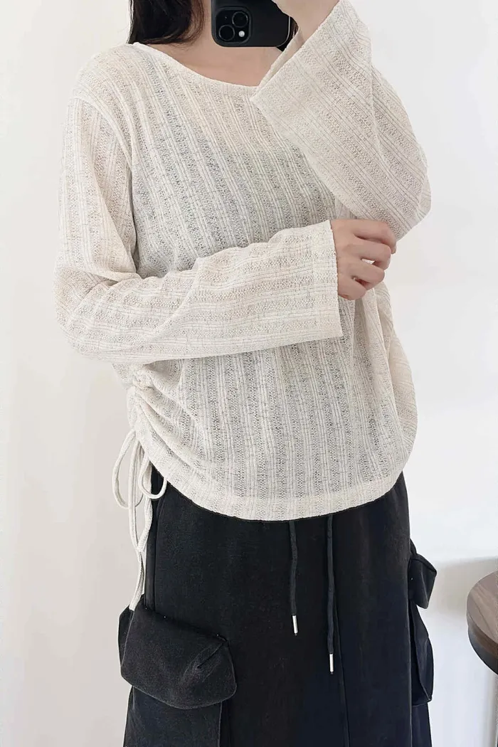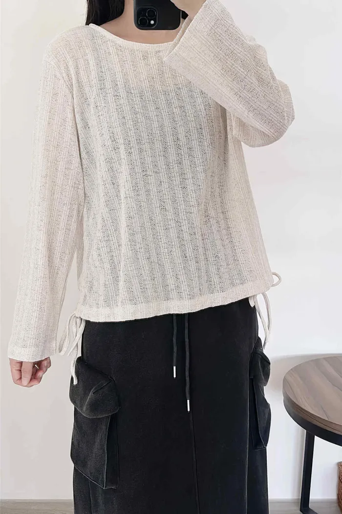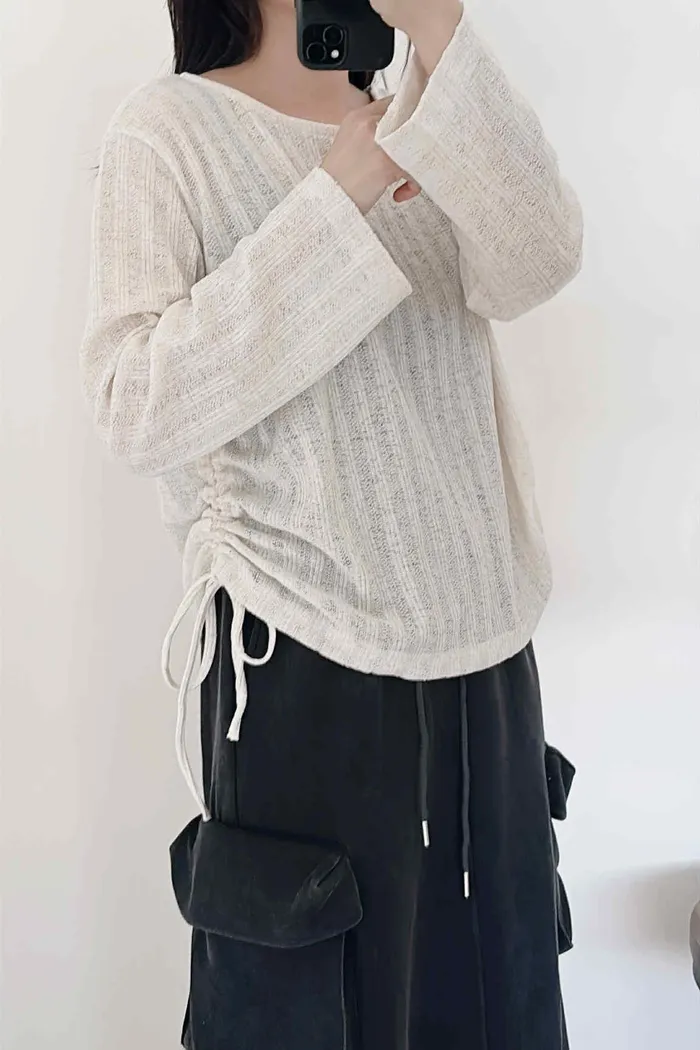 輕薄款/側綁繩微透感針織上衣/大胸友善
