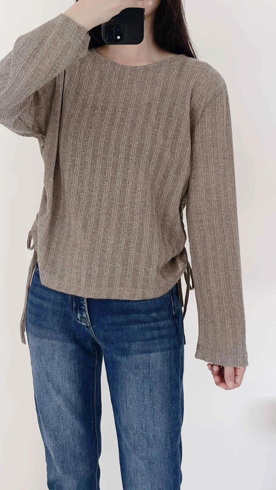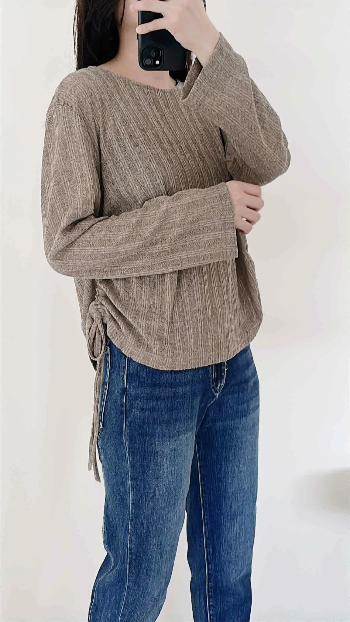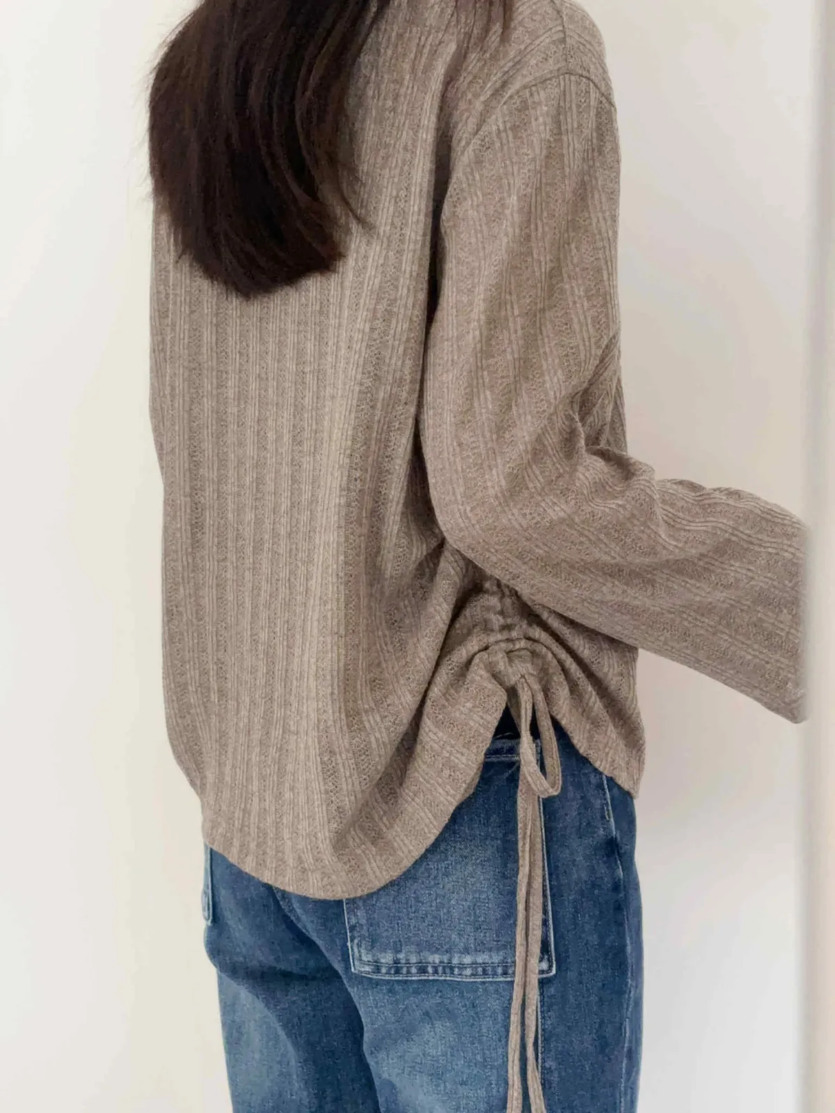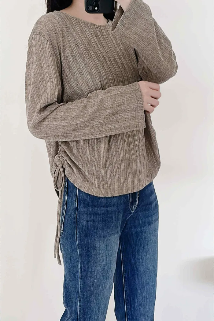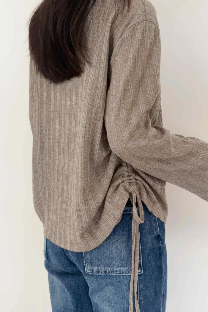 輕薄款/側綁繩微透感針織上衣/大胸友善