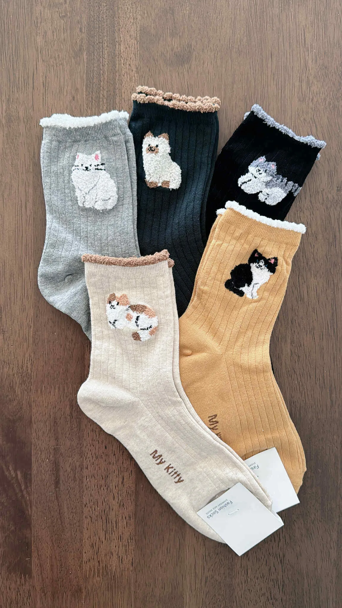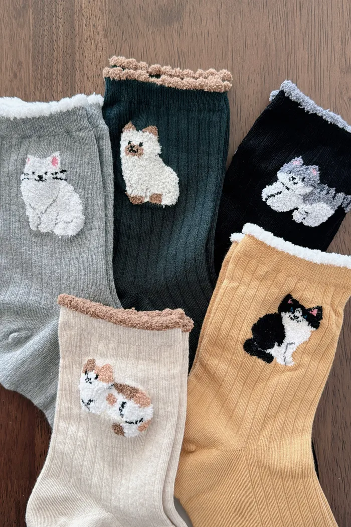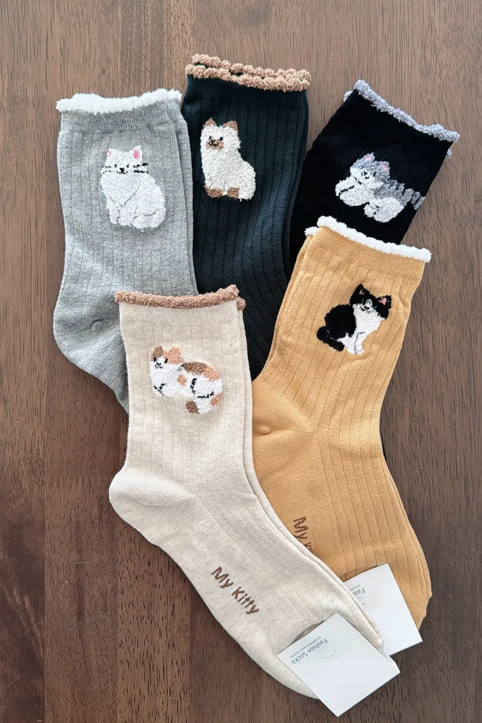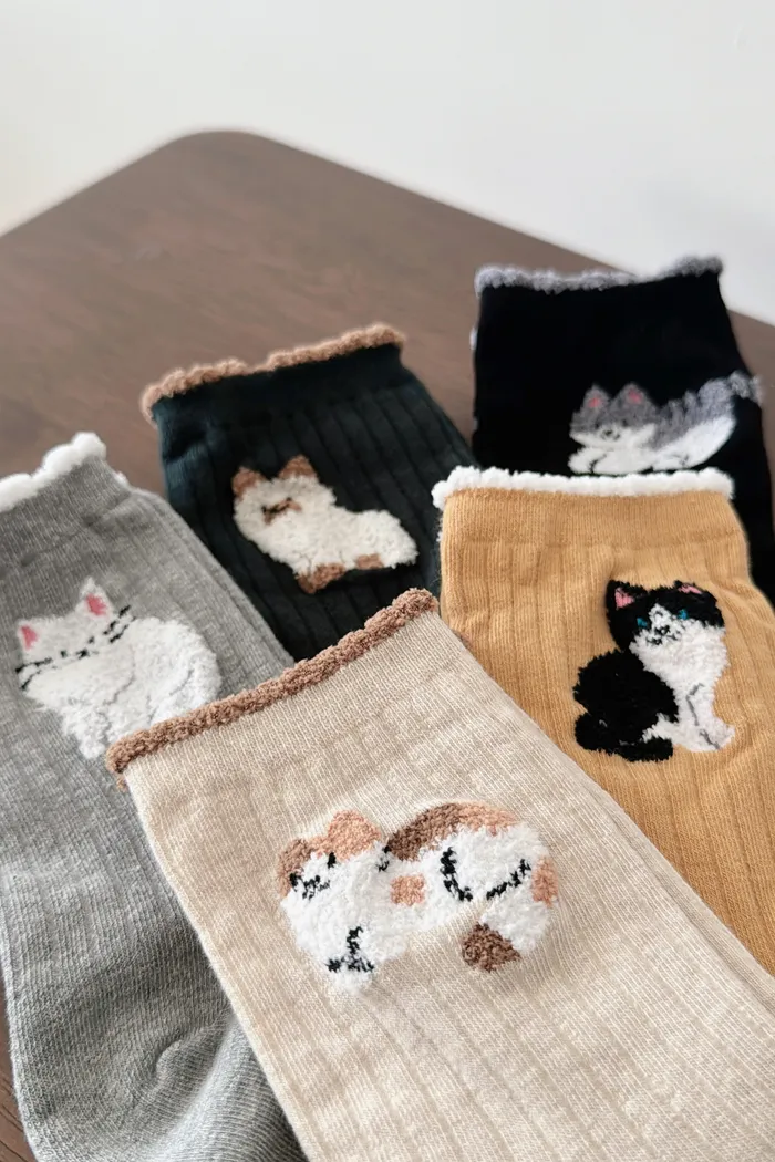 KOREA/撞色邊療癒系貓貓長襪