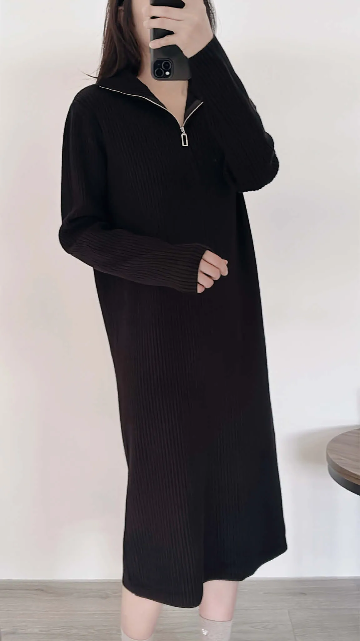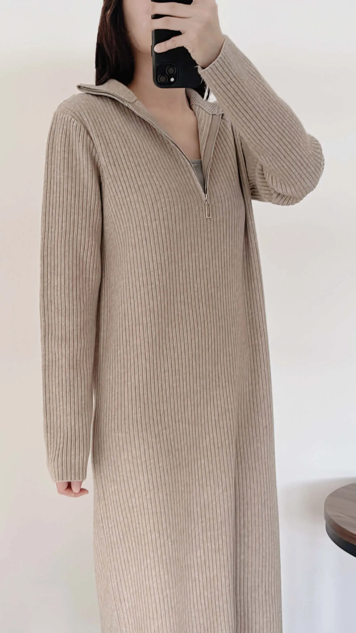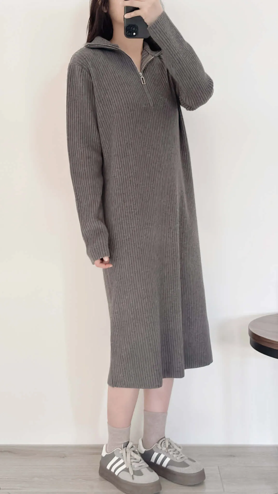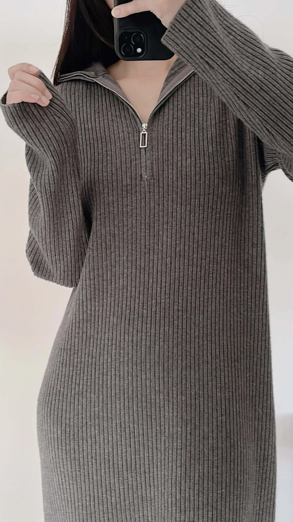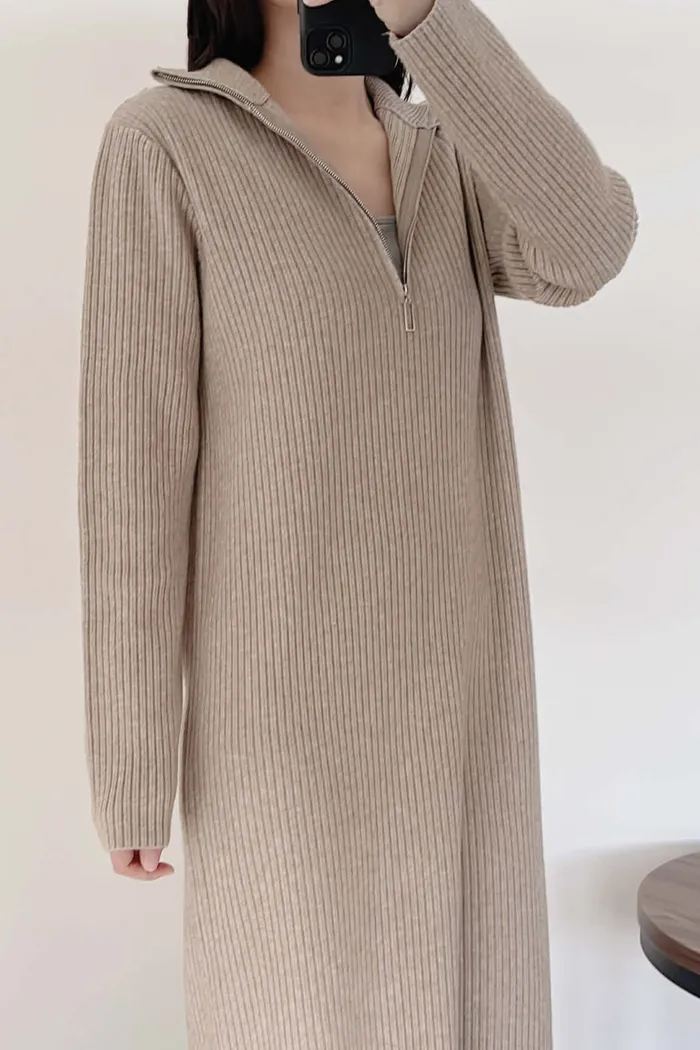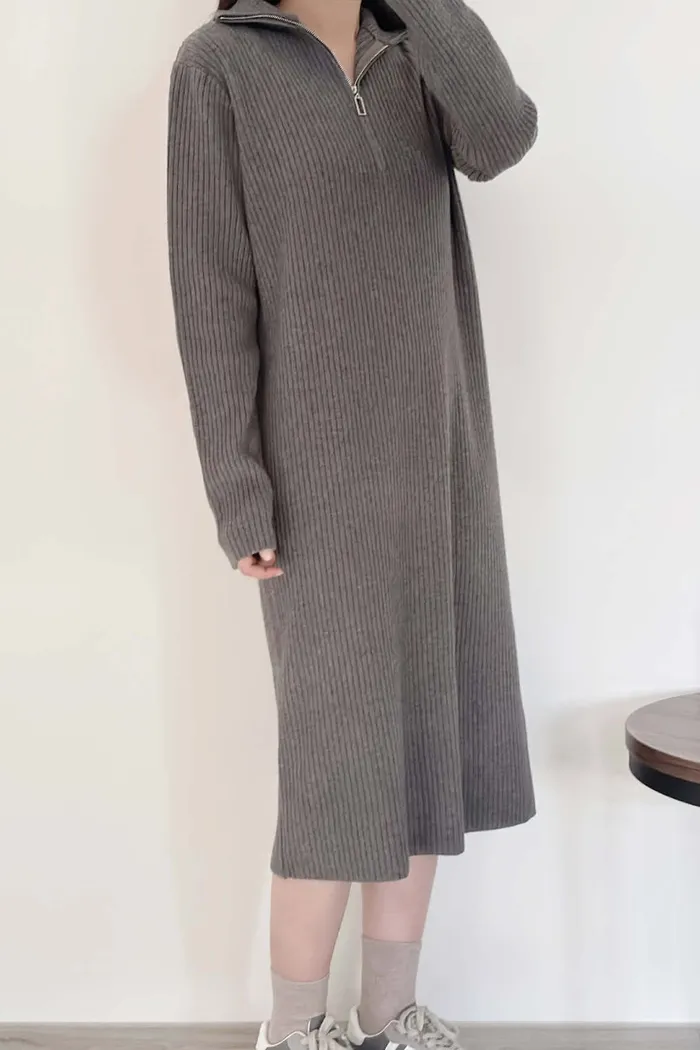 有磅數!拉鍊造型柔軟針織長洋