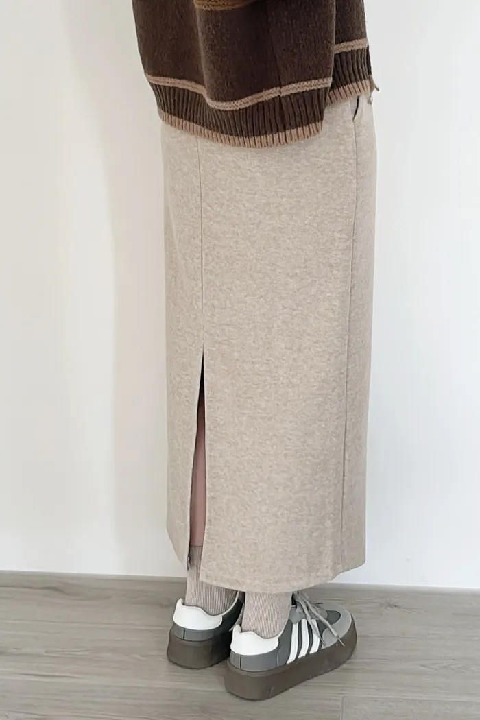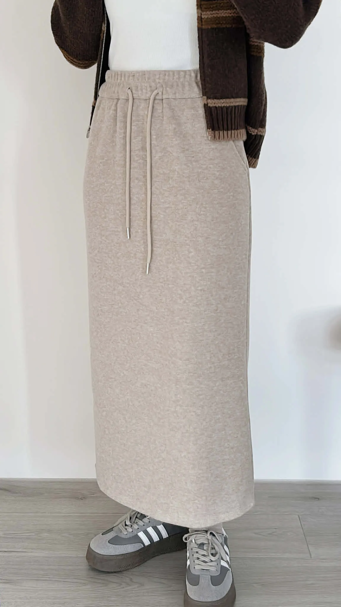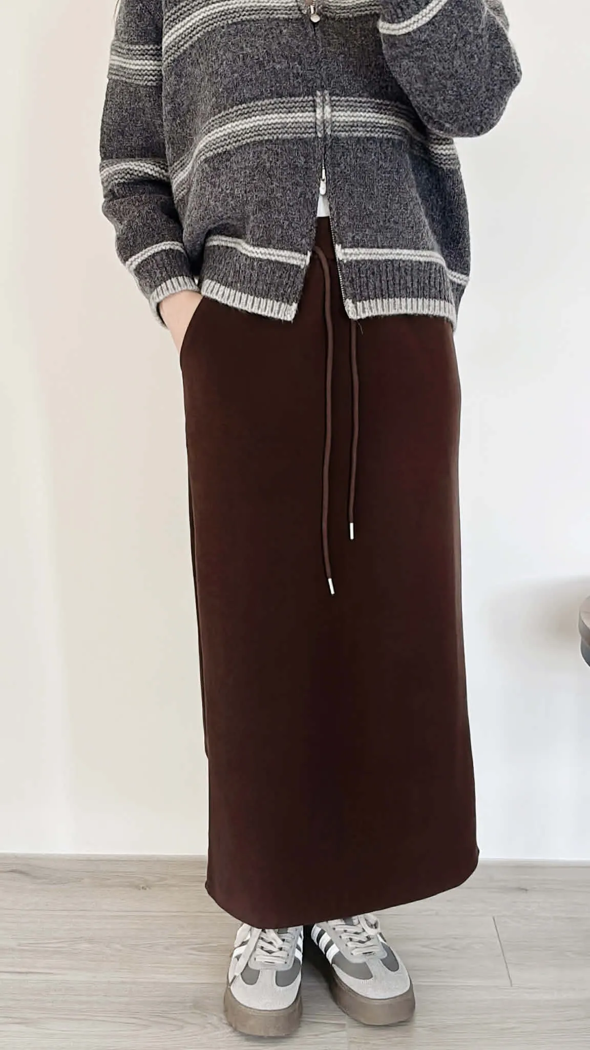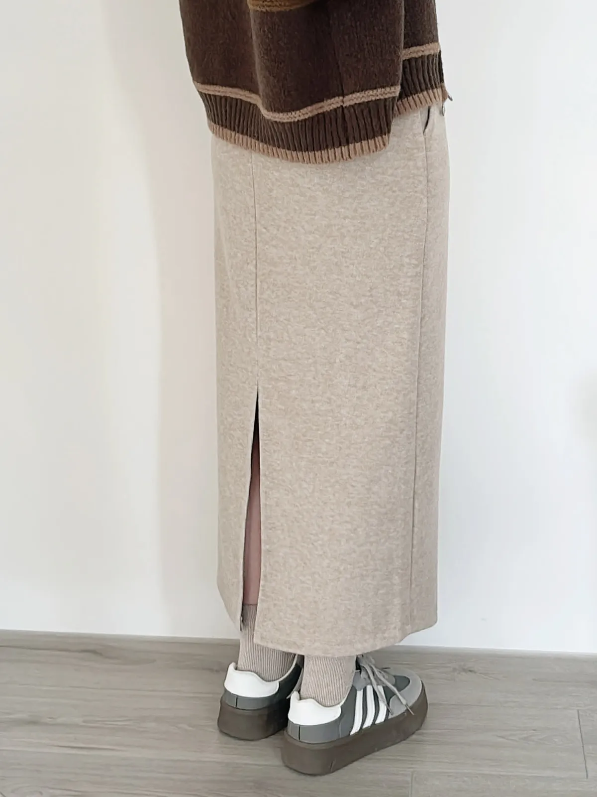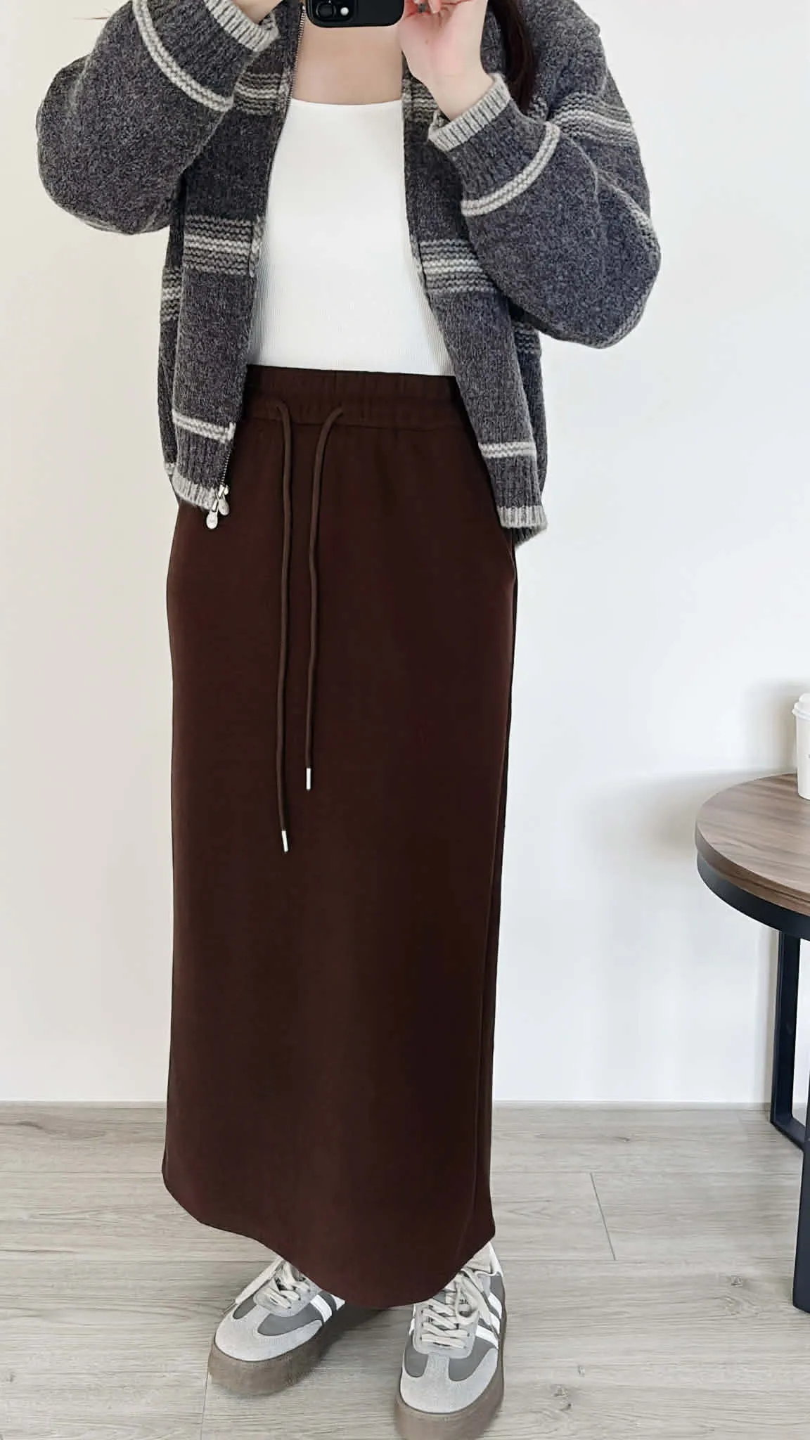 有挺度!後開衩柔柔毛呢長裙/有口袋/全鬆緊腰