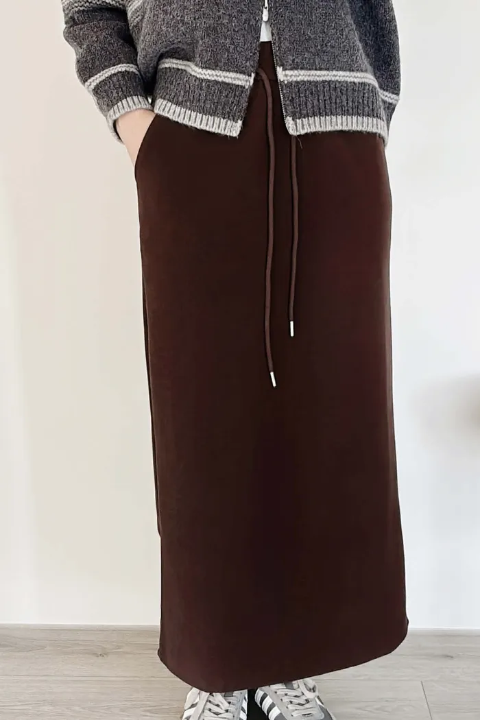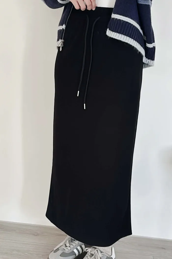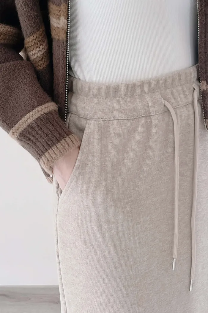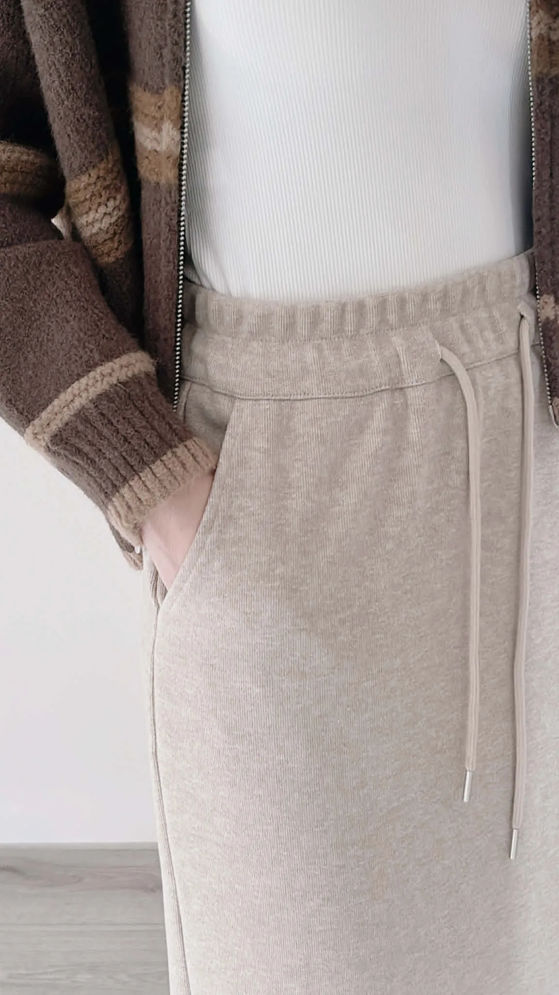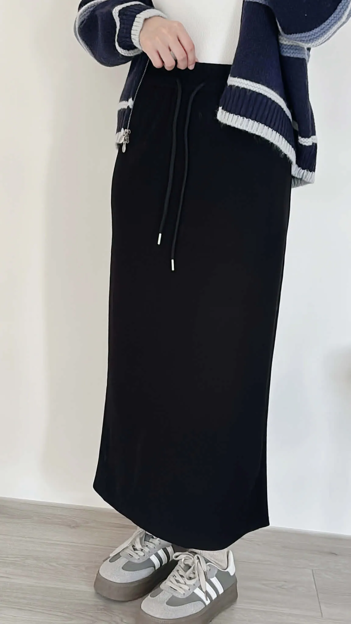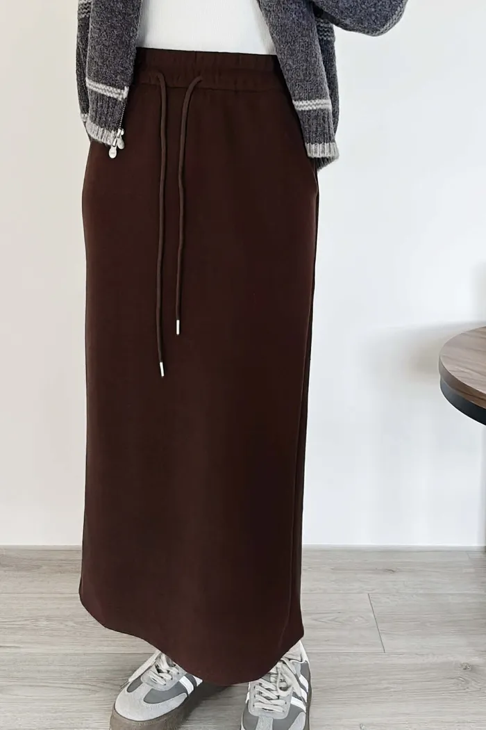 有挺度!後開衩柔柔毛呢長裙/有口袋/全鬆緊腰