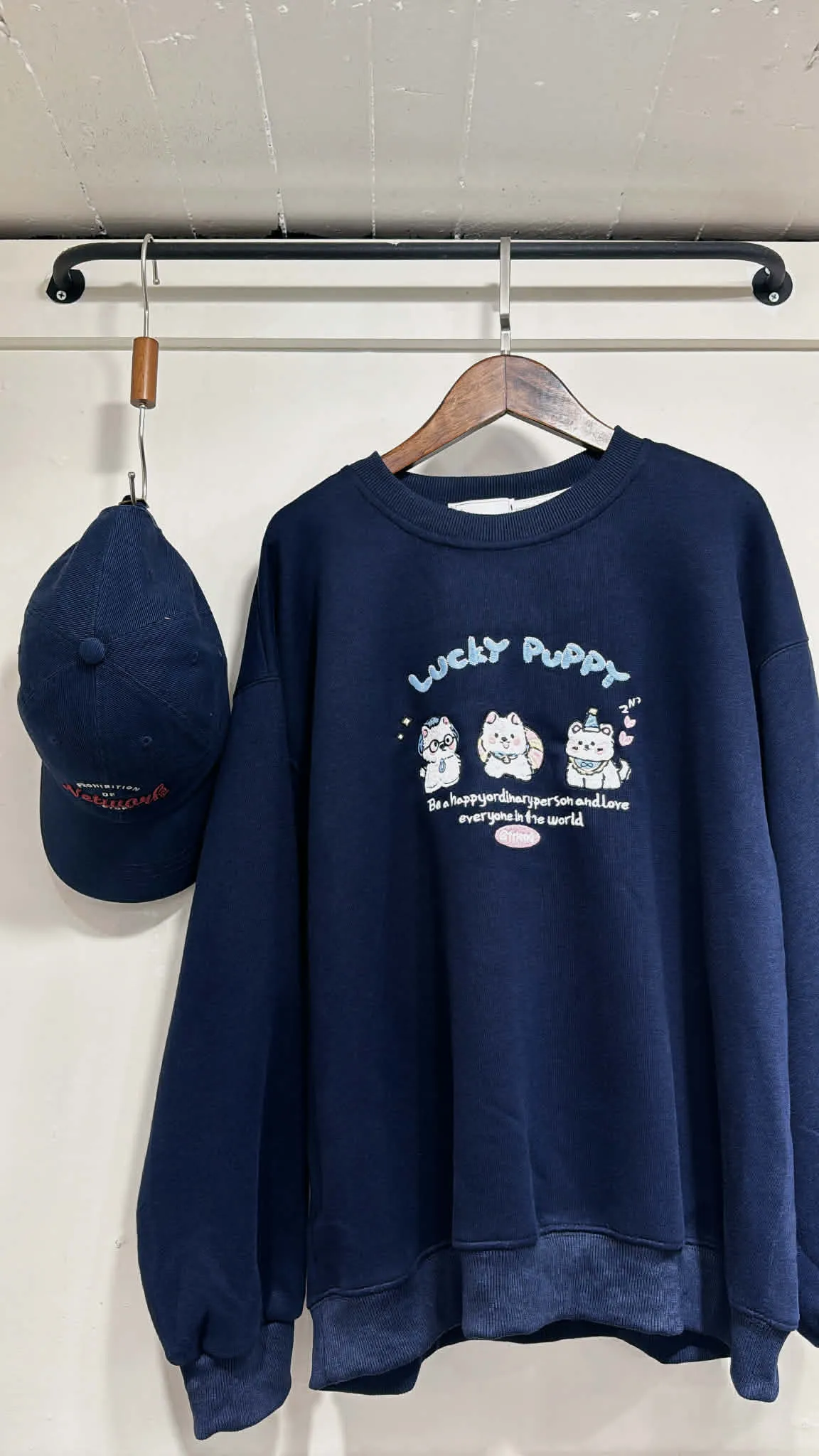 三隻刺繡狗狗大學tee/大胸友善/內無刷毛