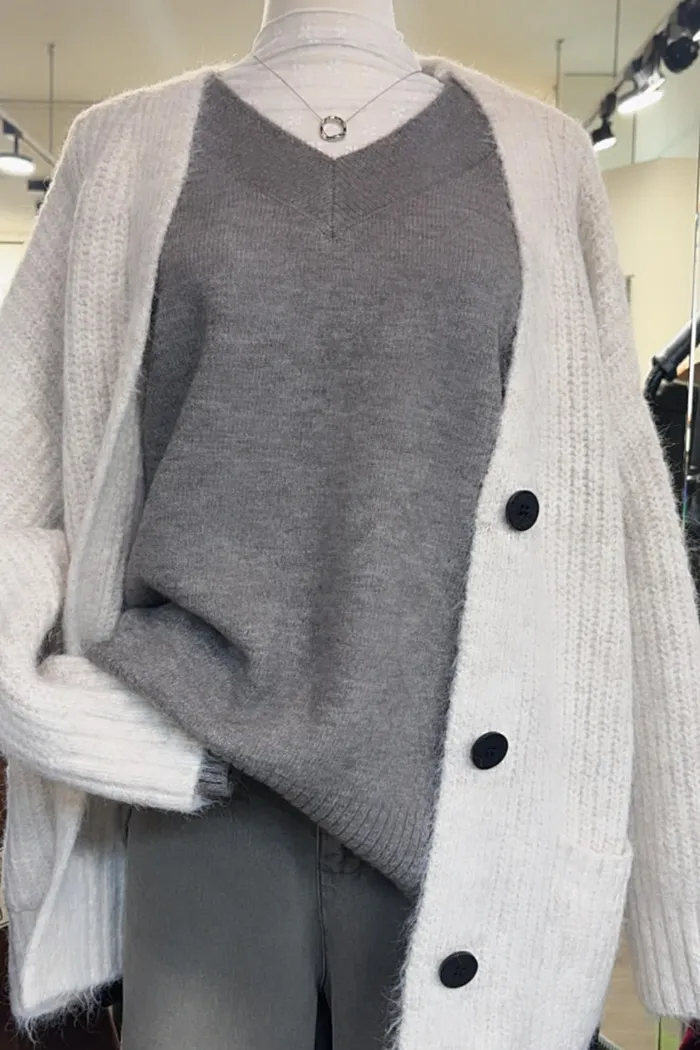 100kg以下都可以!大件寬鬆感無領針織外套/大胸友善/男女皆可