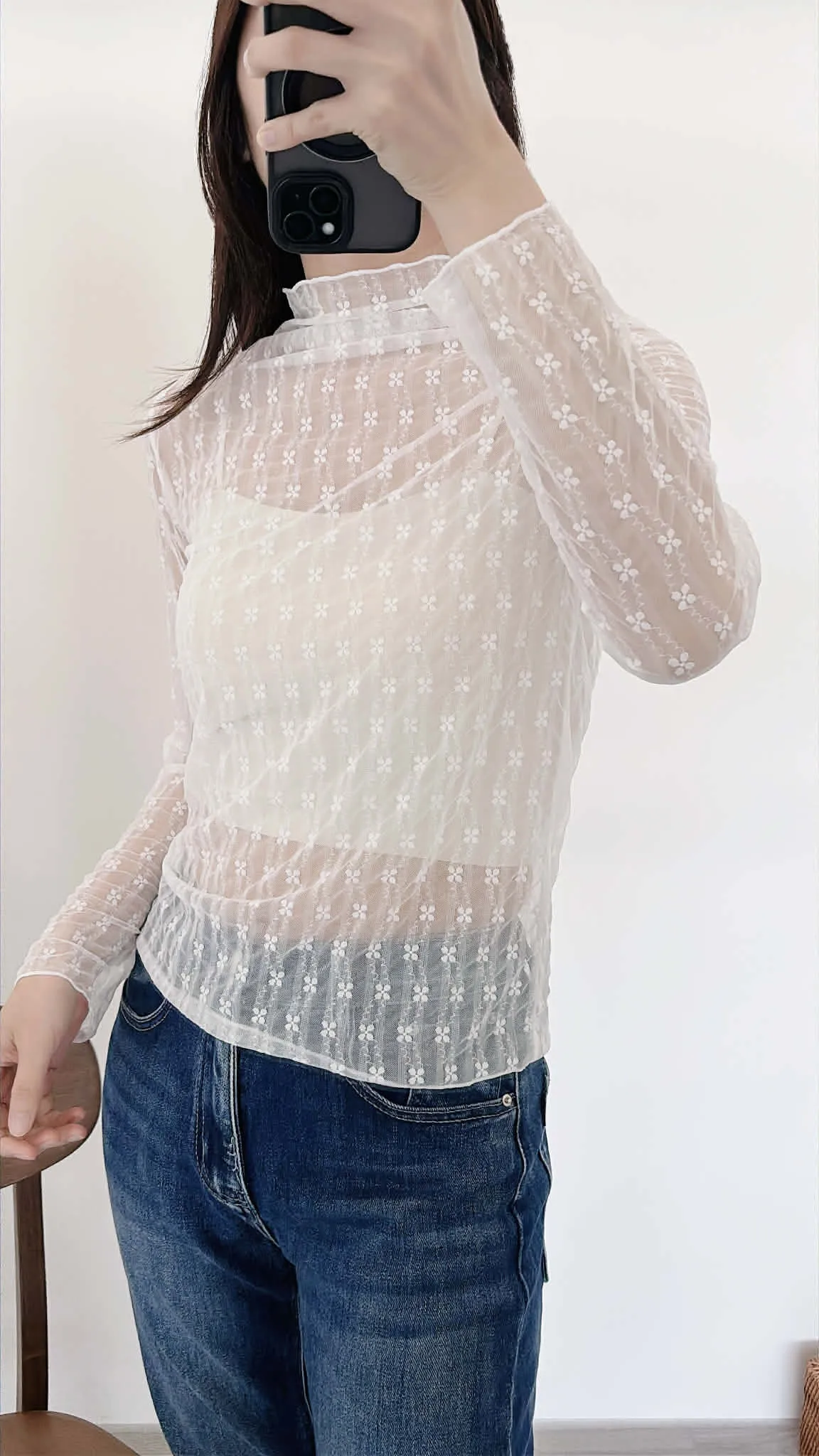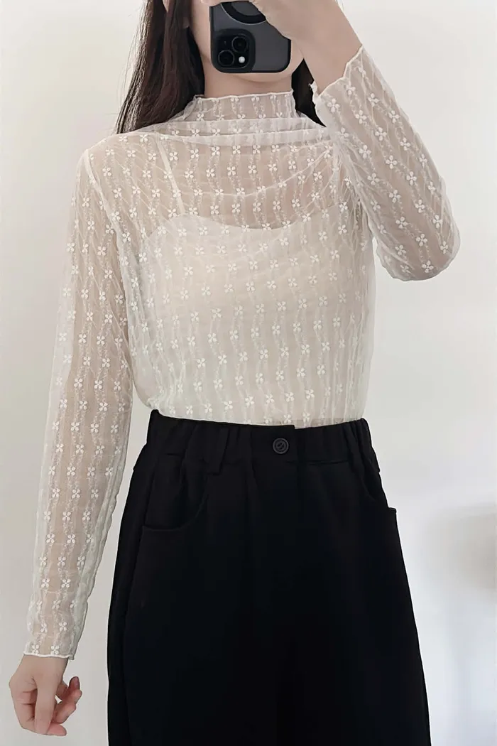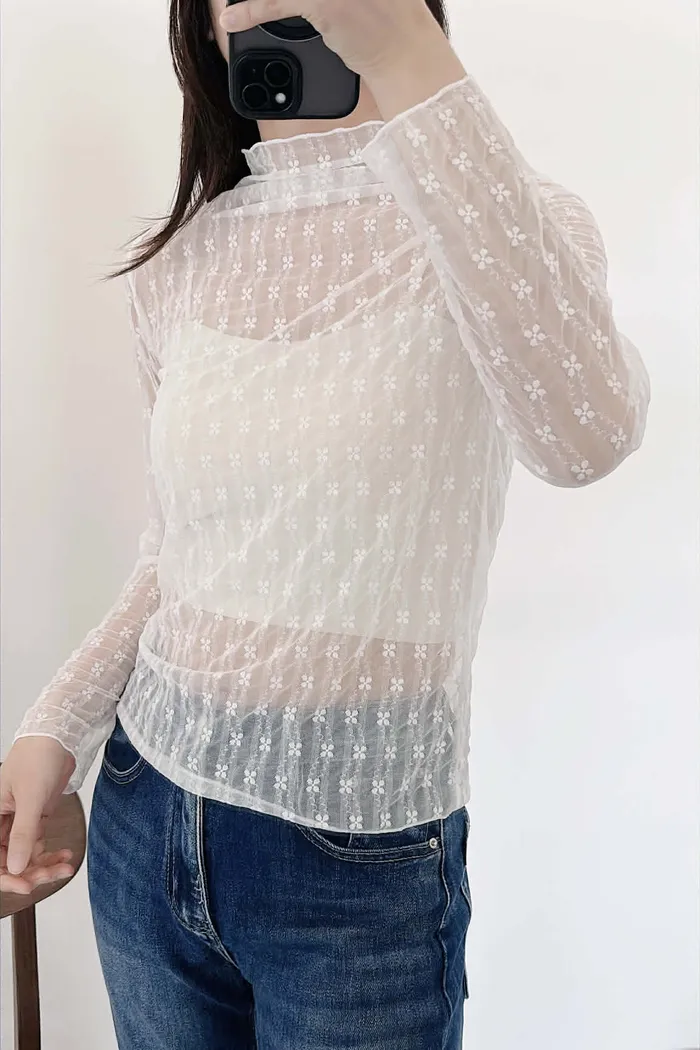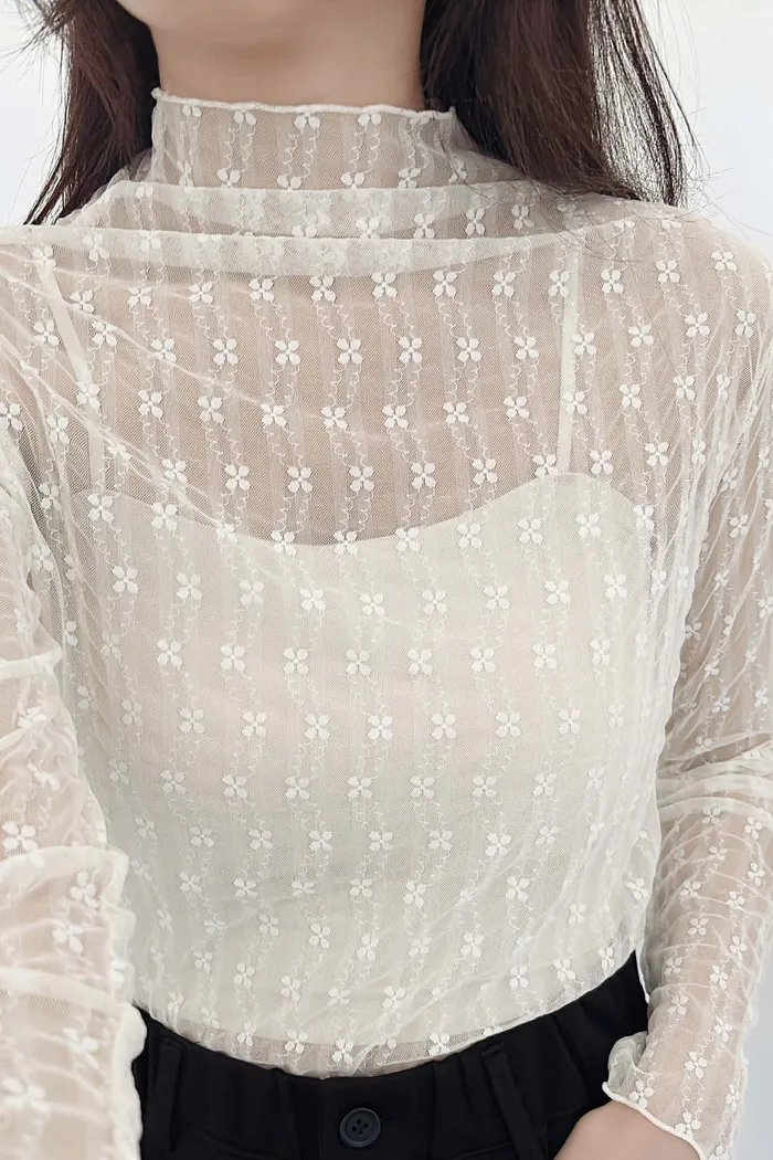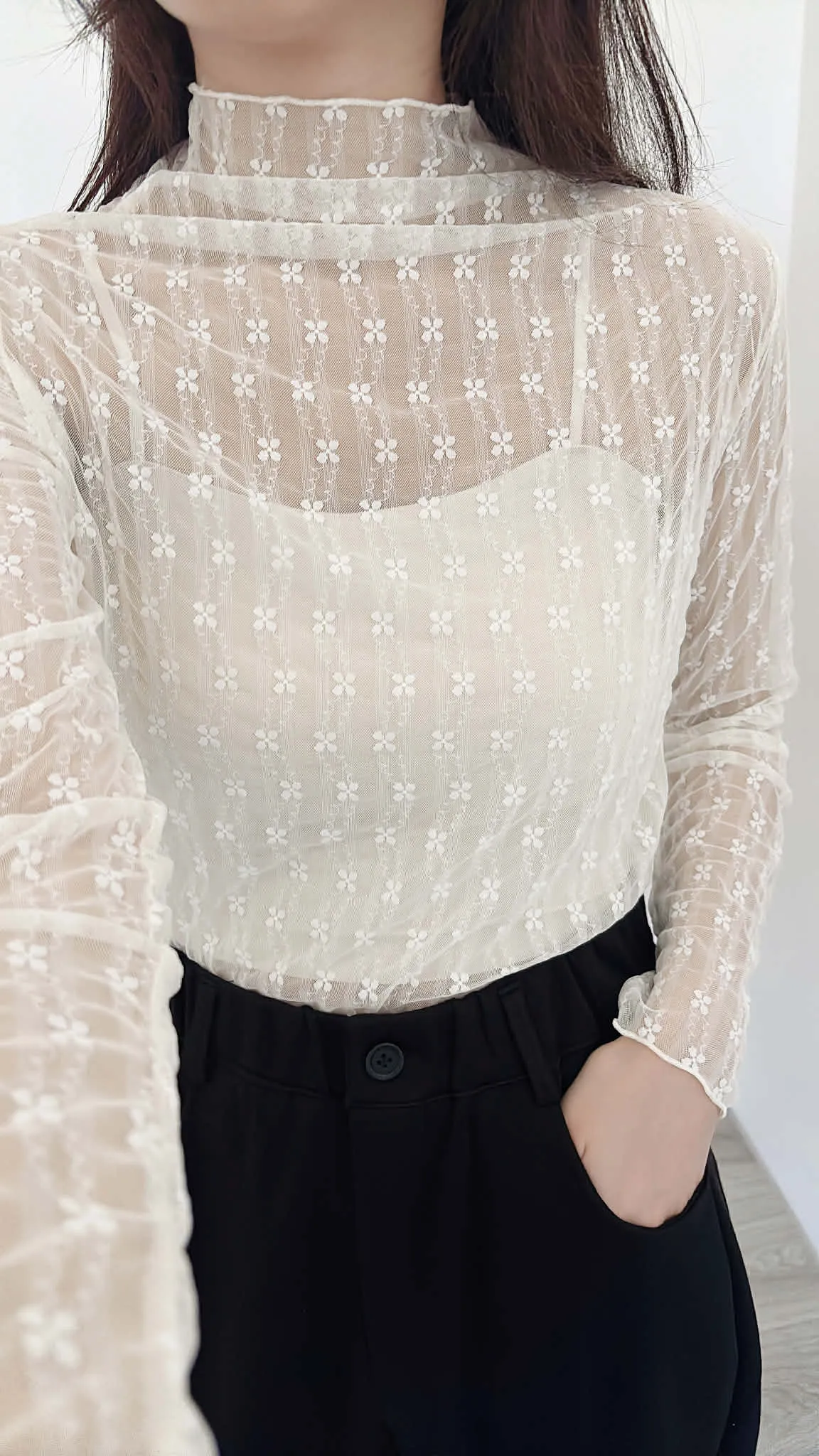 高級感小花捲邊透透內搭/四季皆宜