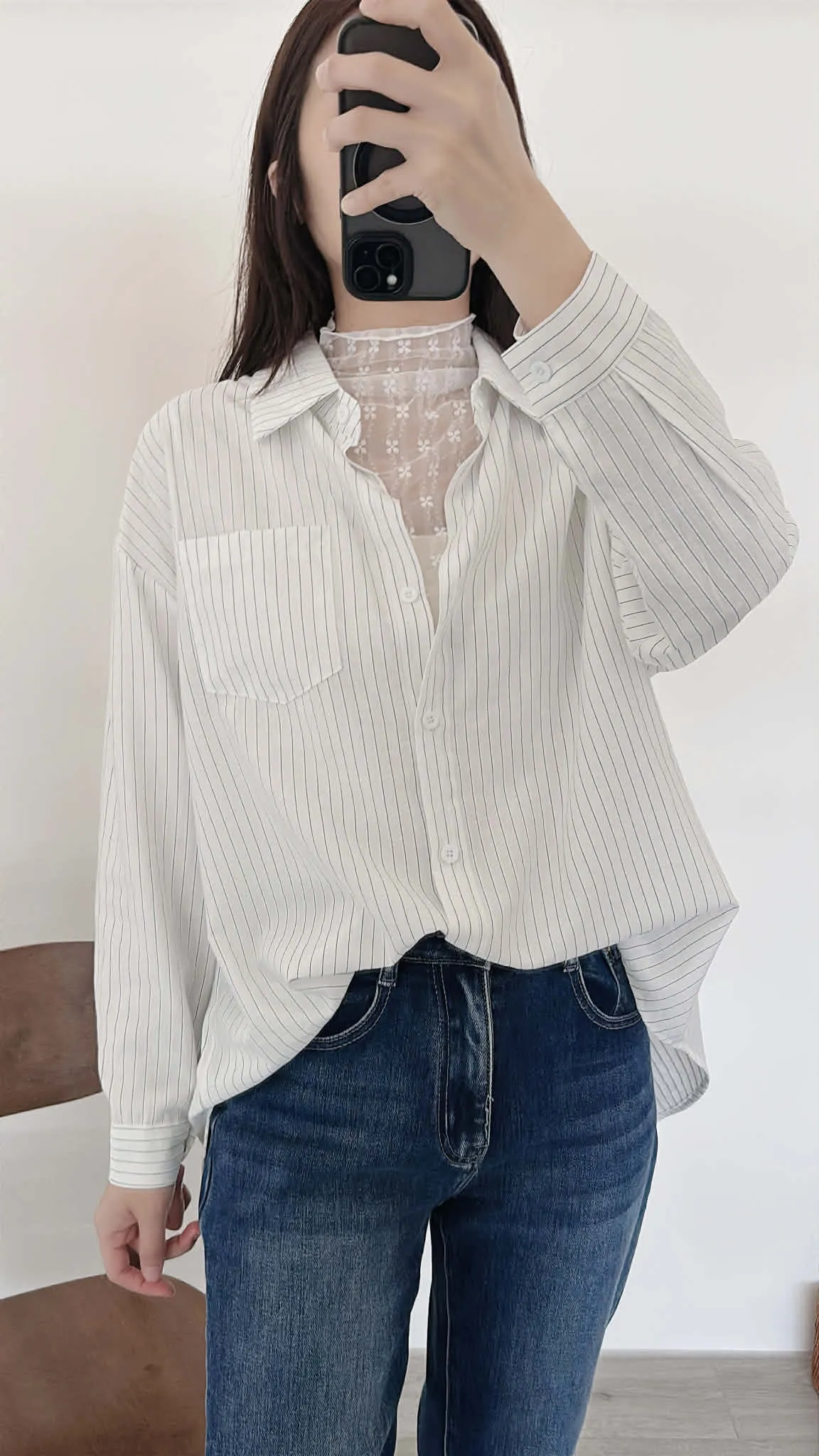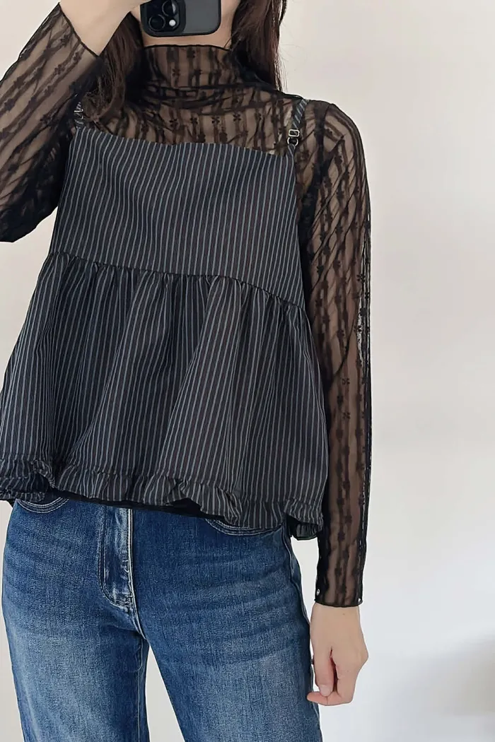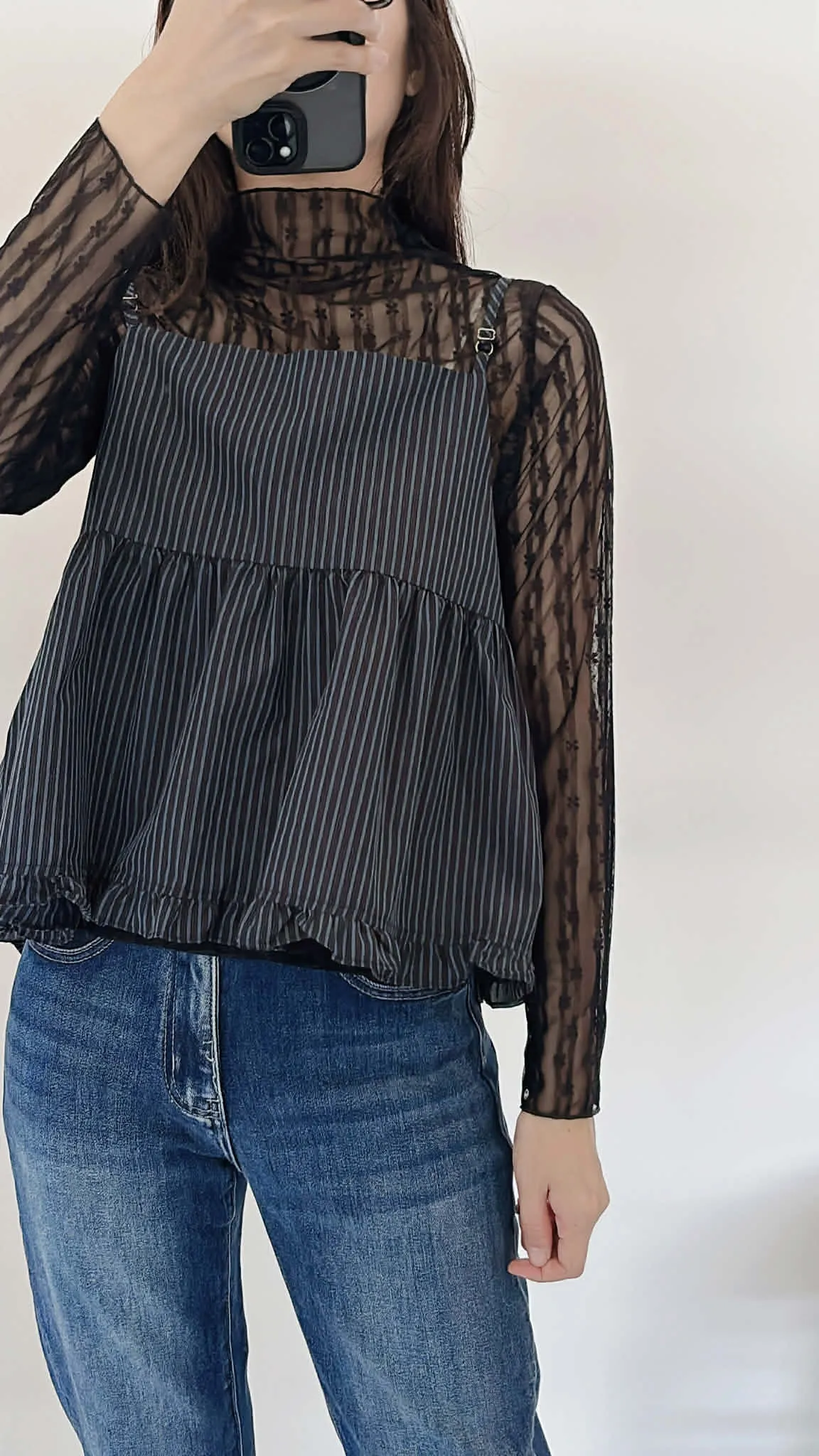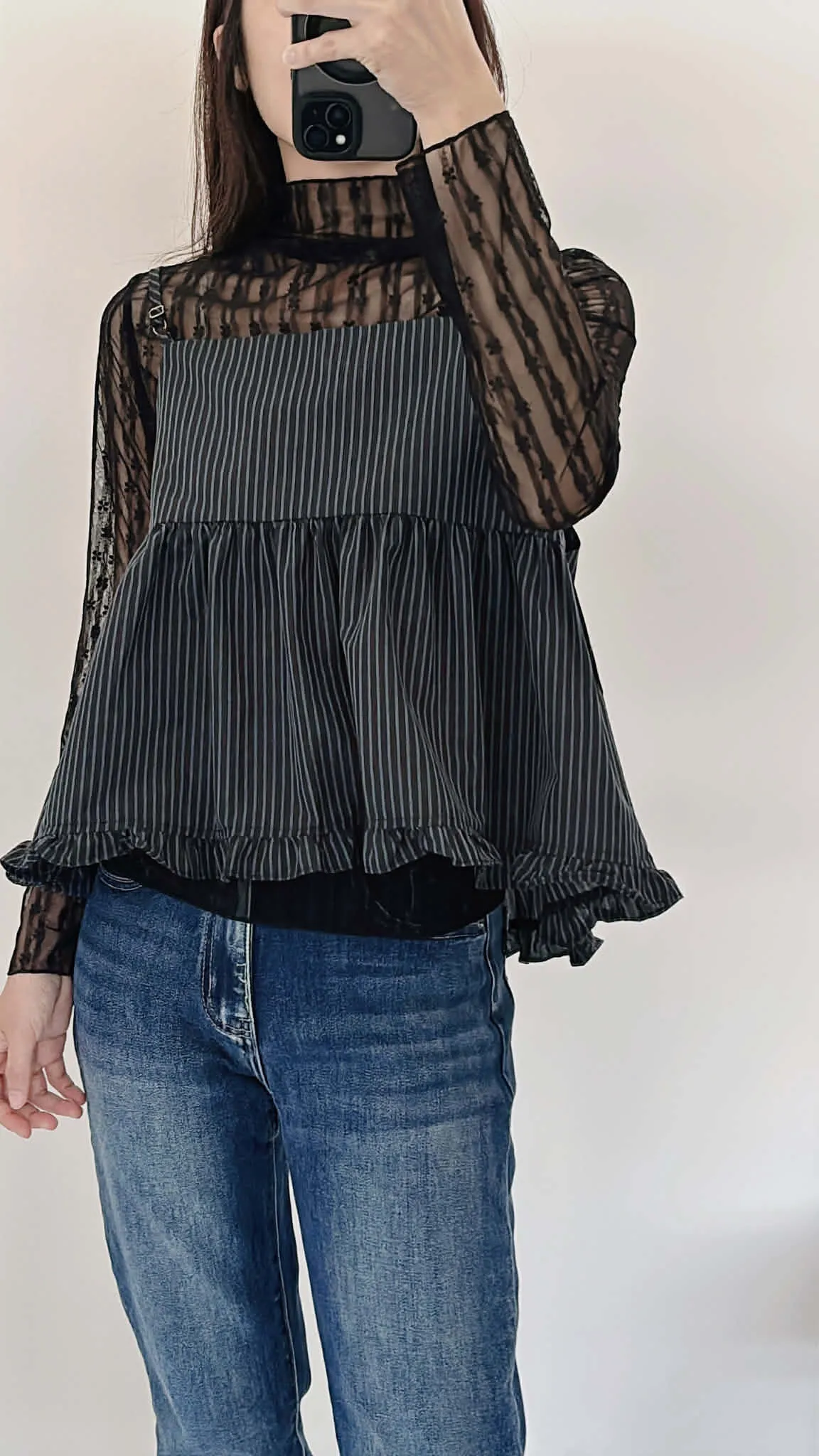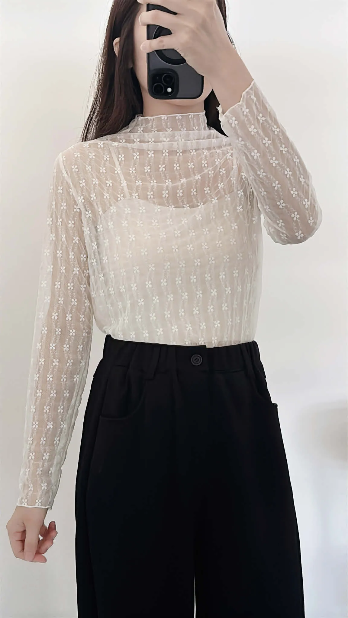 高級感小花捲邊透透內搭/四季皆宜