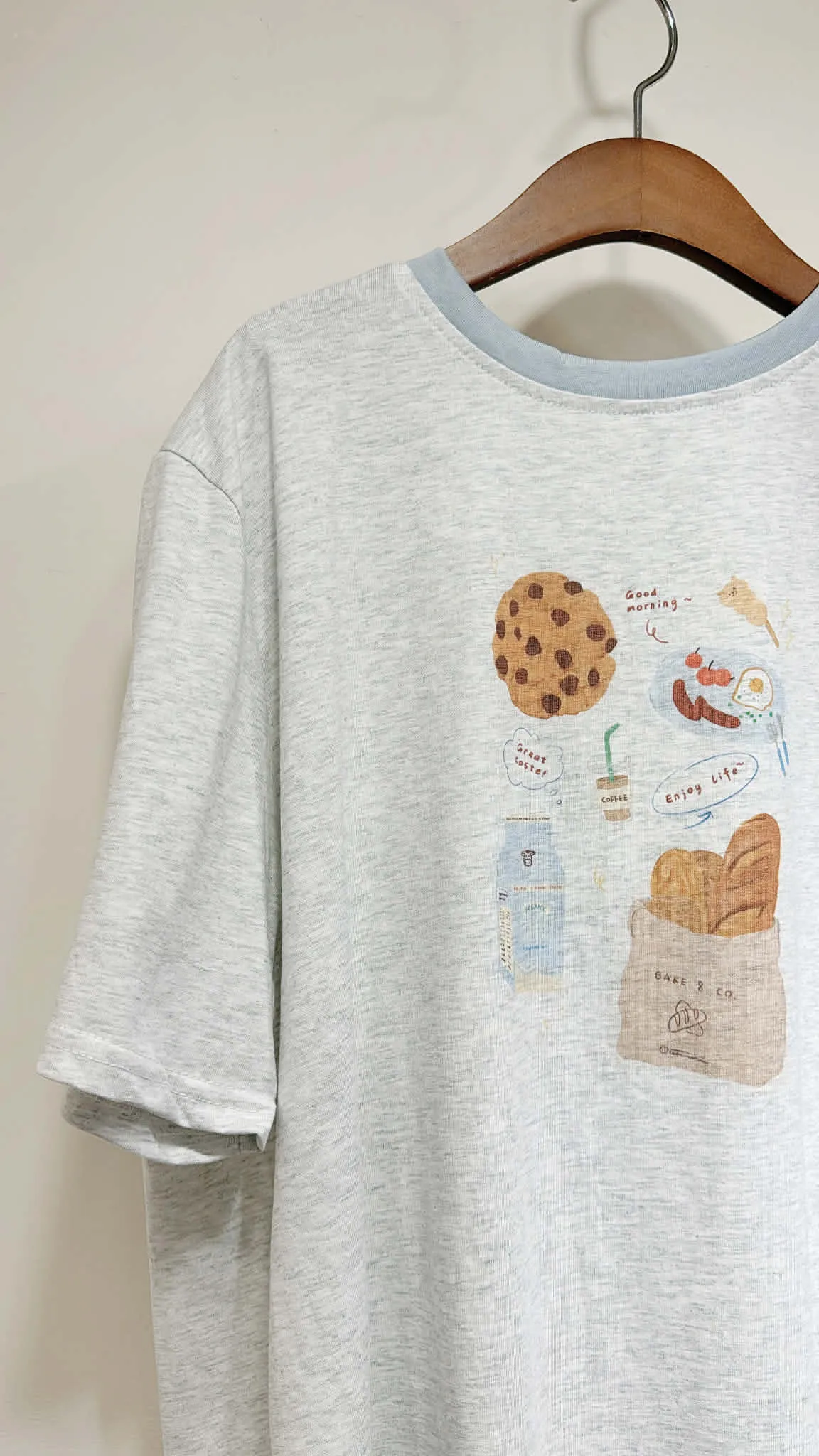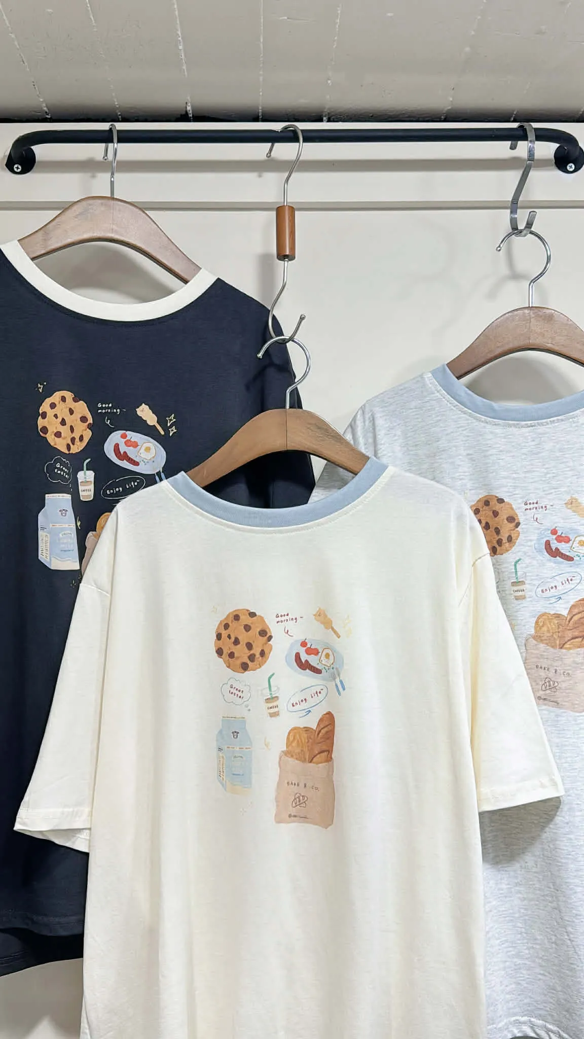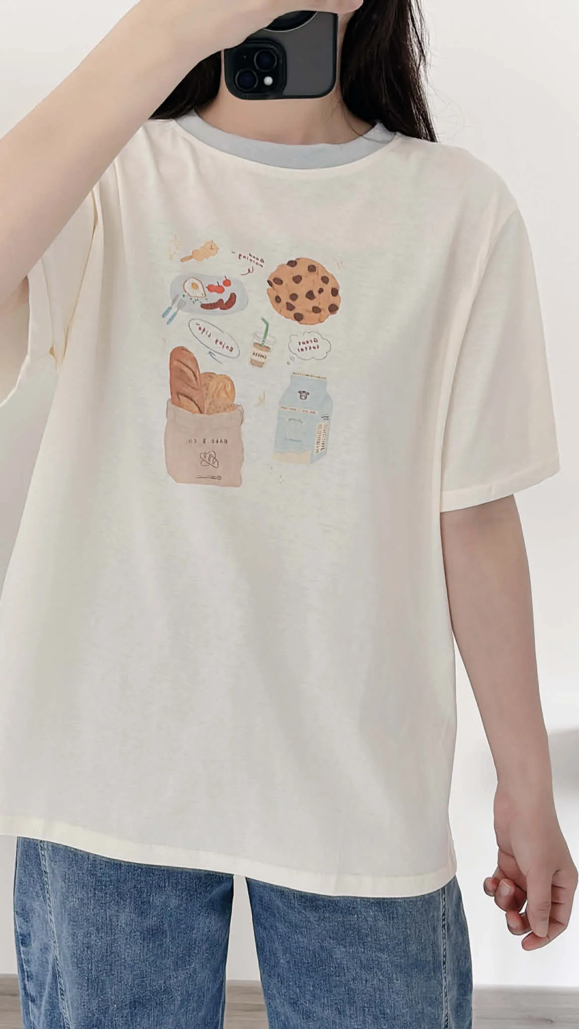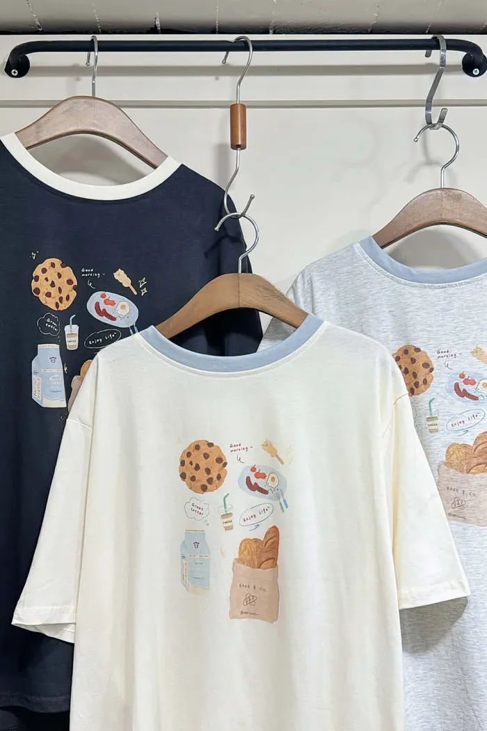 涼感棉/撞色領手繪感早餐tee/大胸友善