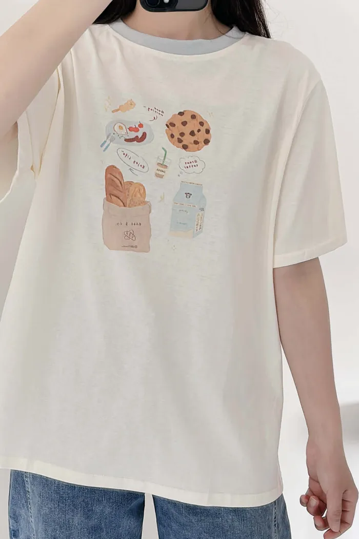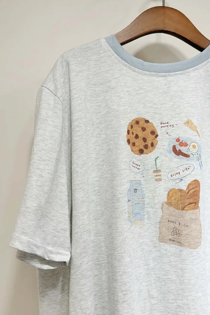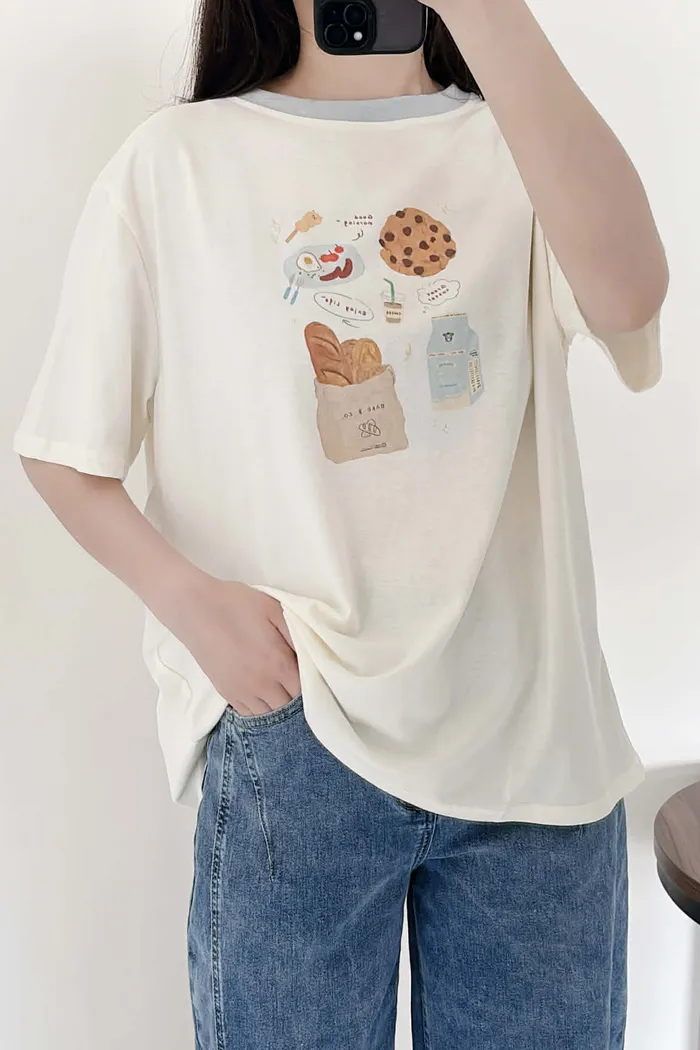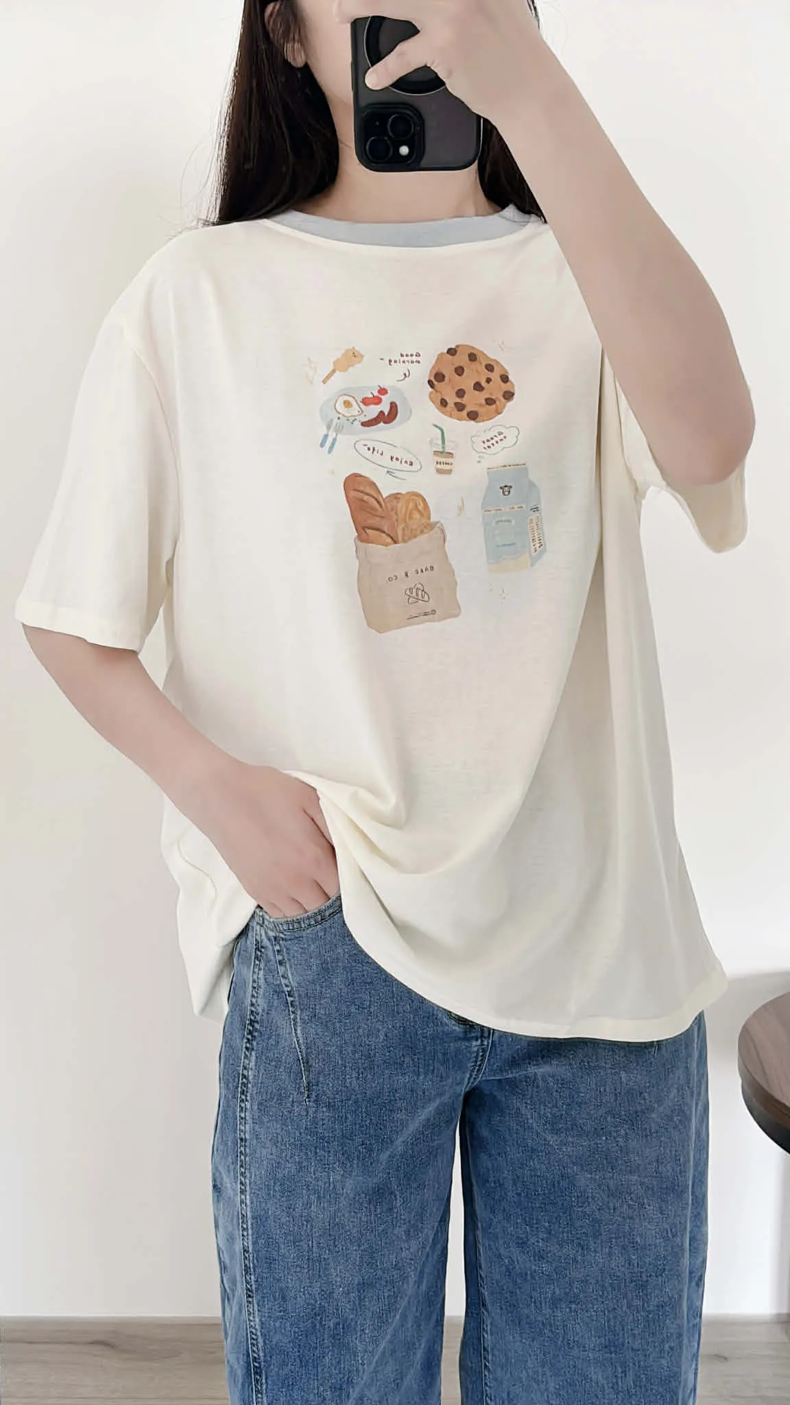 涼感棉/撞色領手繪感早餐tee/大胸友善