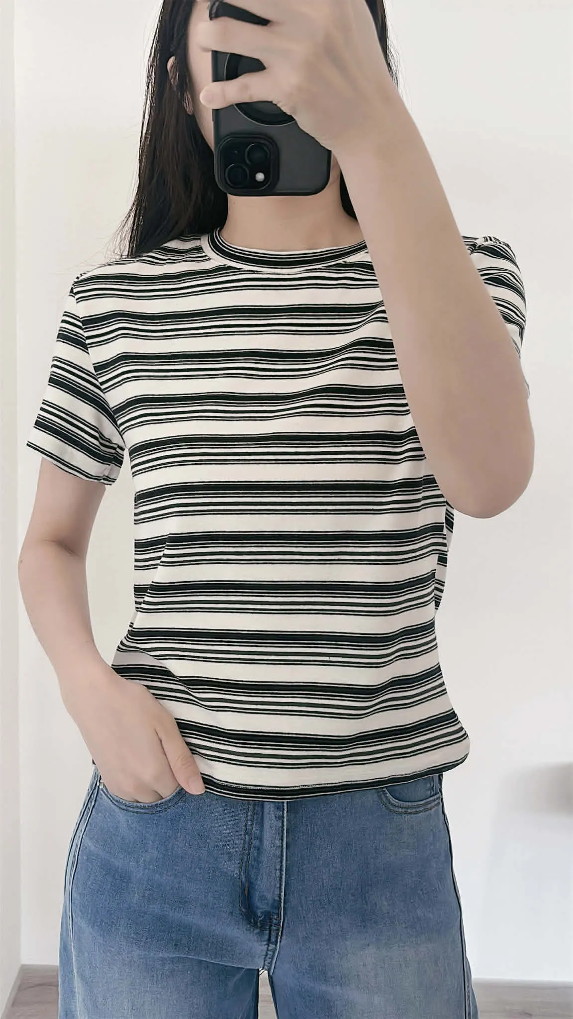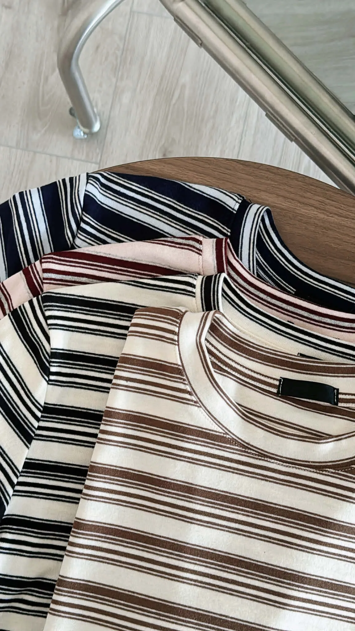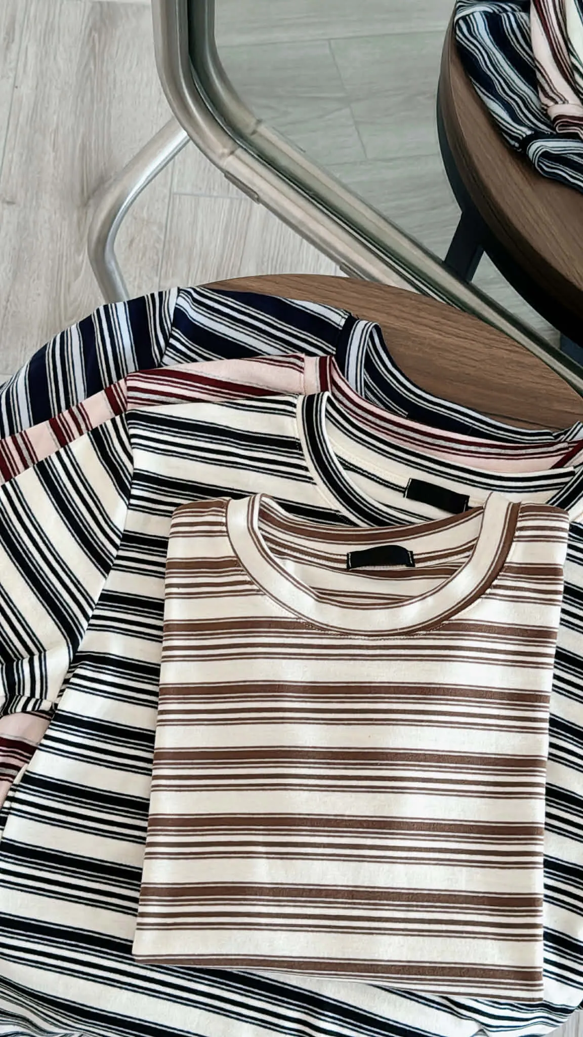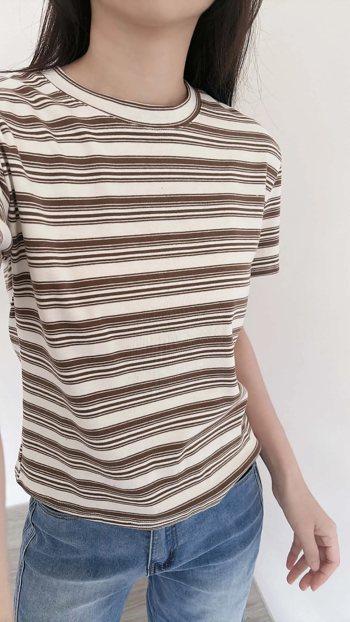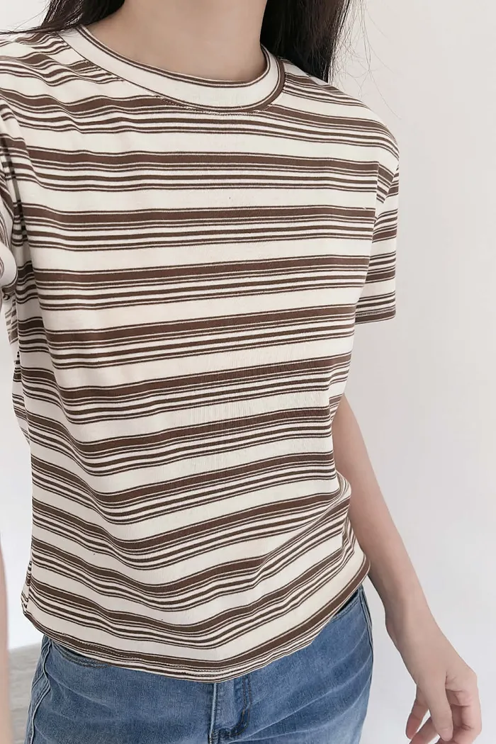 撞色條紋修身彈性柔棉tee
