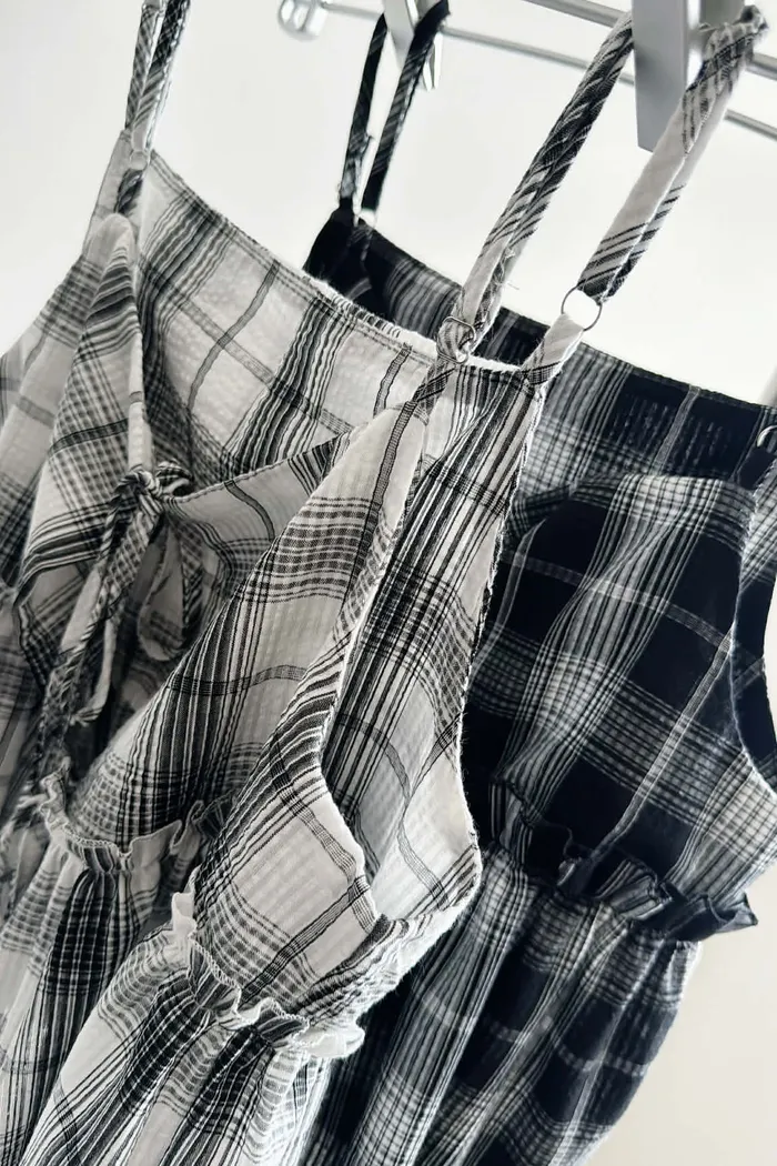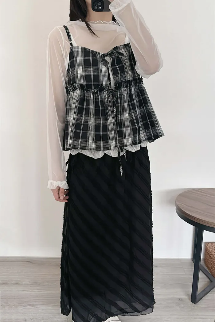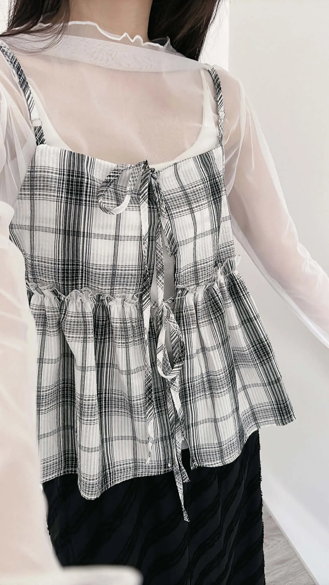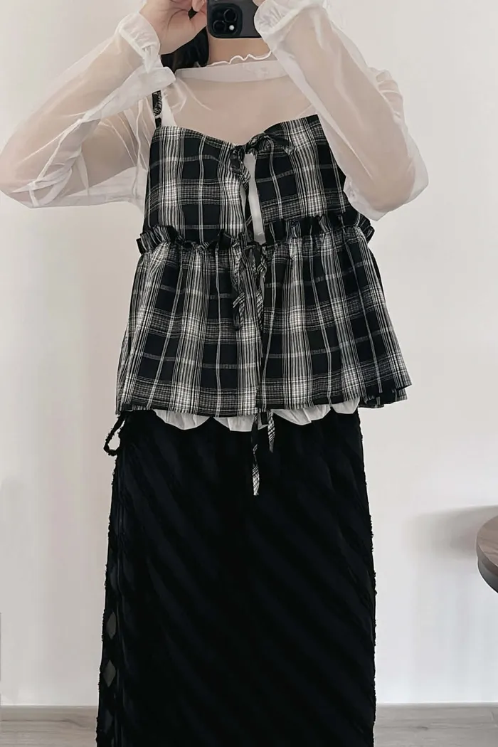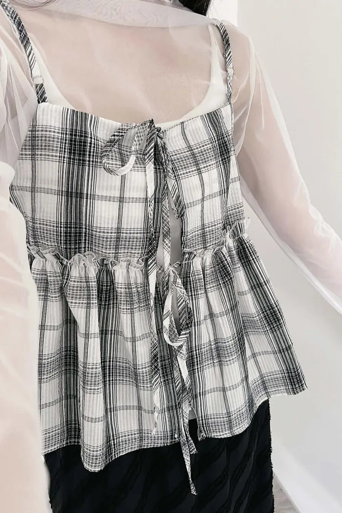 綁帶雙面穿格紋背心/可調式肩帶