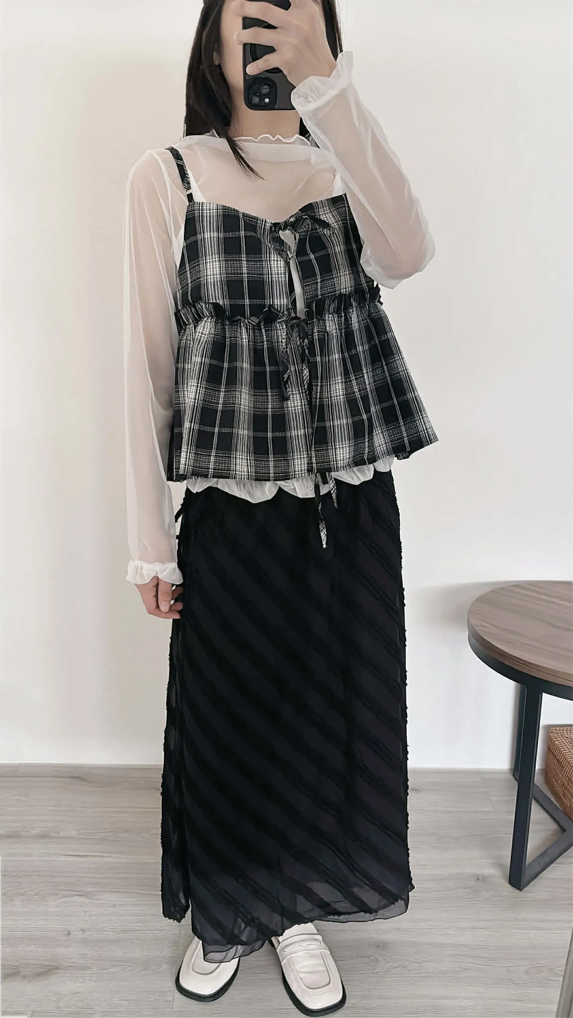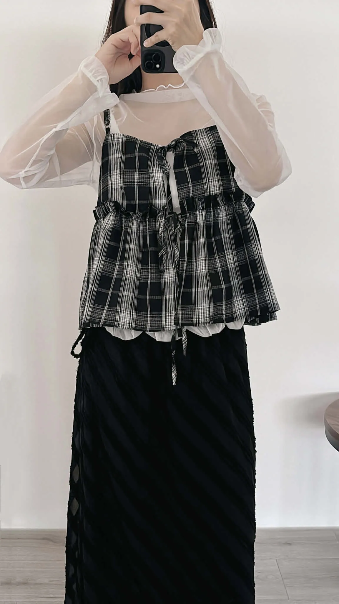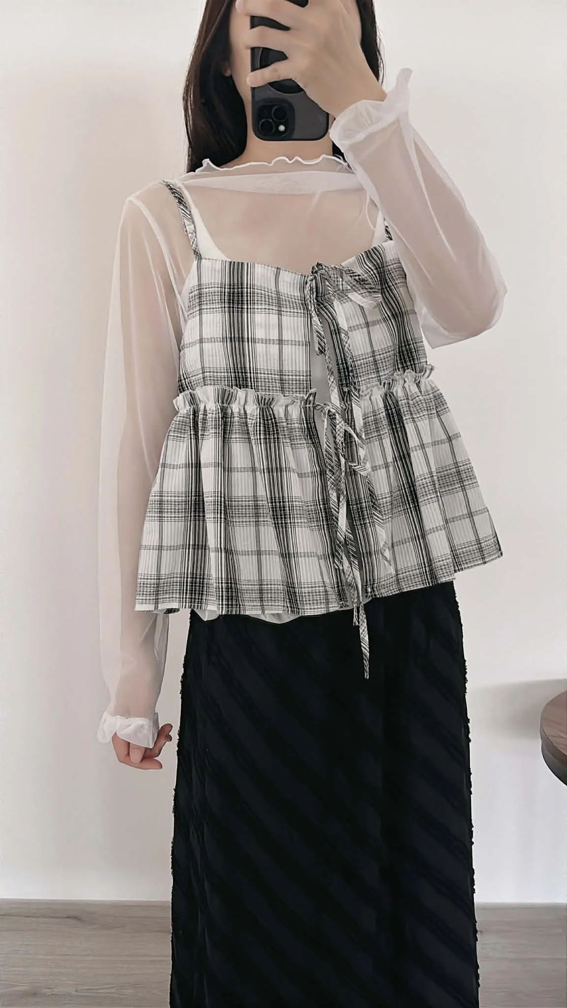 綁帶雙面穿格紋背心/可調式肩帶