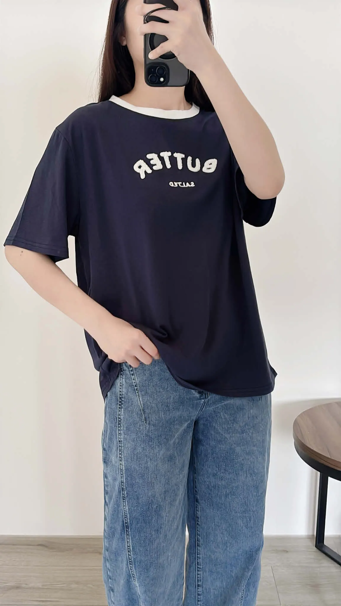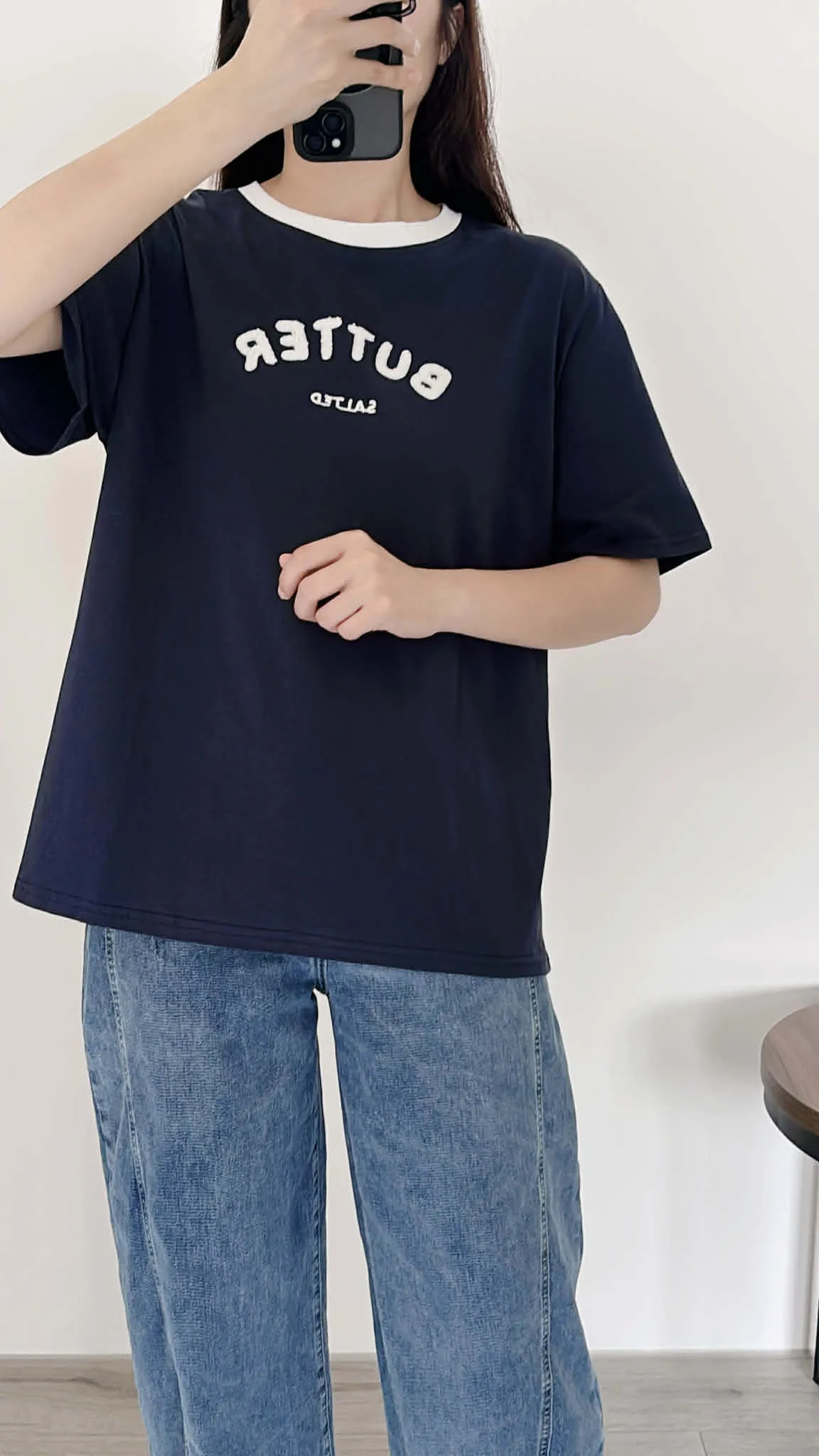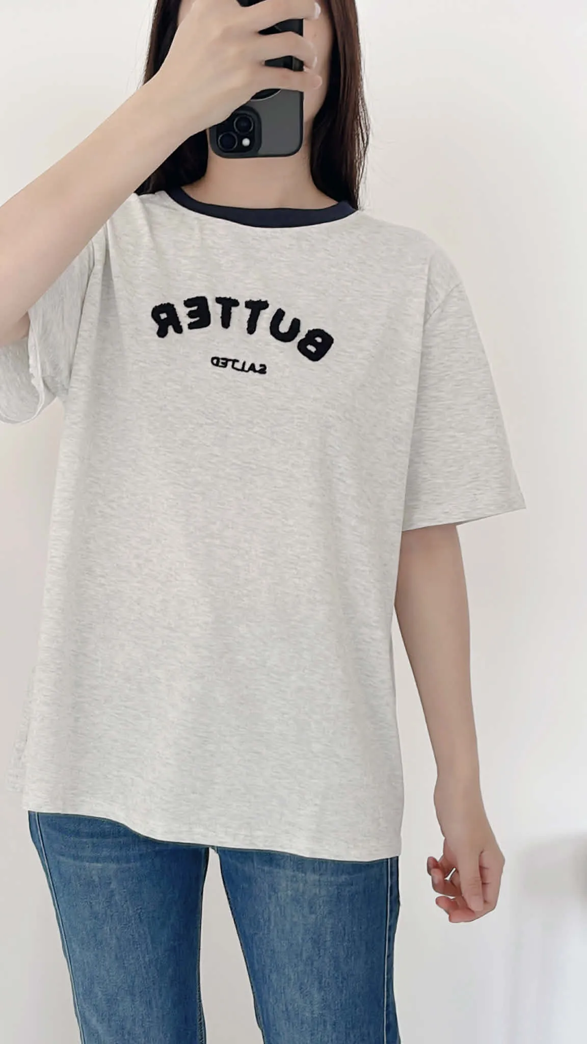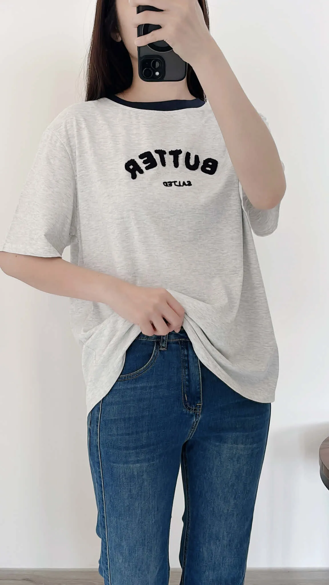 涼感棉/簡約QQ毛英文tee/大胸友善