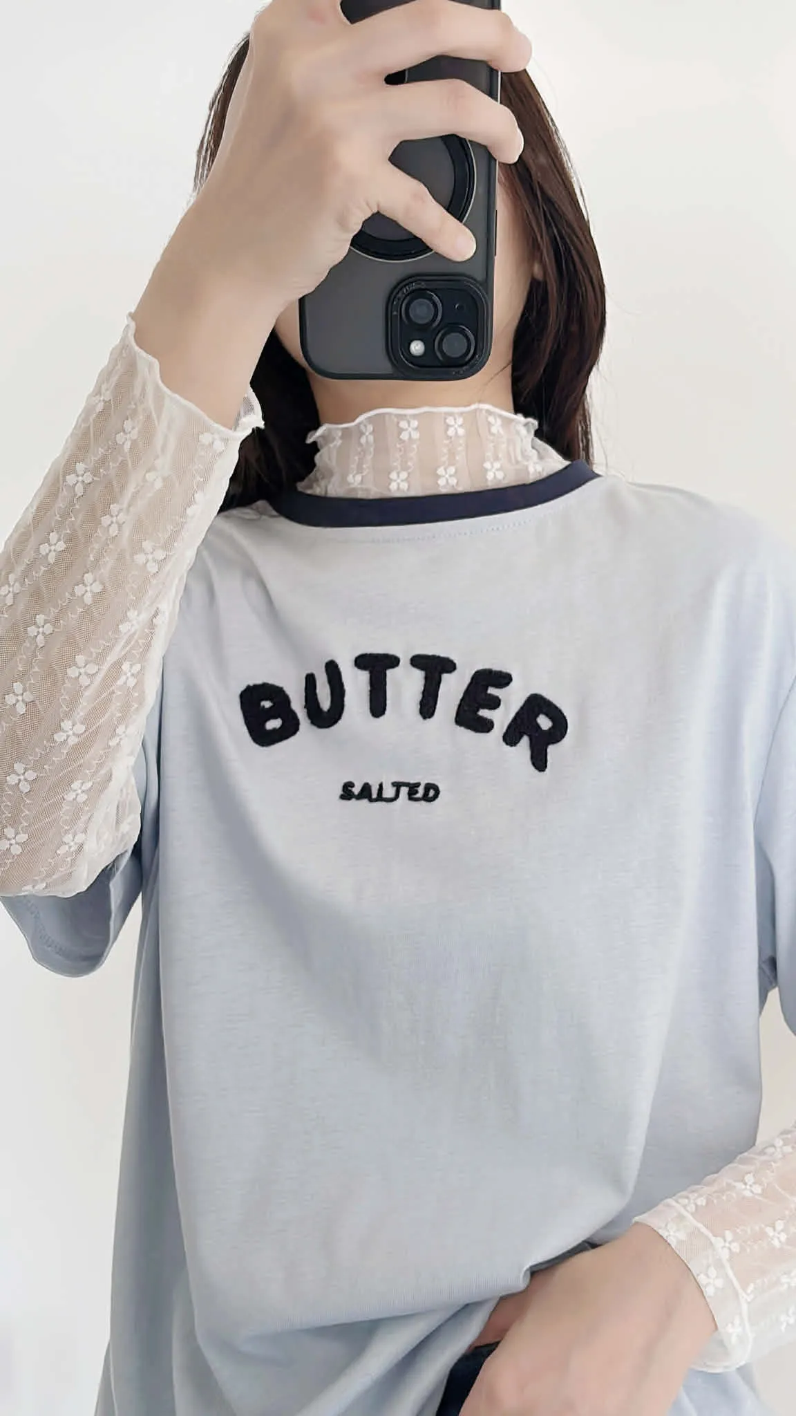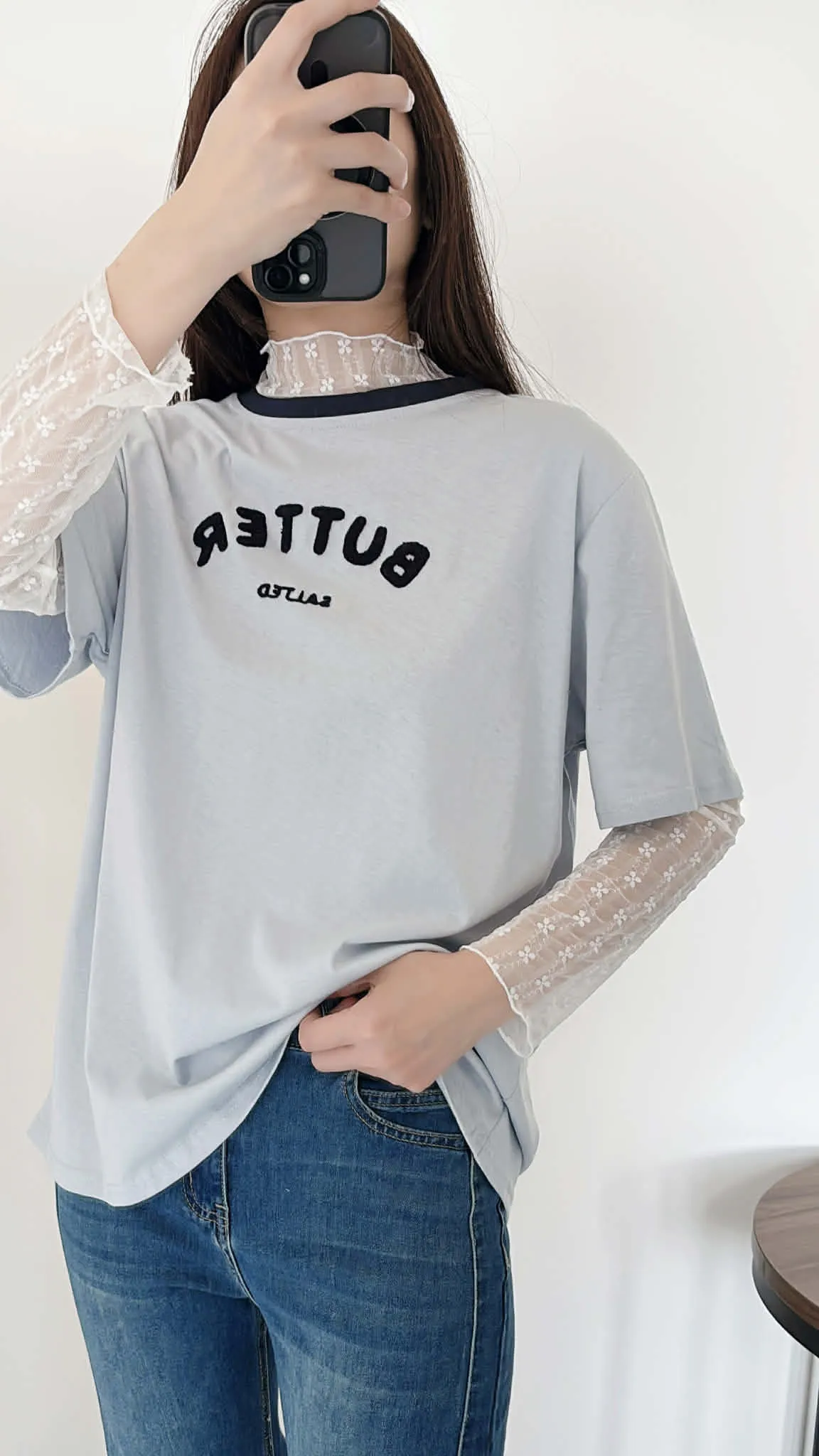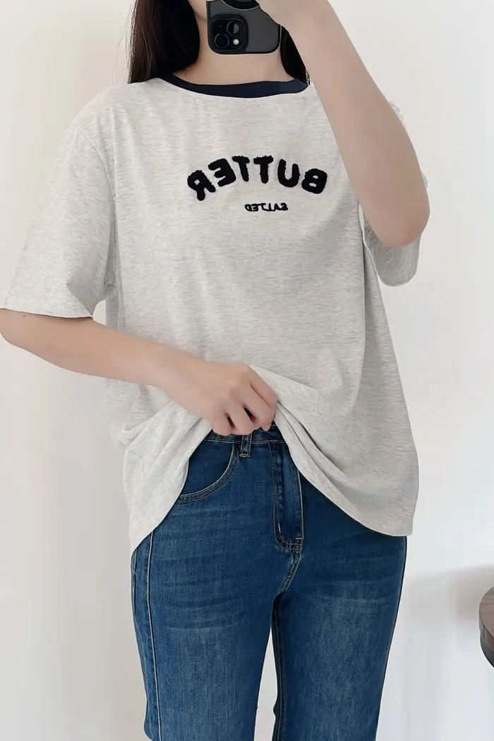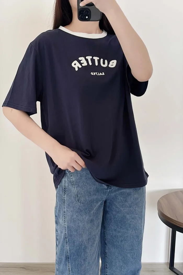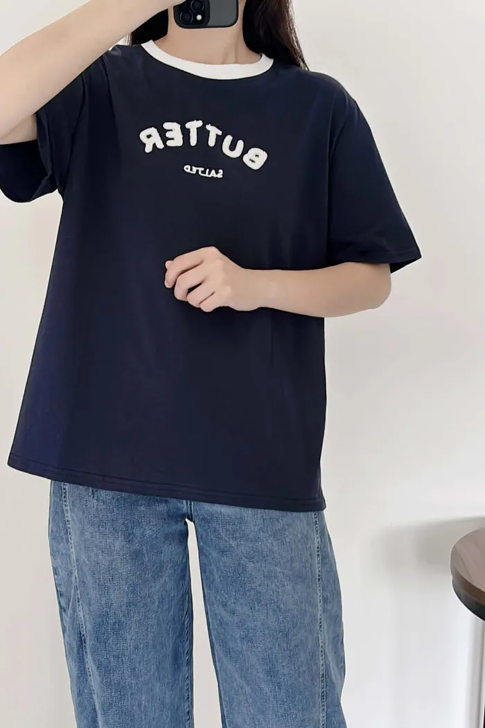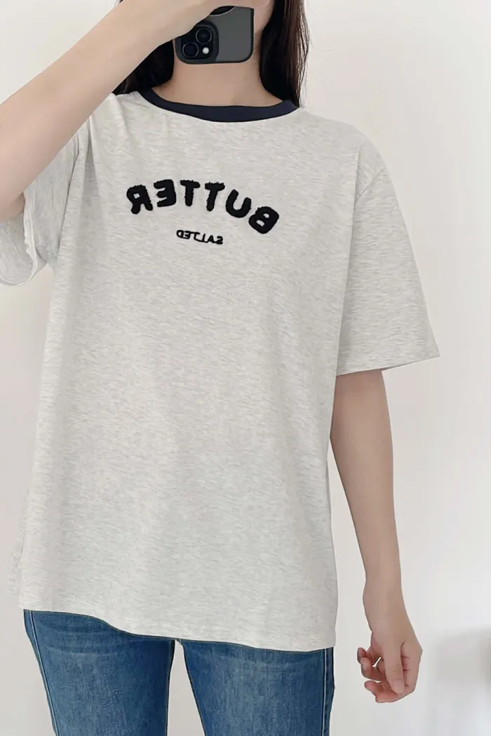 涼感棉/簡約QQ毛英文tee/大胸友善