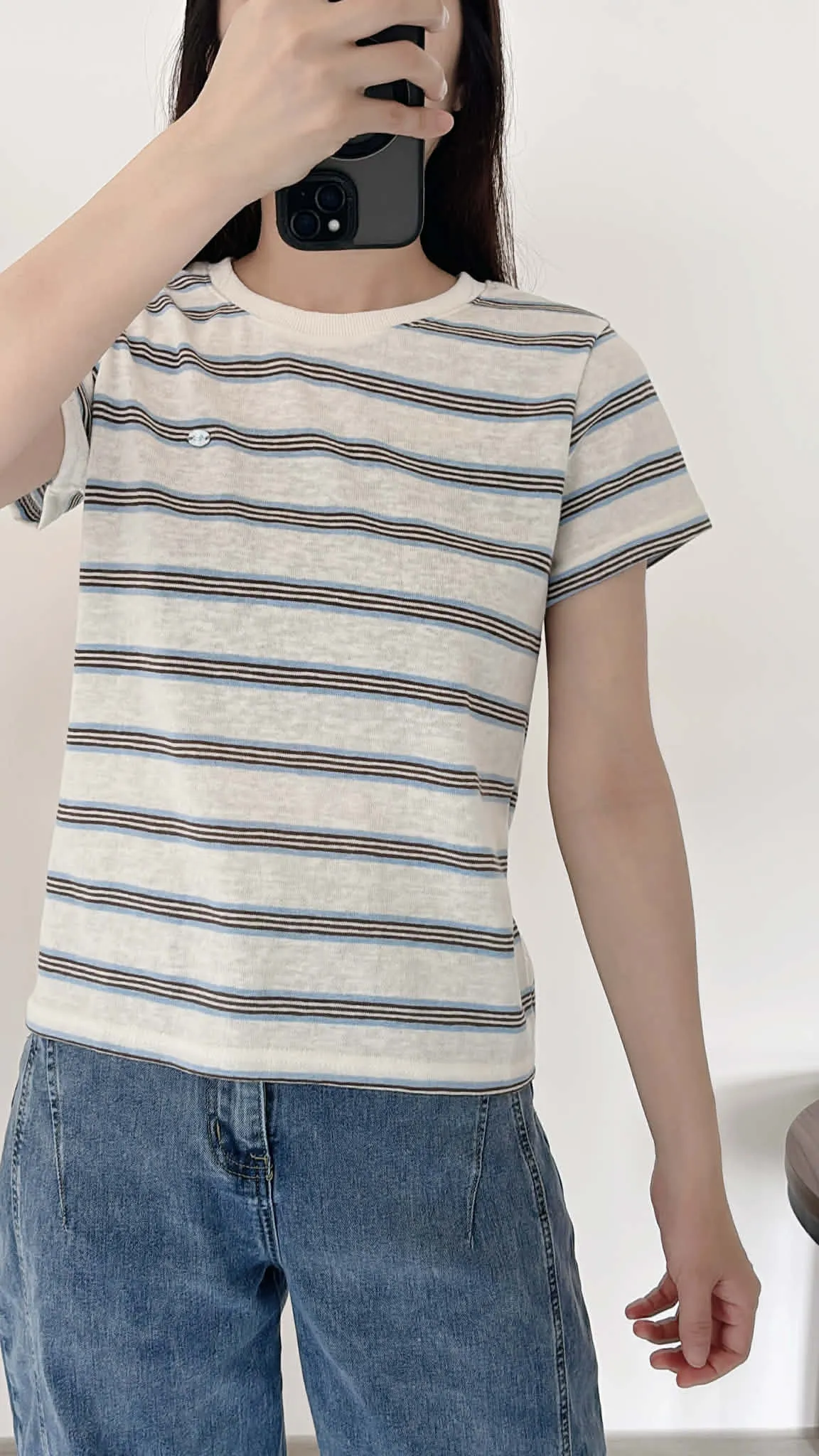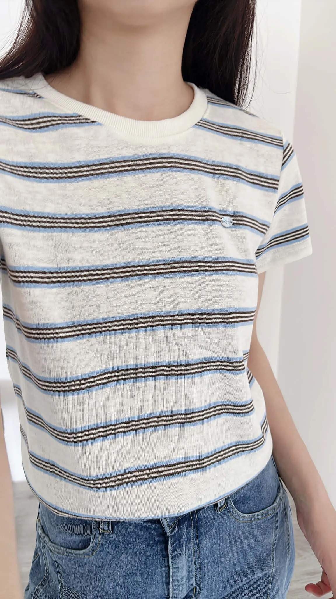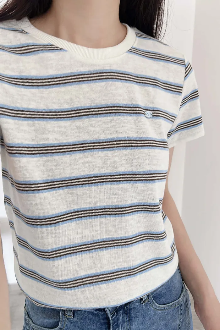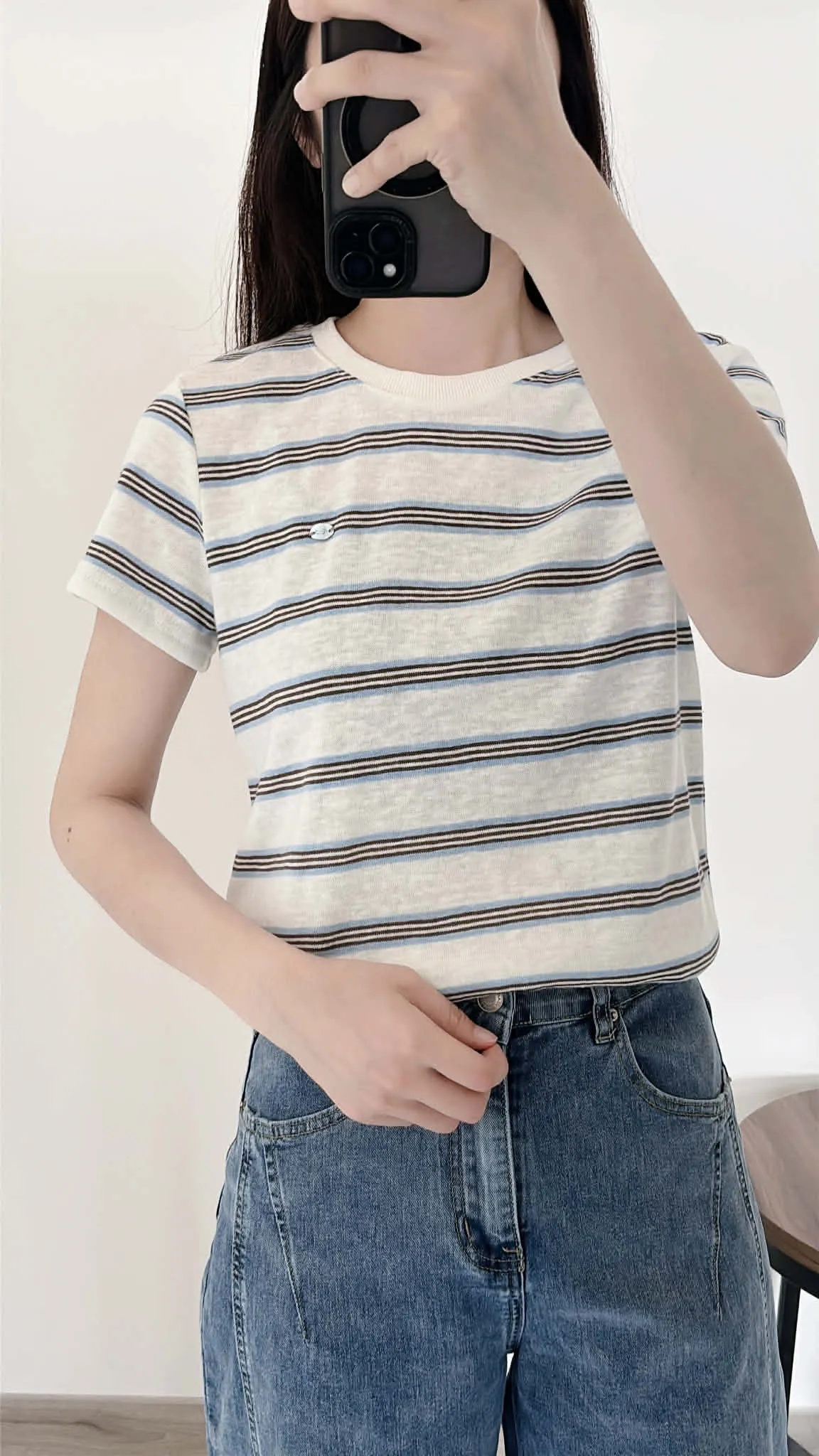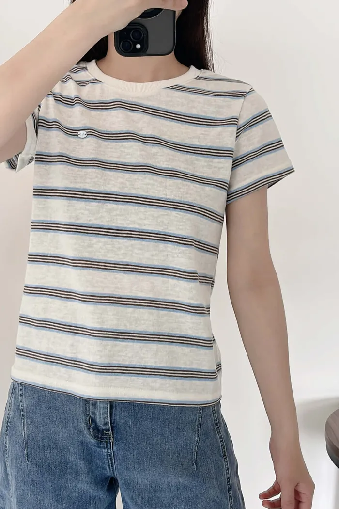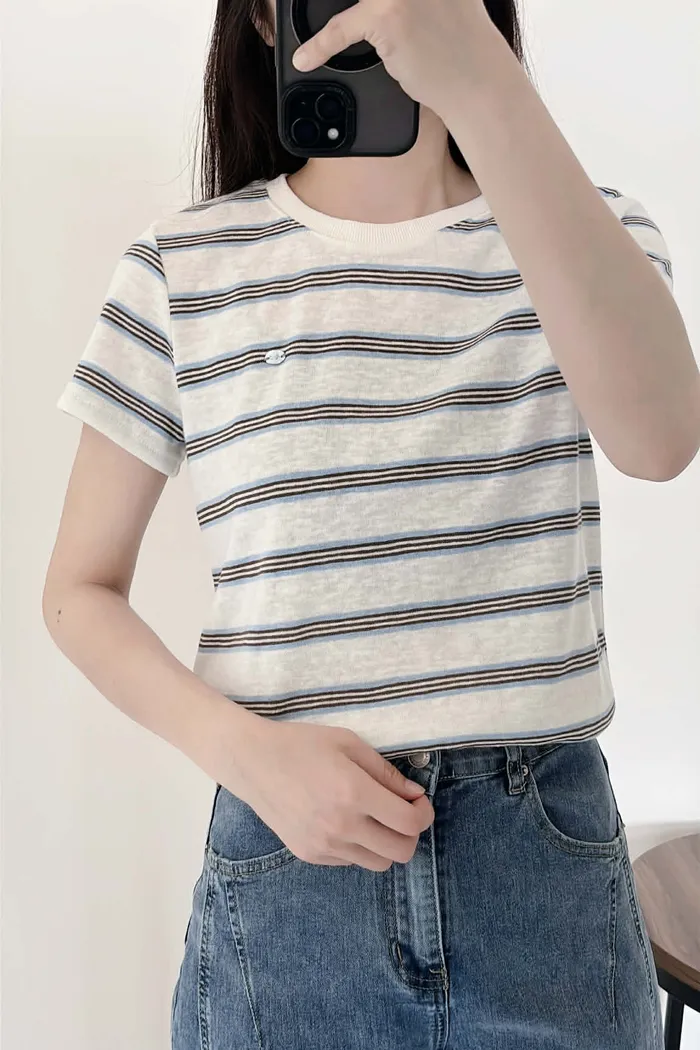 極輕薄/小銀牌造型棉麻上衣/俐落合肩