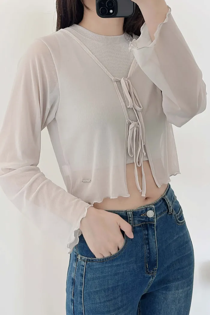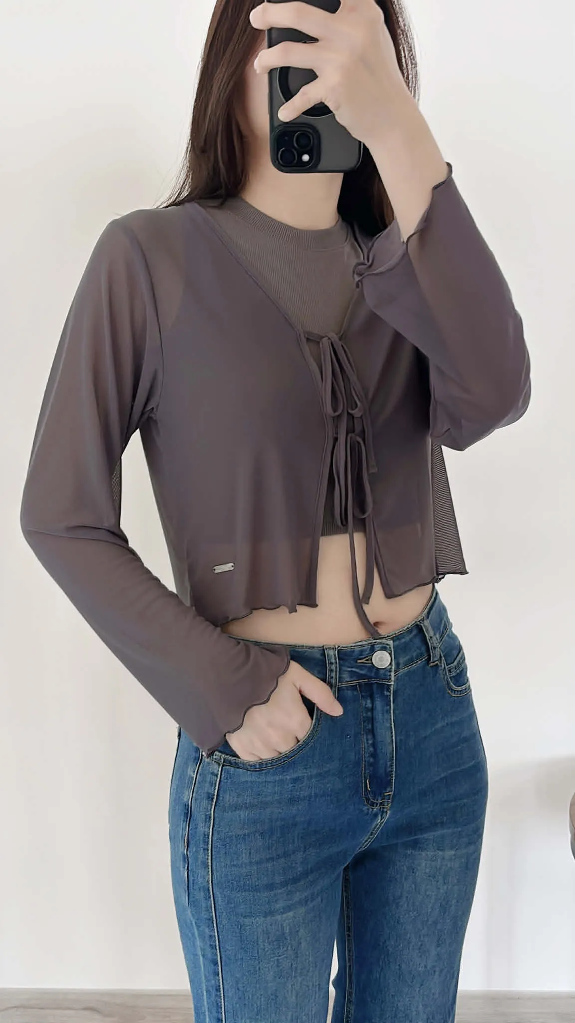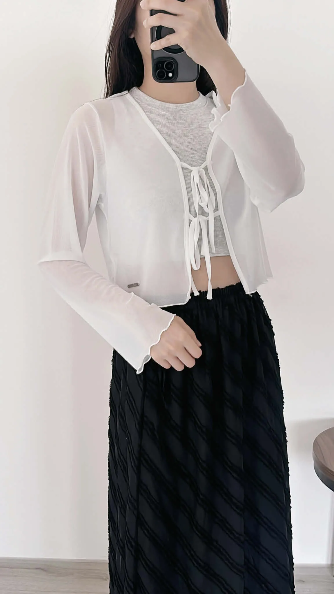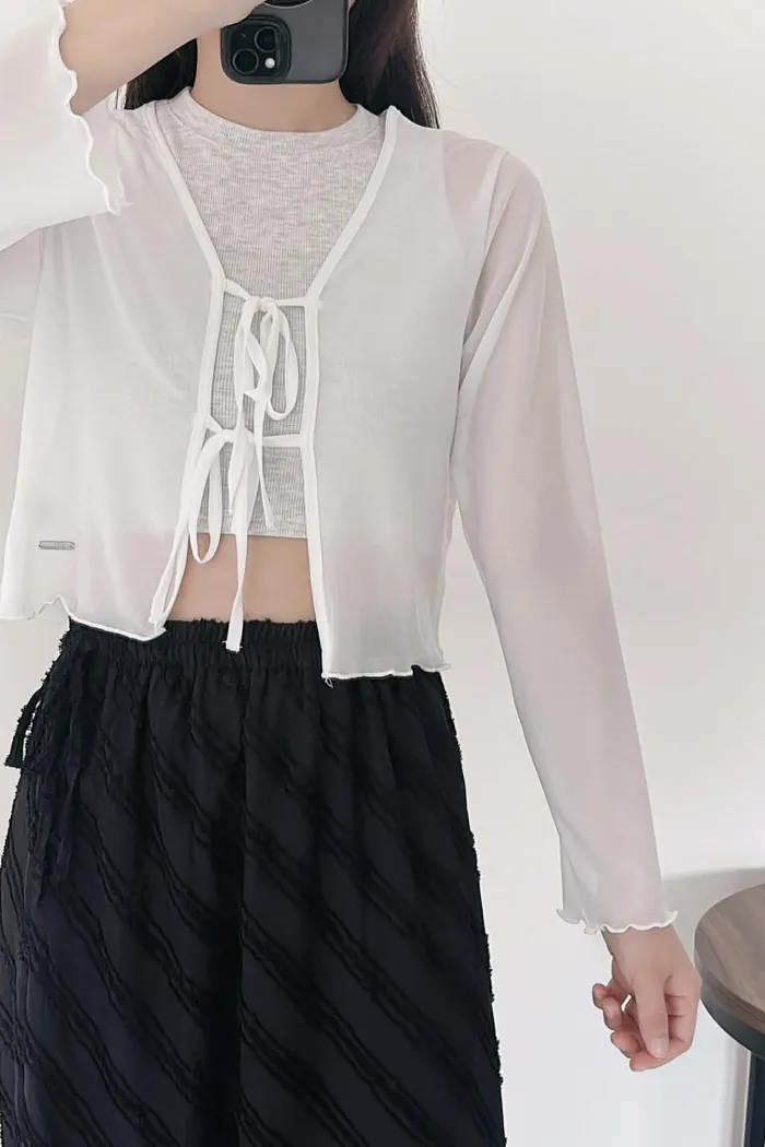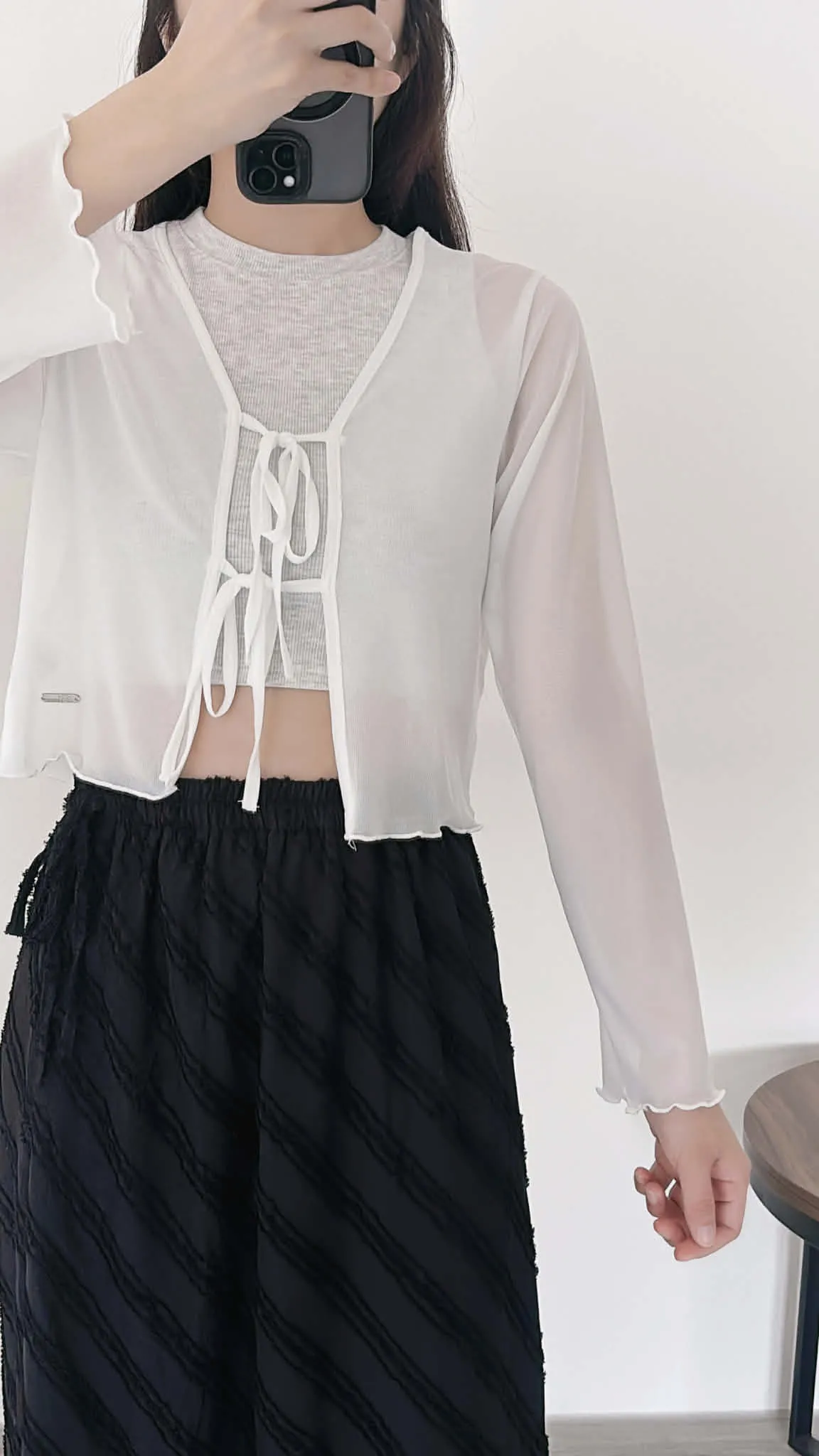 推薦款/微短版/超柔!涼感透透綁繩外罩