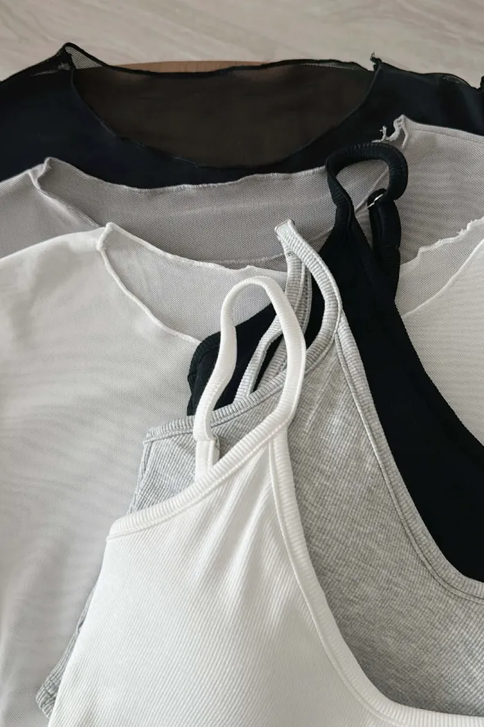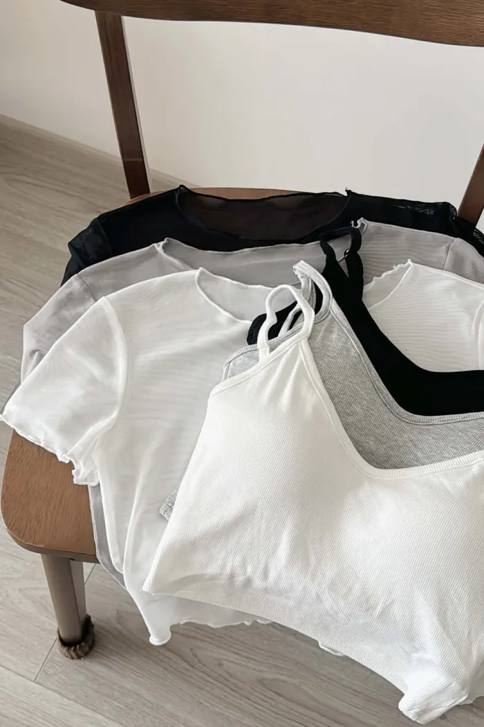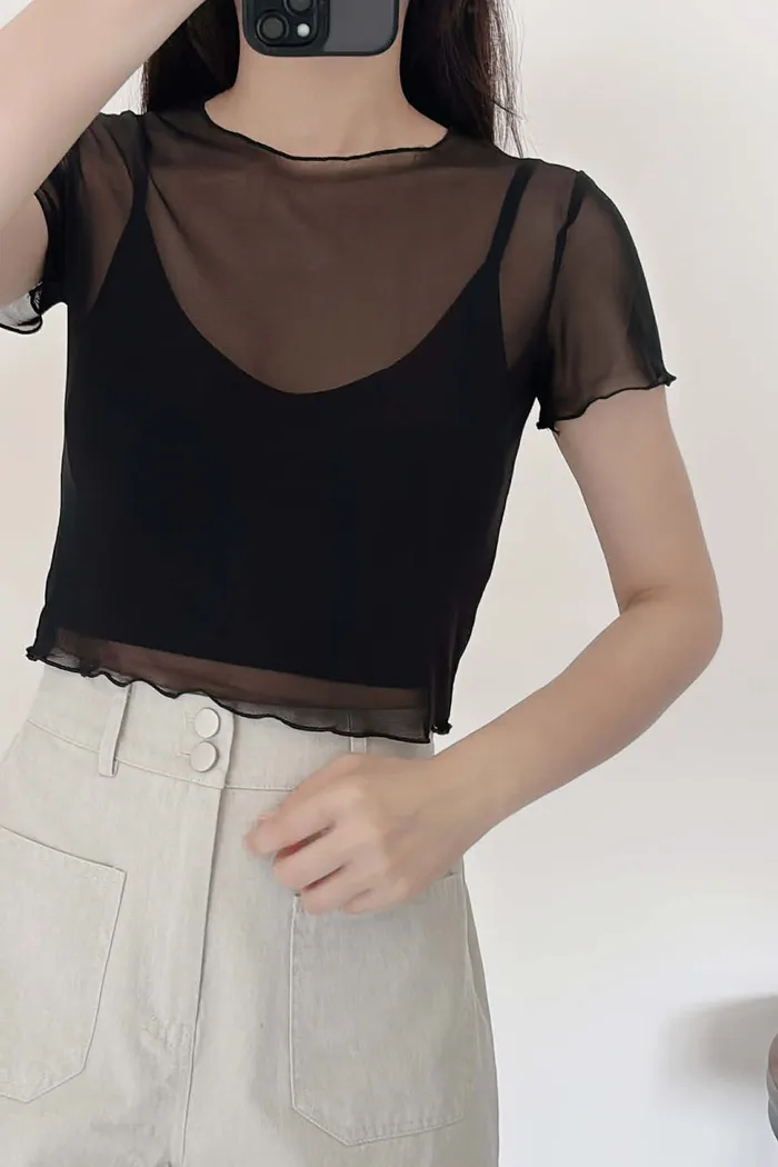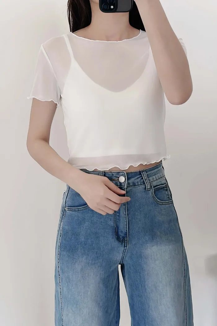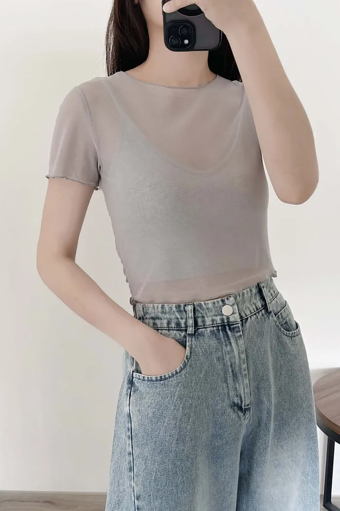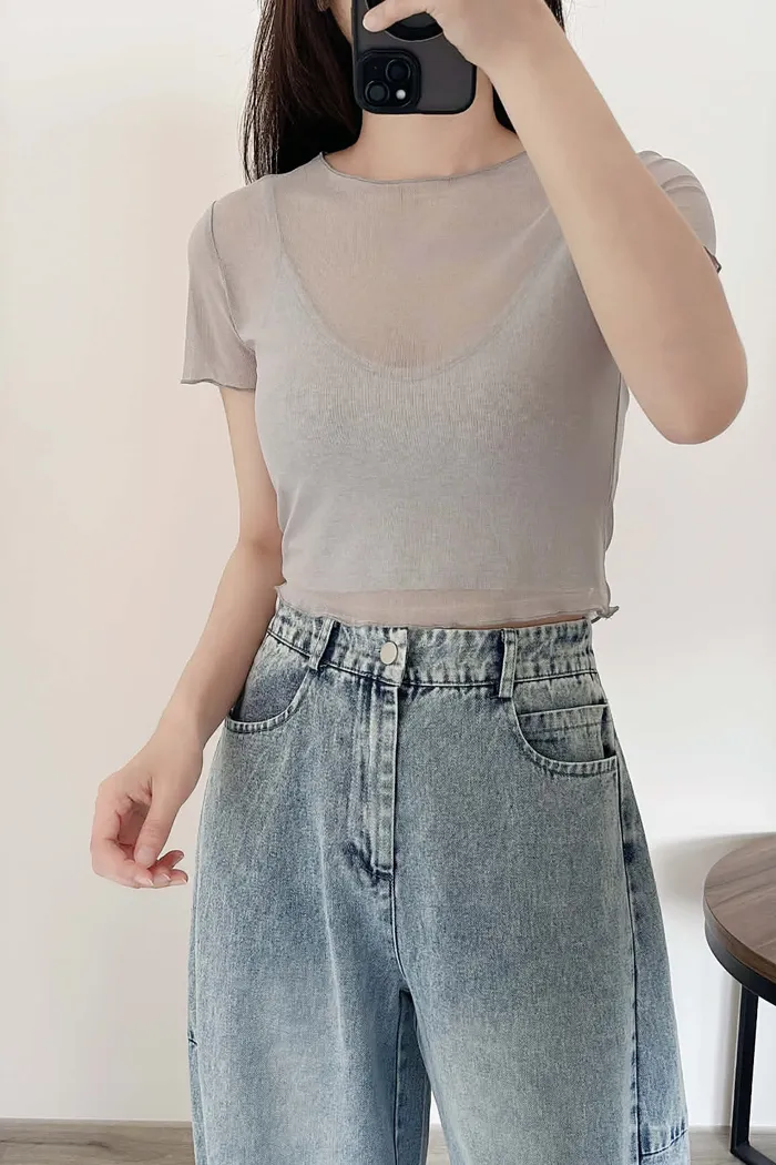 推薦款/微短版/超唯美!柔感短袖透透/真兩件組(附贈內搭BraTop)