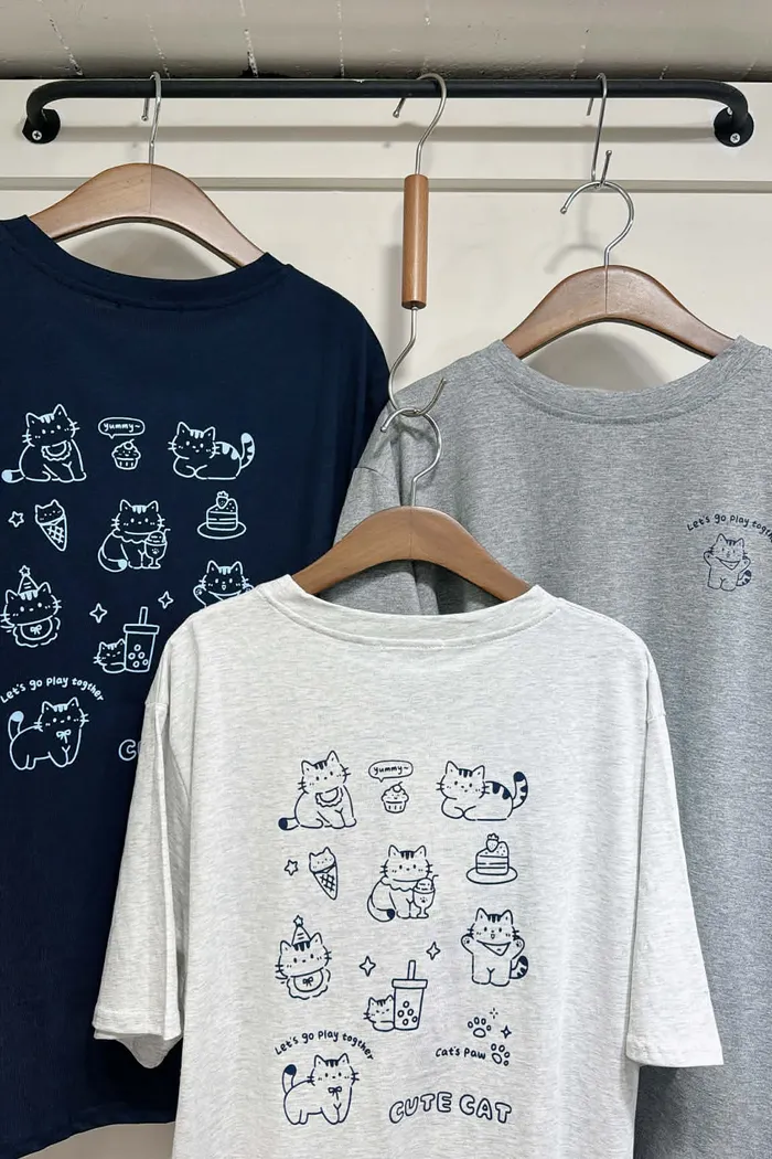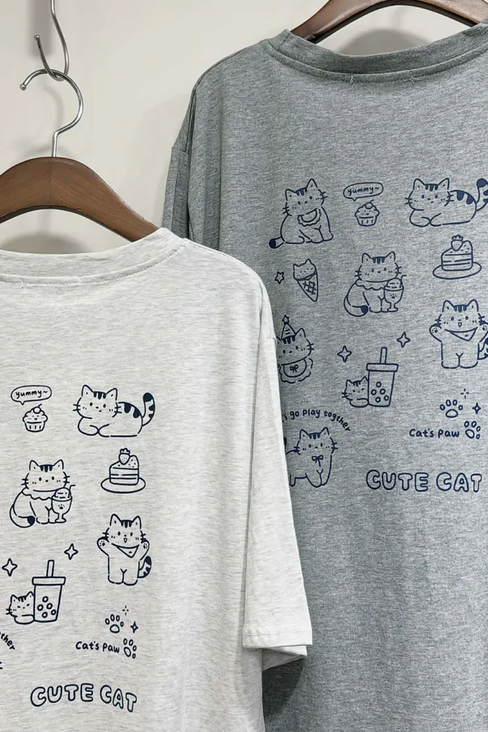 涼感棉/前後各種玩樂小貓tee/大胸友善